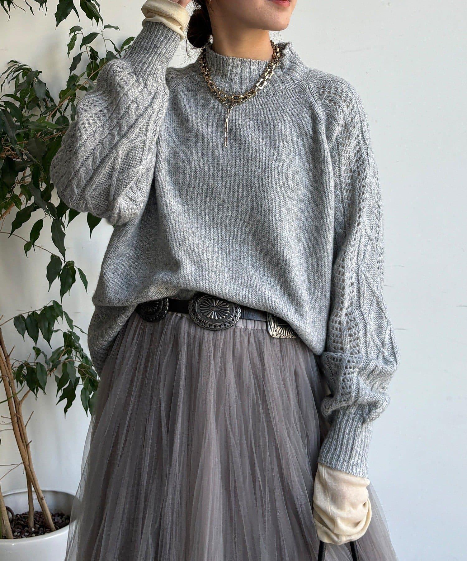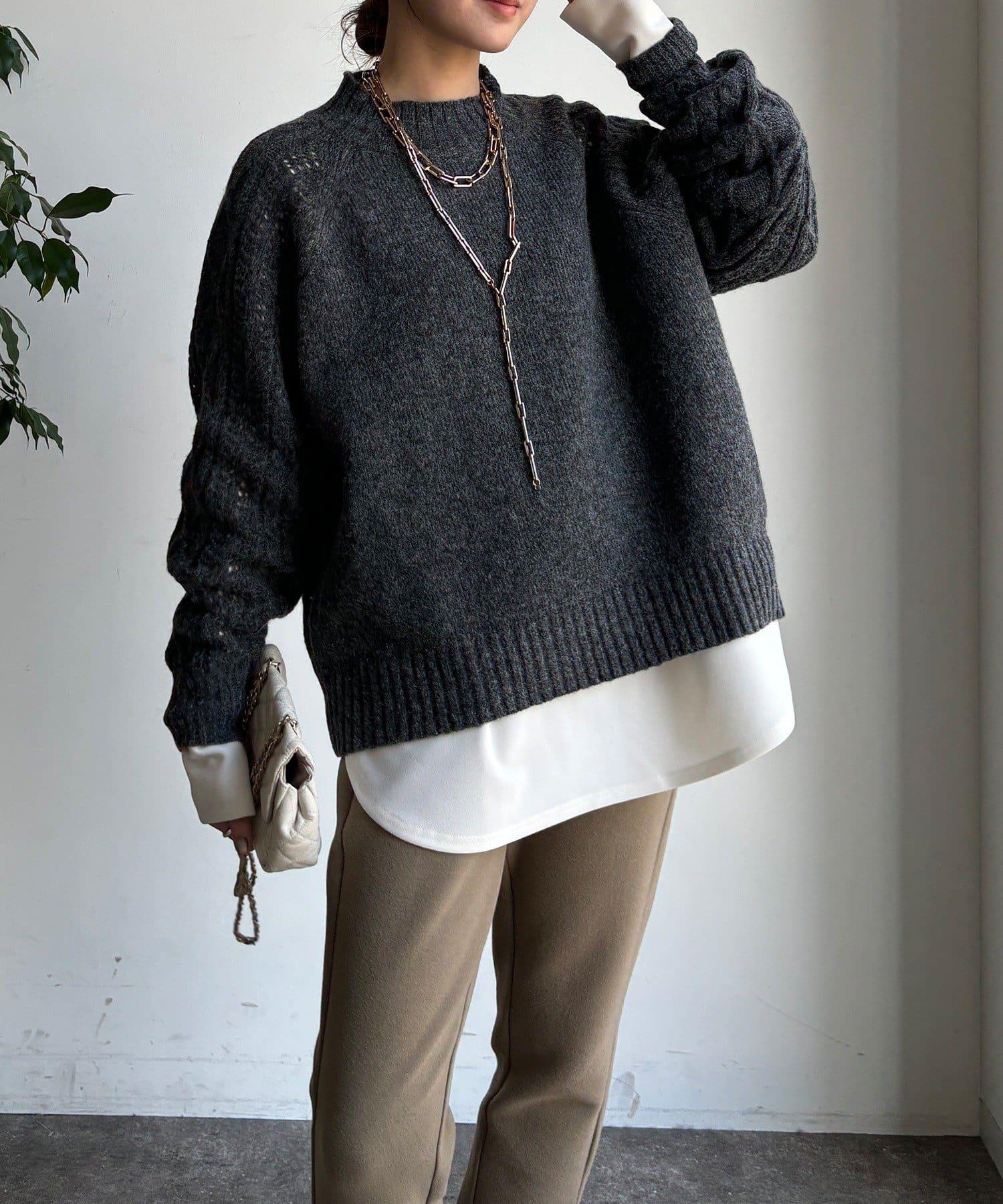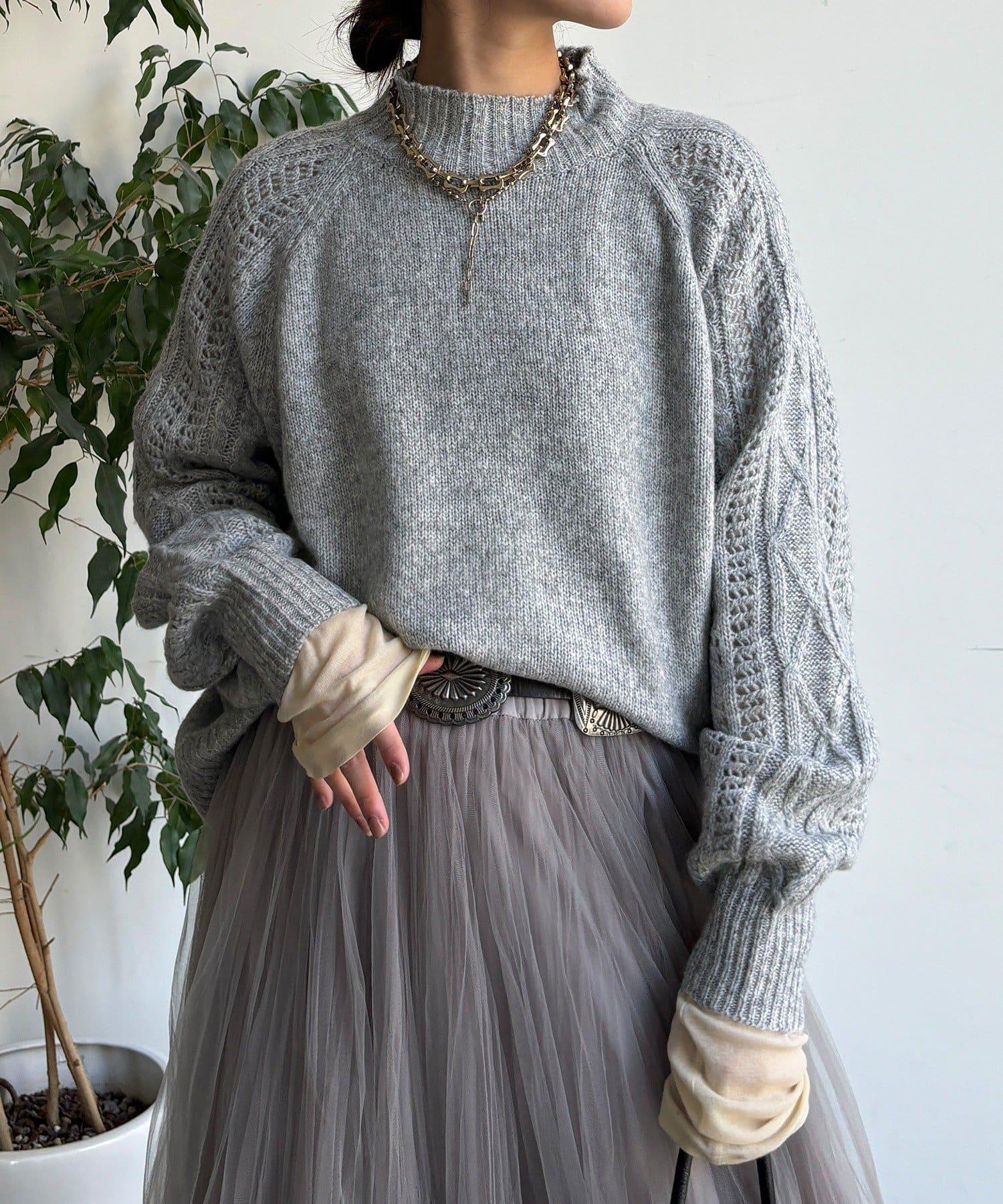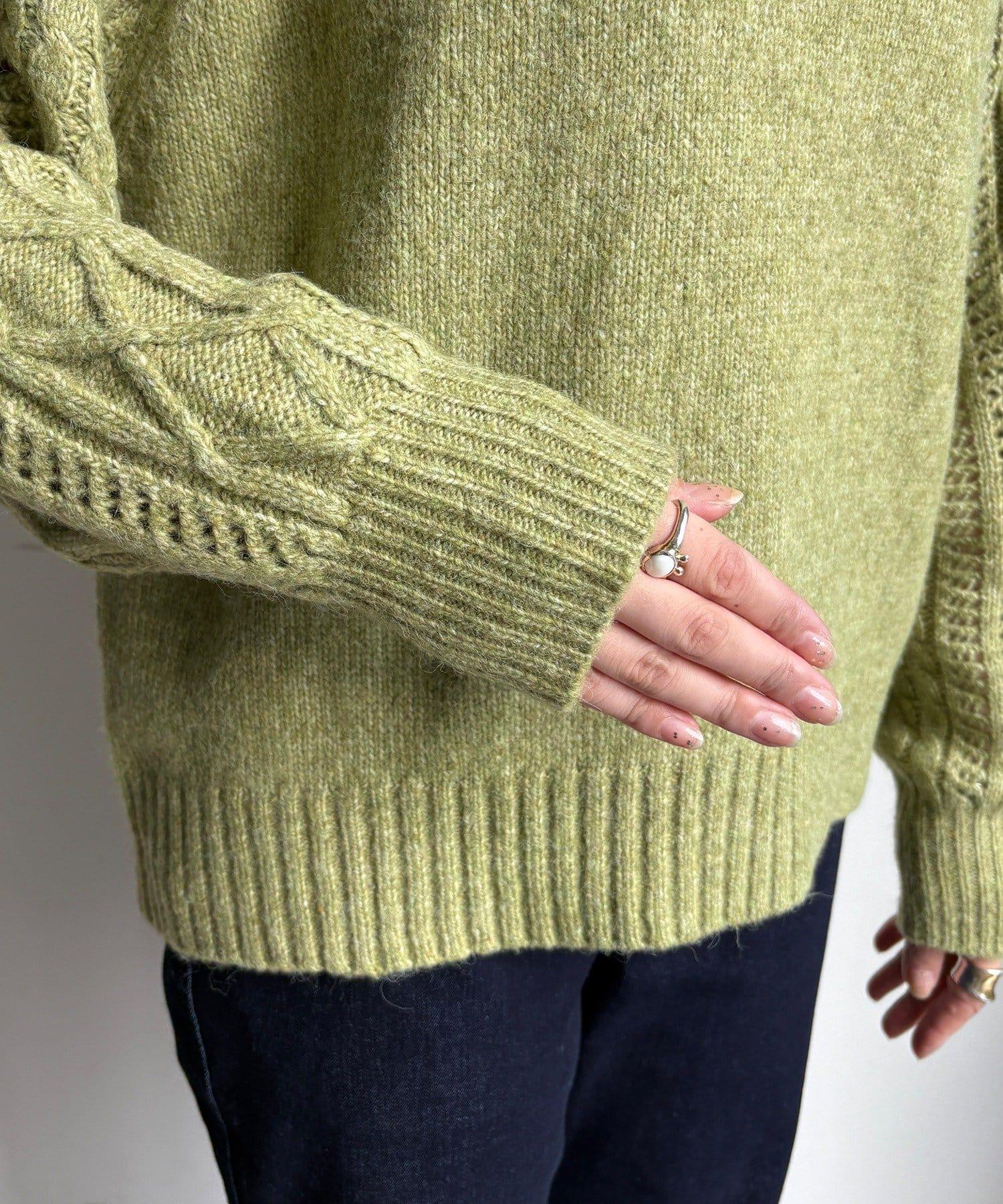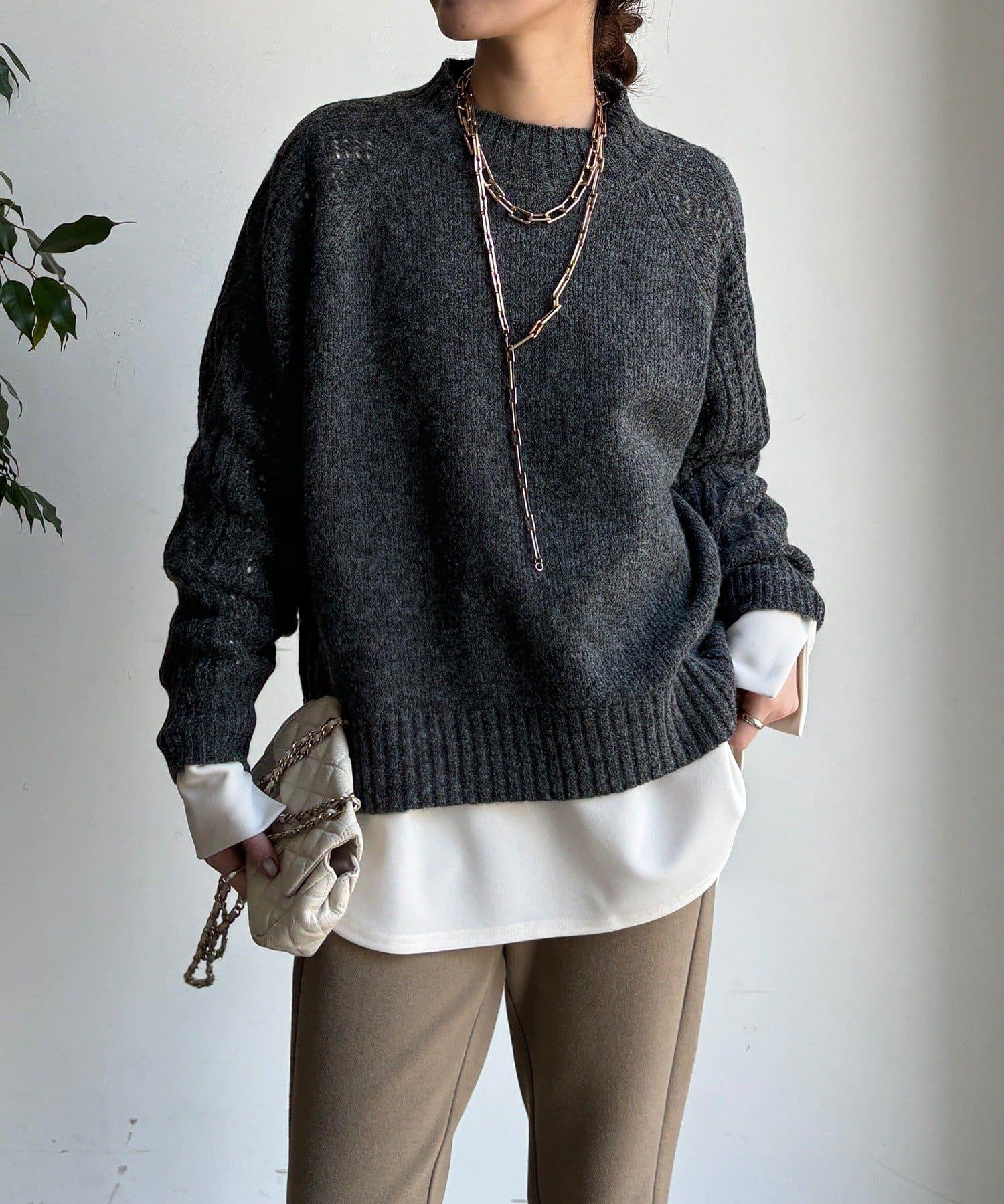 袖子上的針織線具有立體感,營造出適度的寬鬆感。