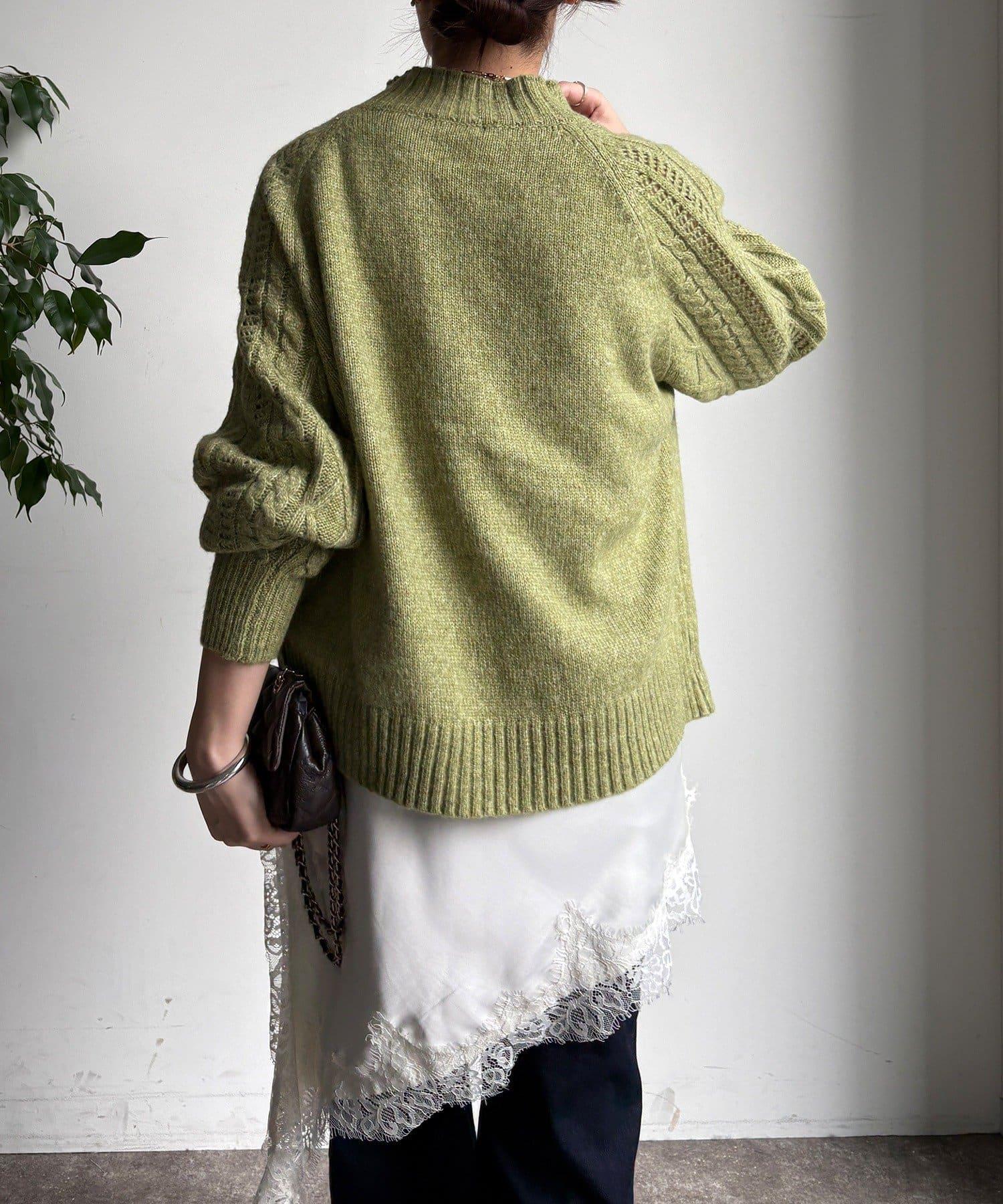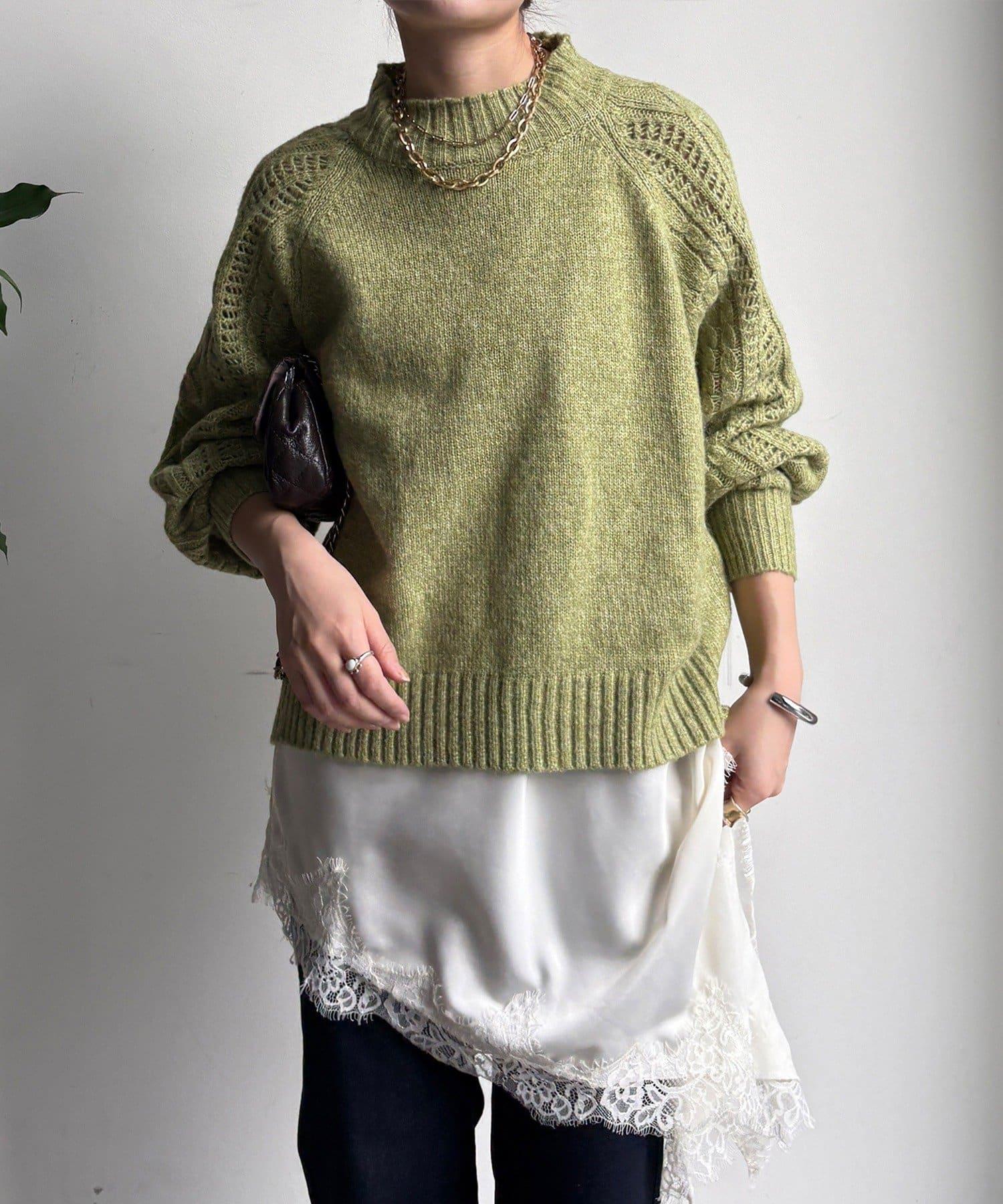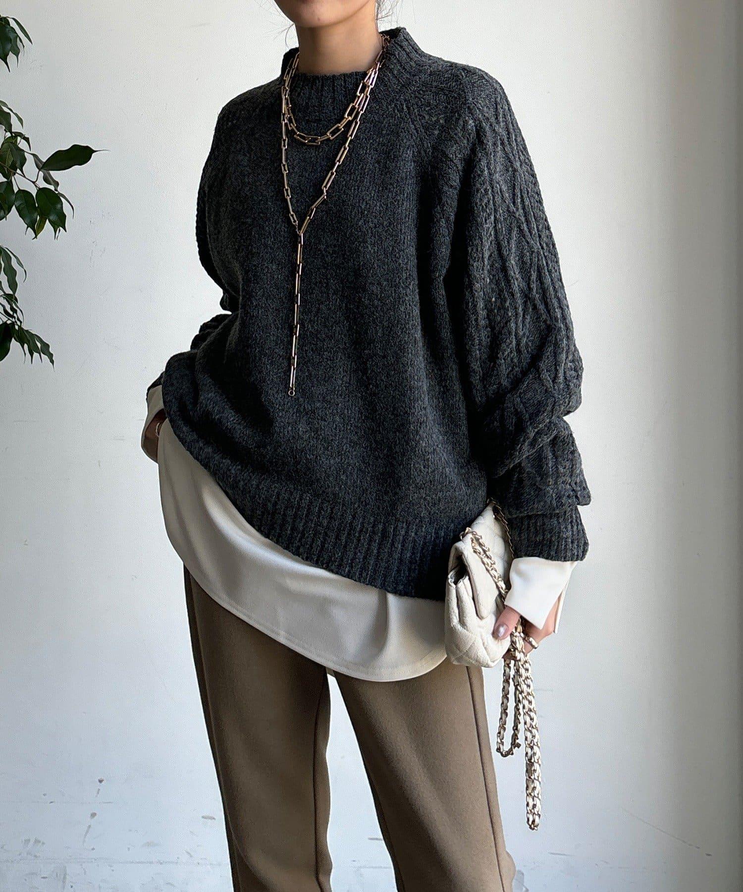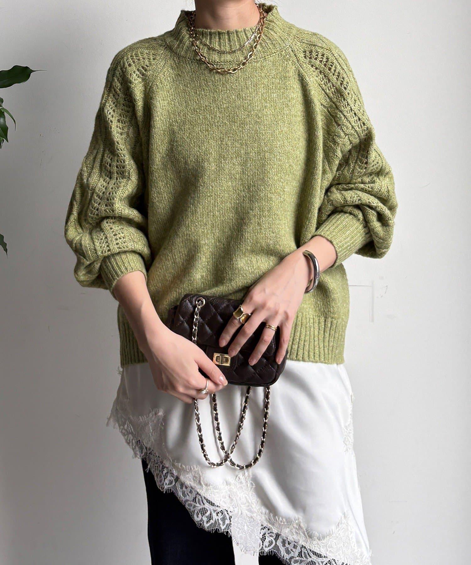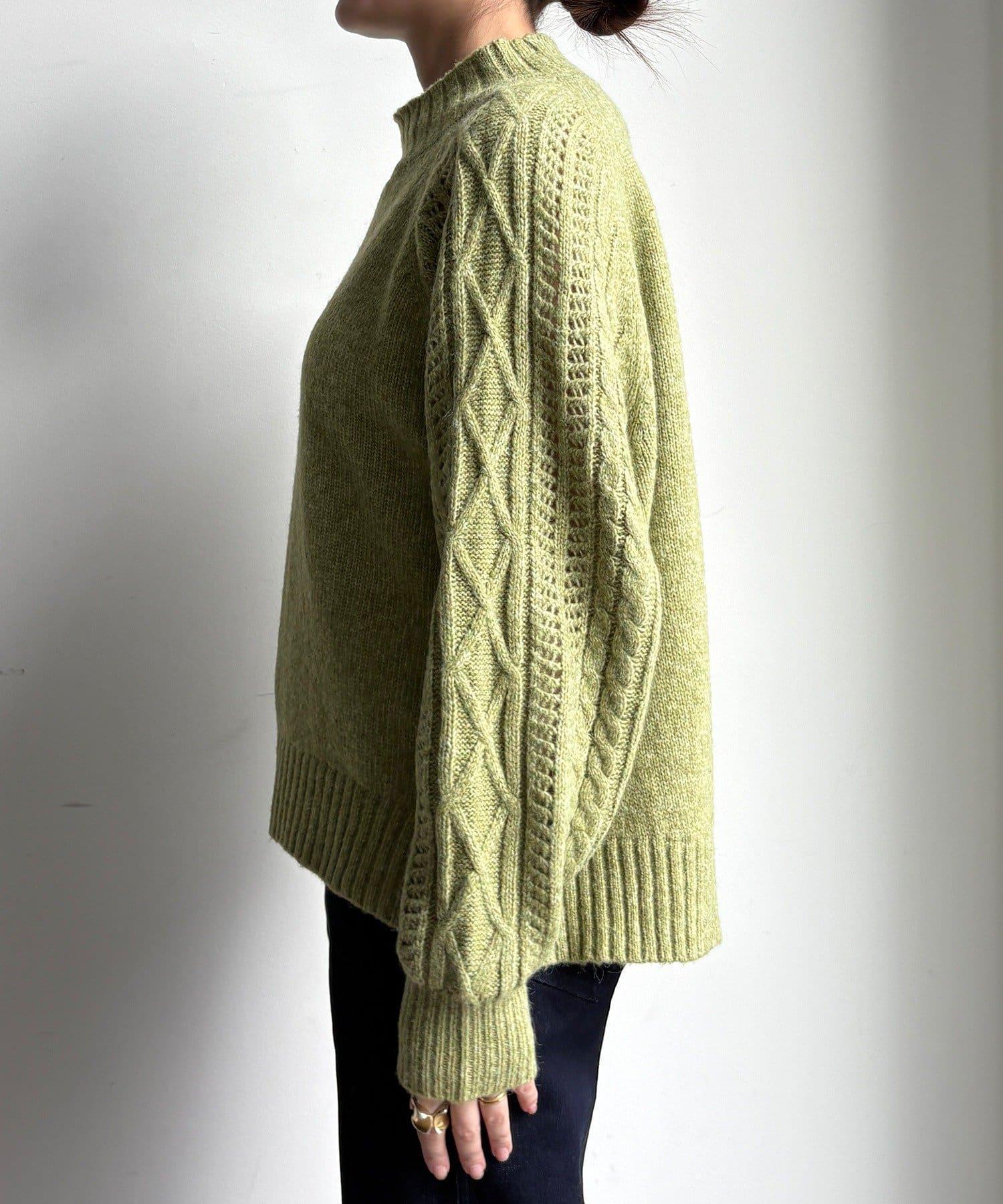 袖子上的針織線具有立體感,營造出適度的寬鬆感。
