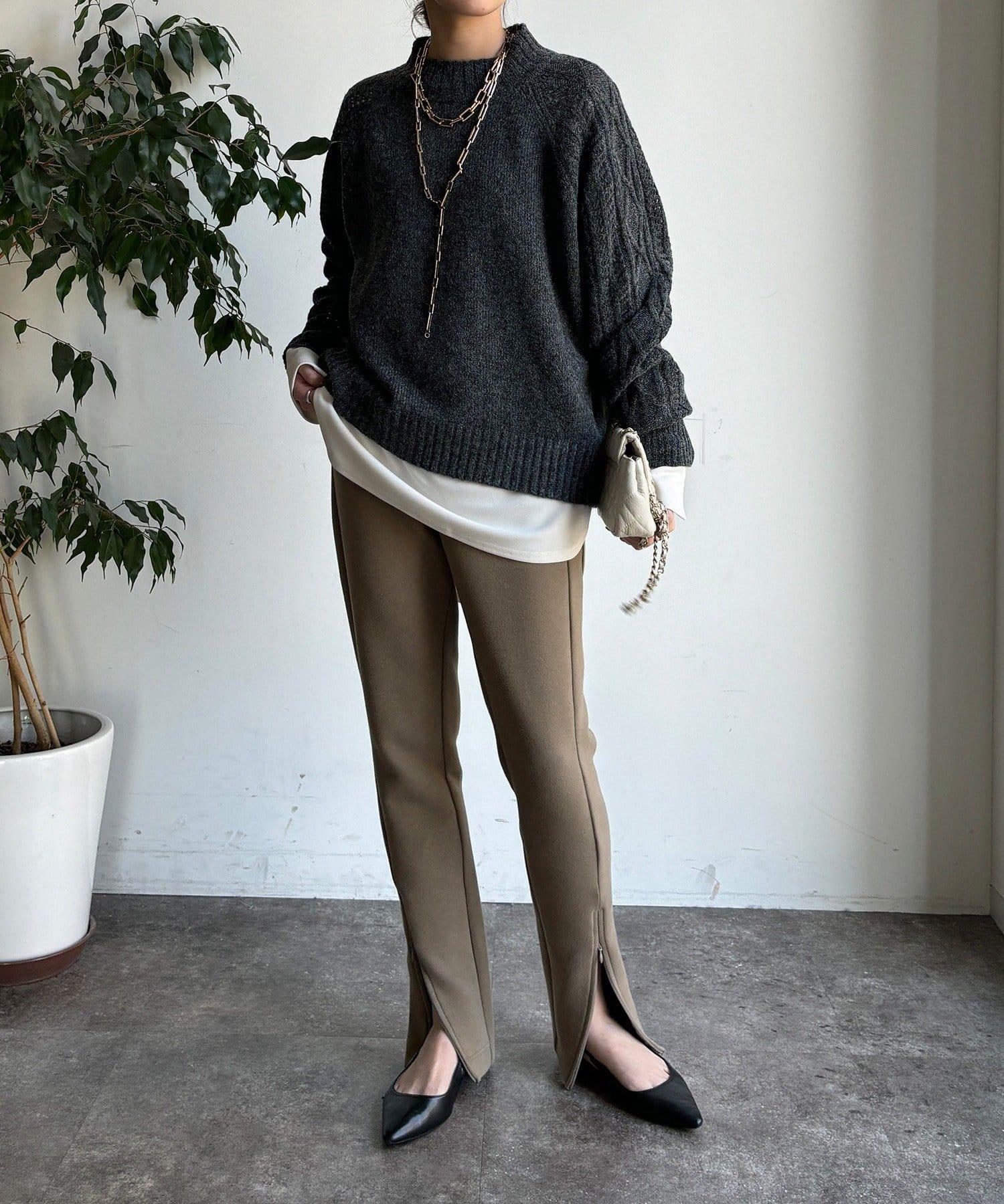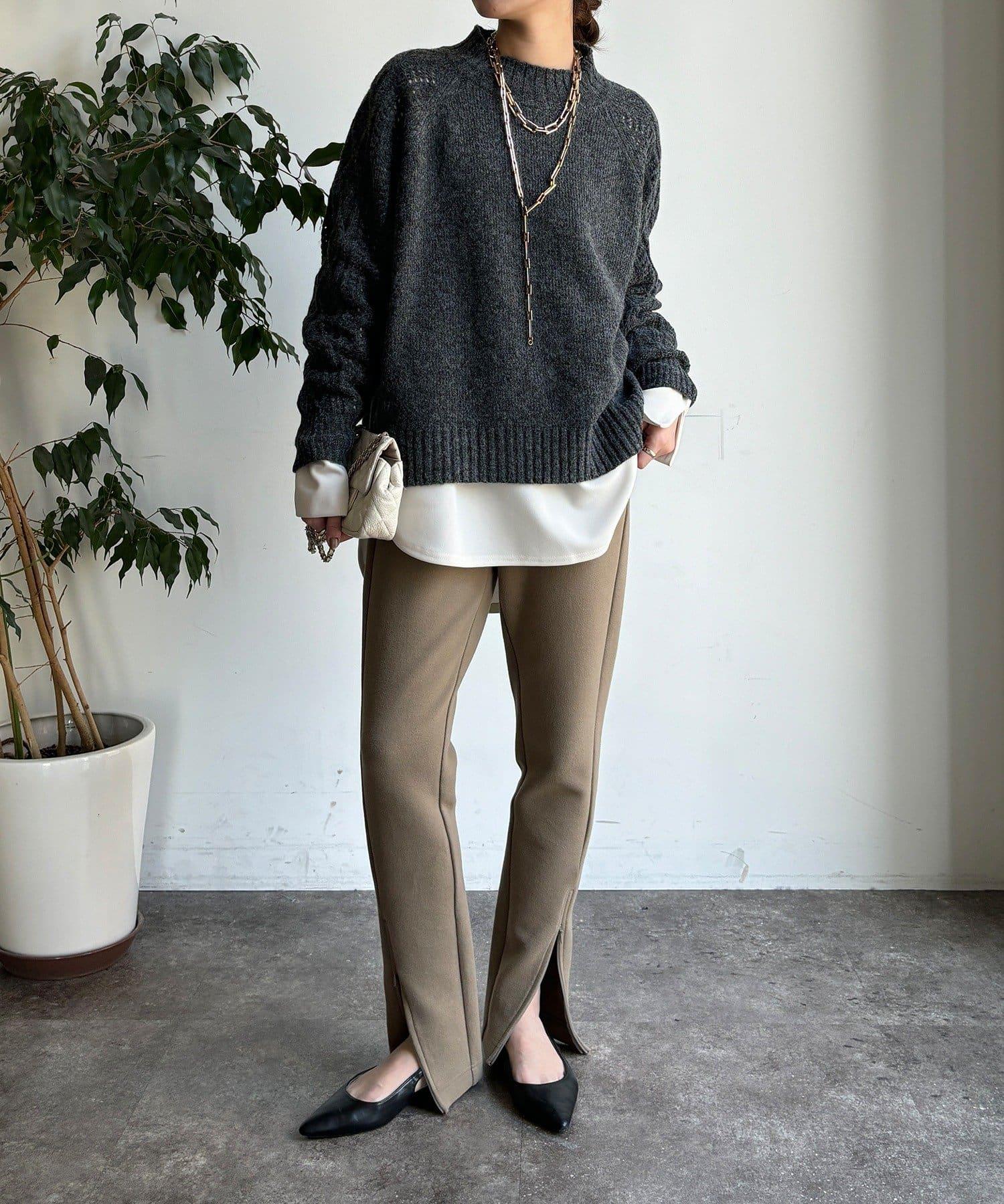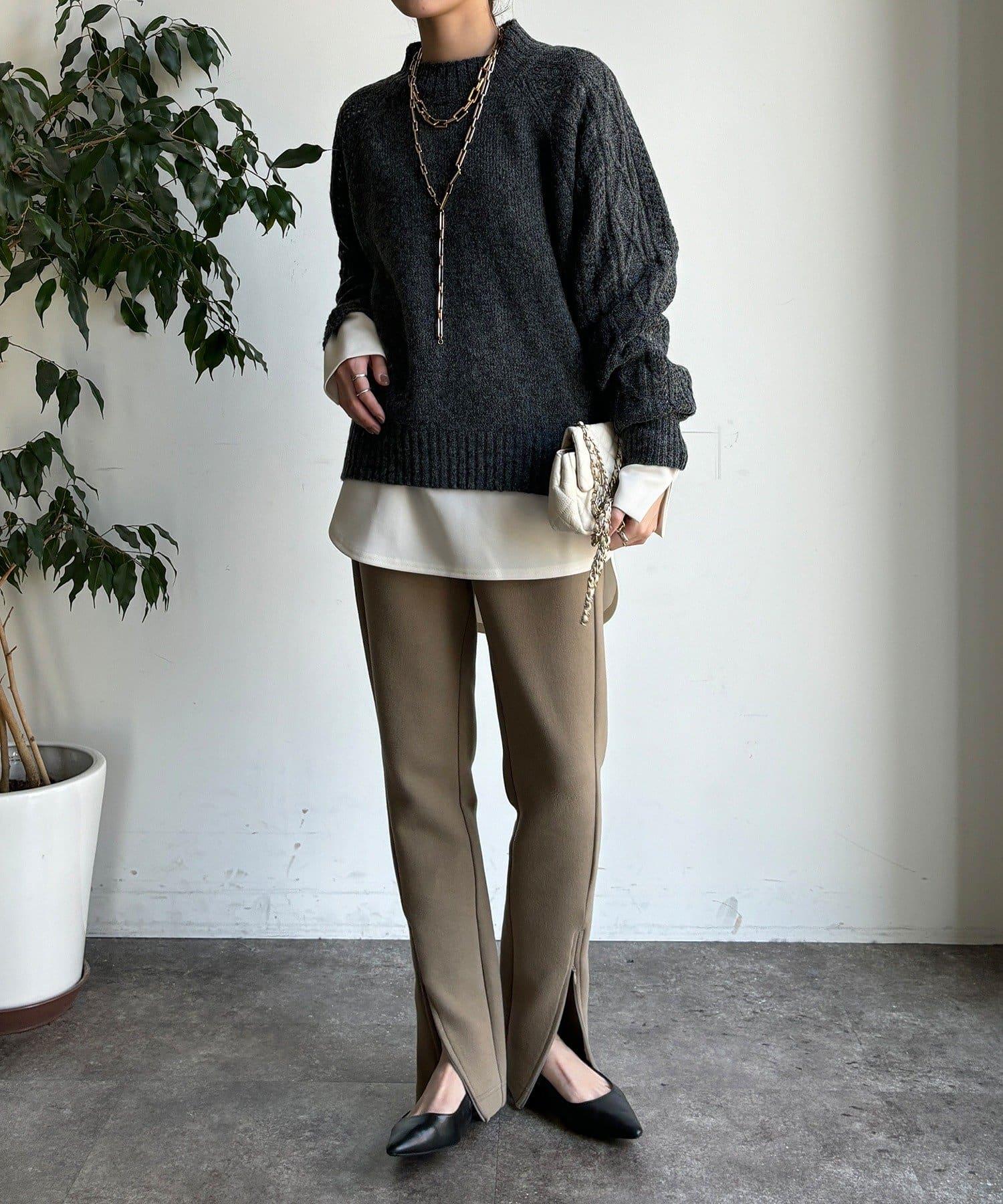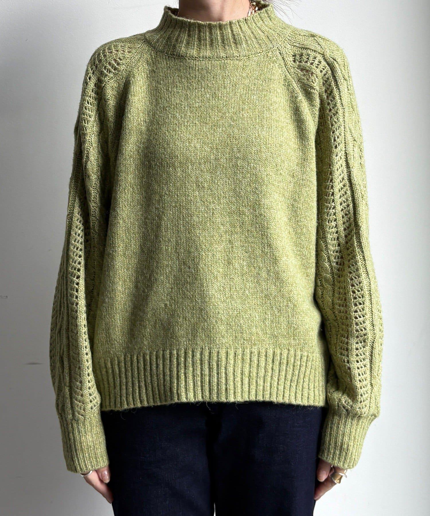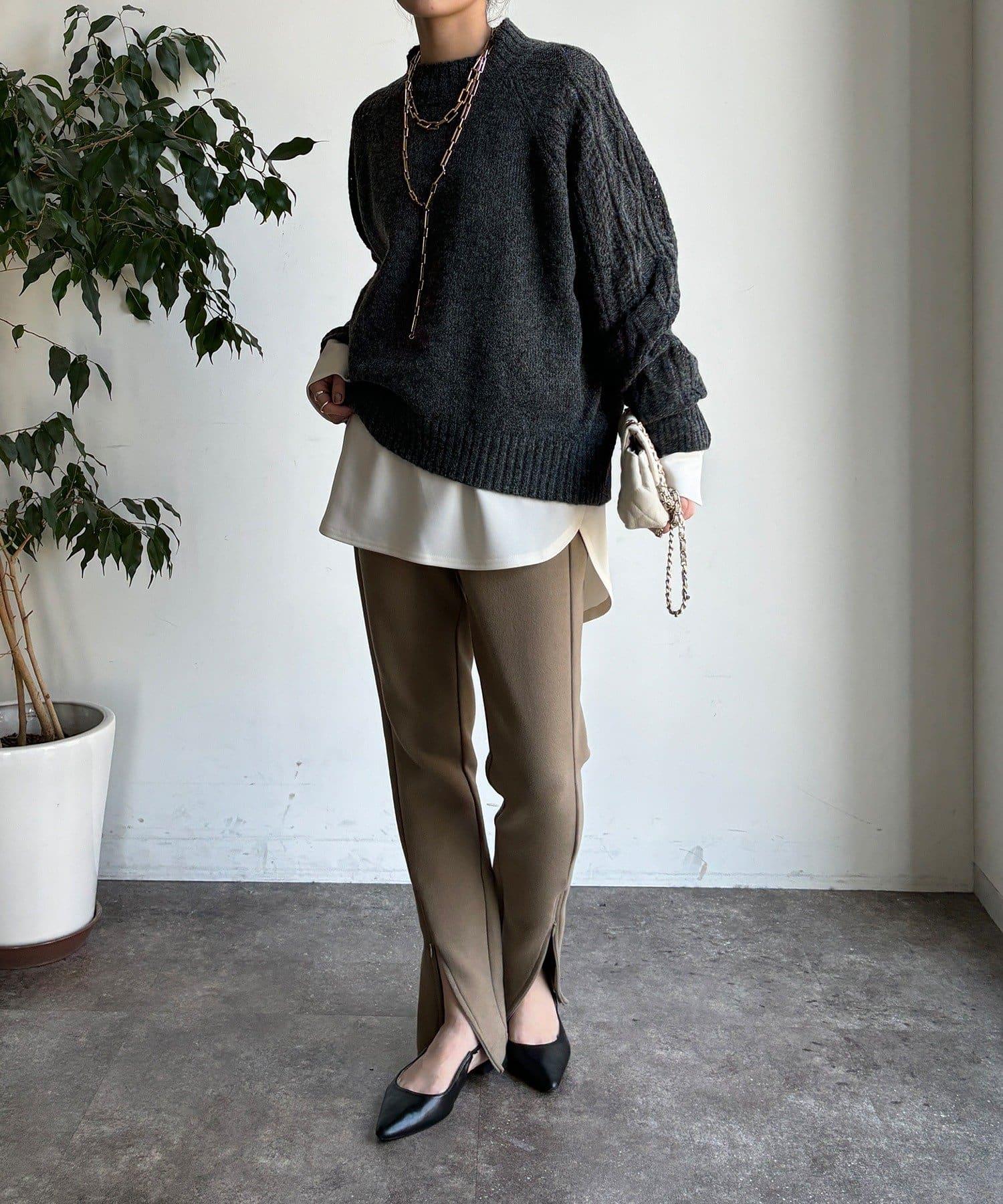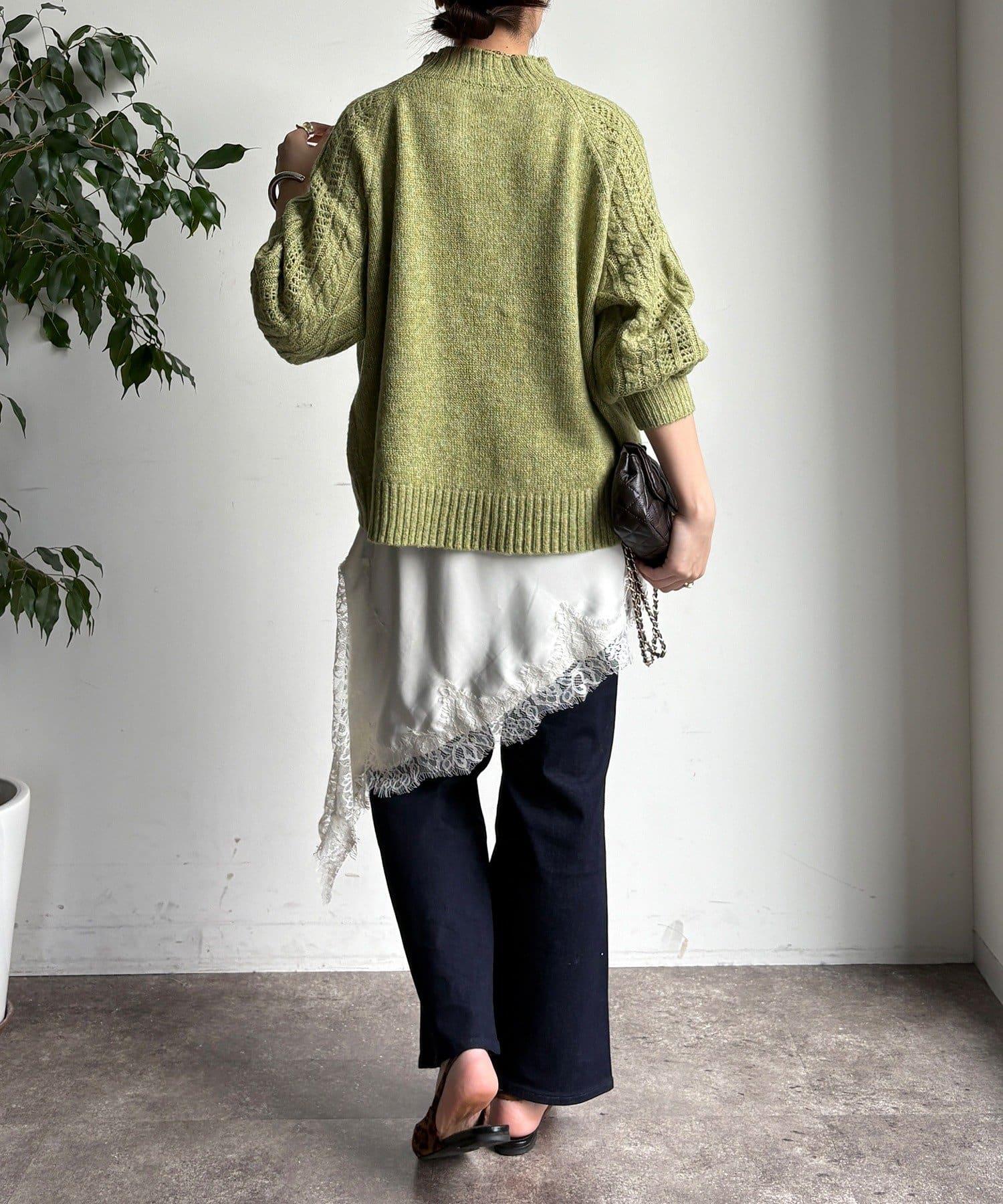 袖子上的針織線具有立體感,營造出適度的寬鬆感。
