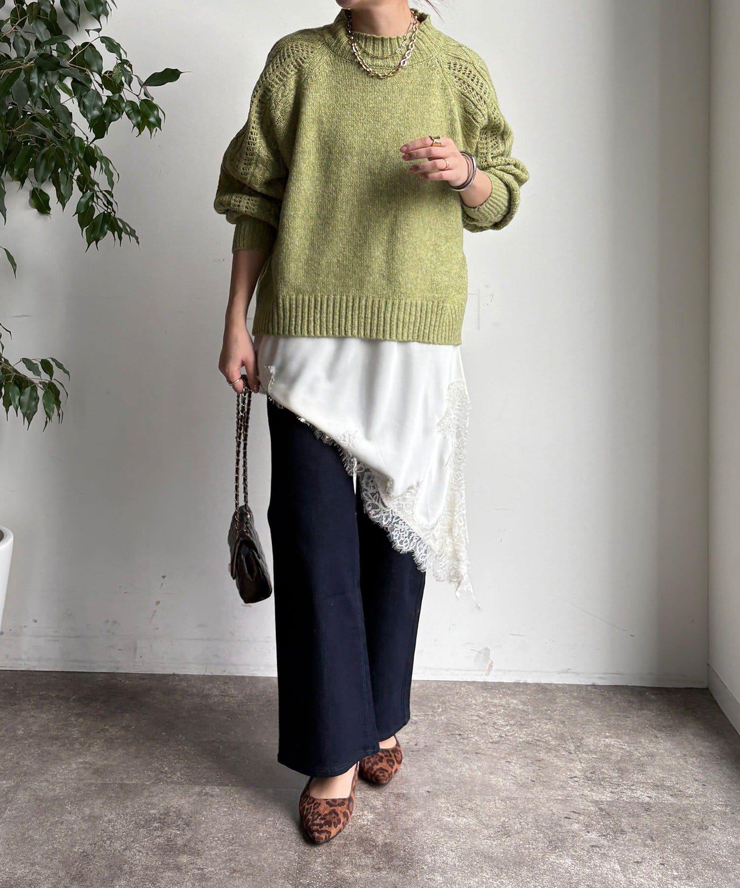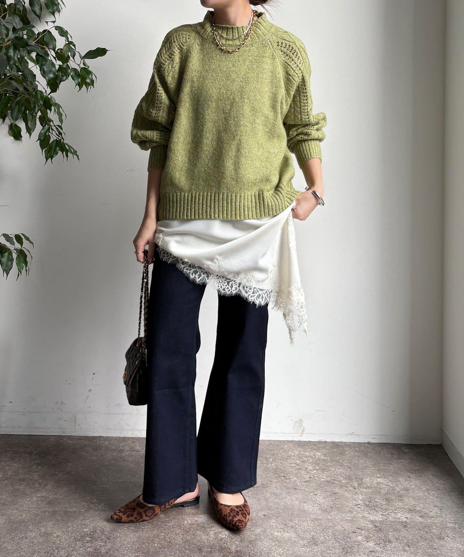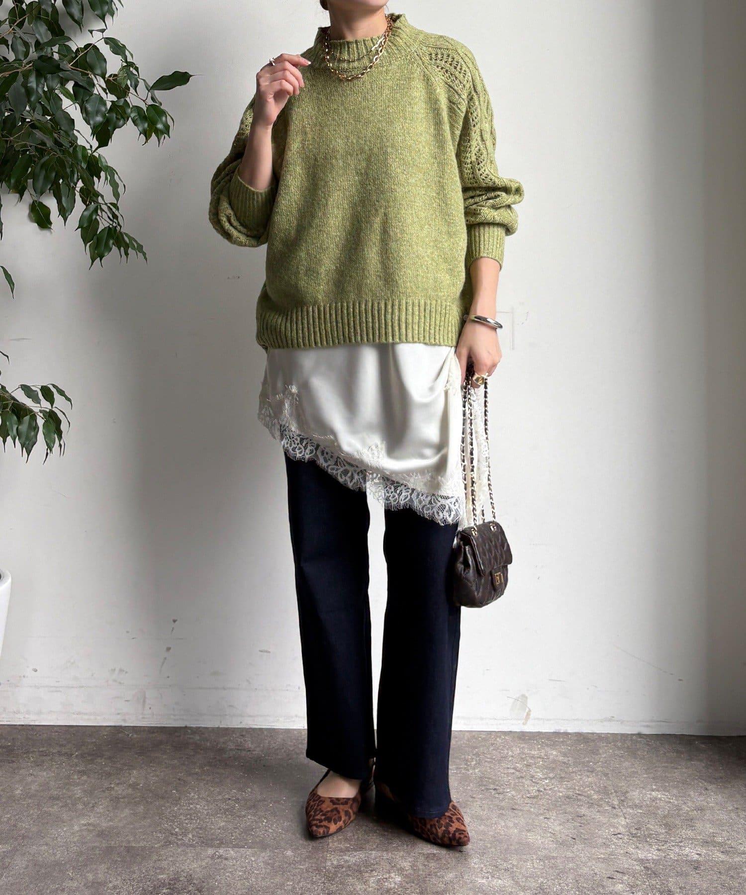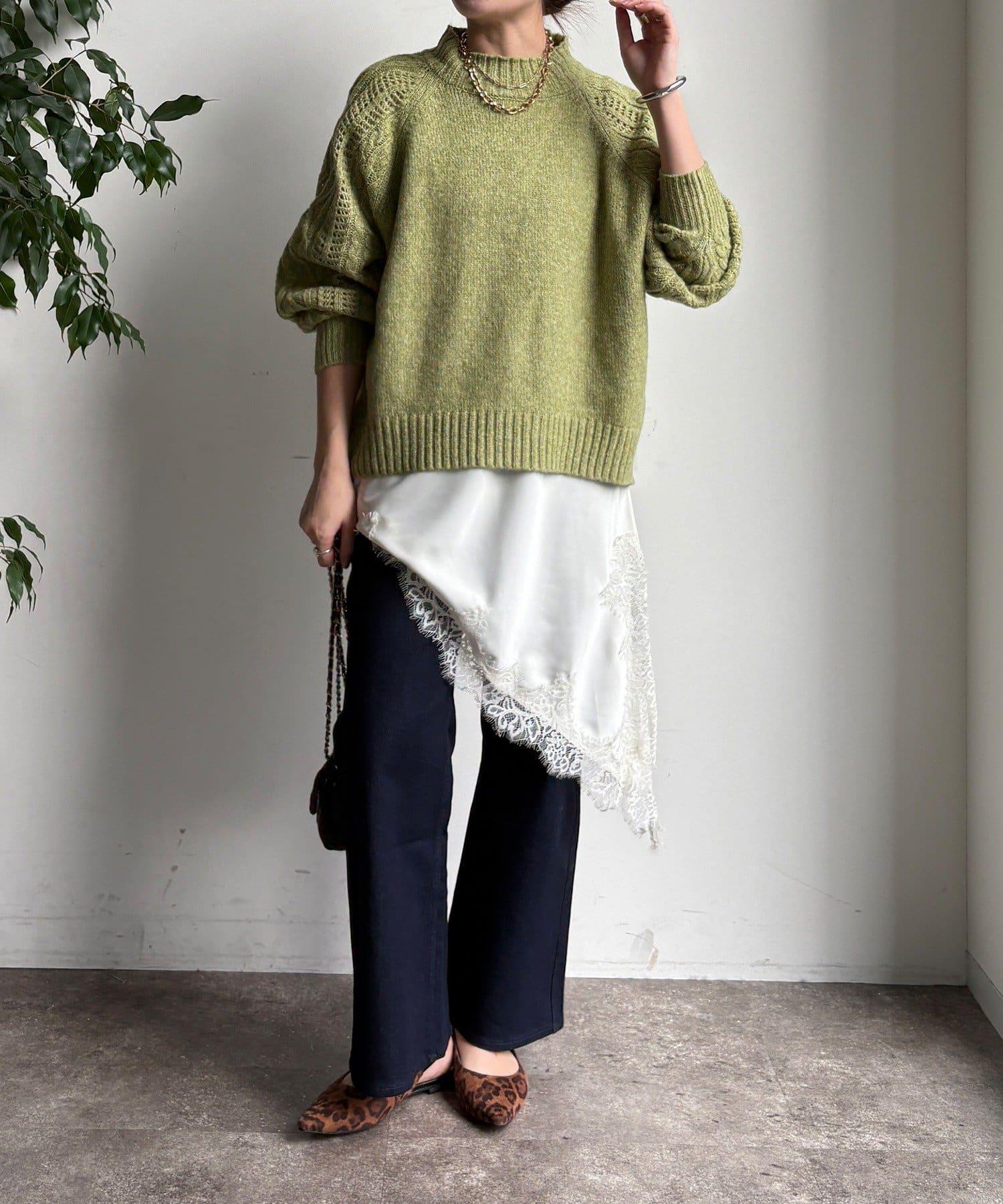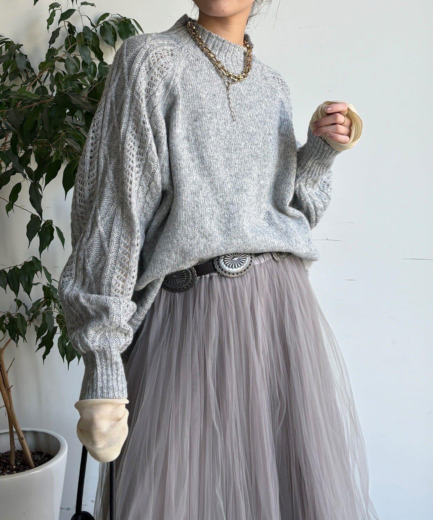 袖子上的針織線具有立體感,營造出適度的寬鬆感。