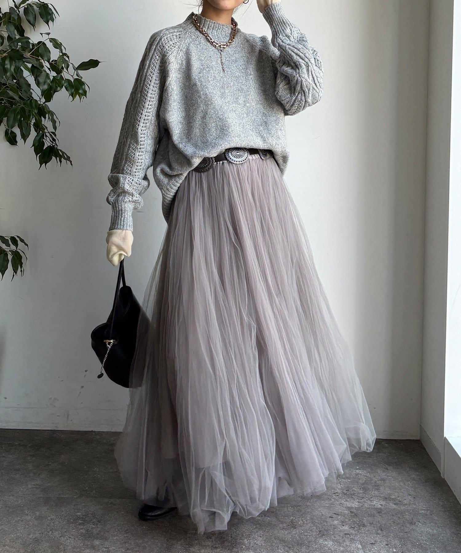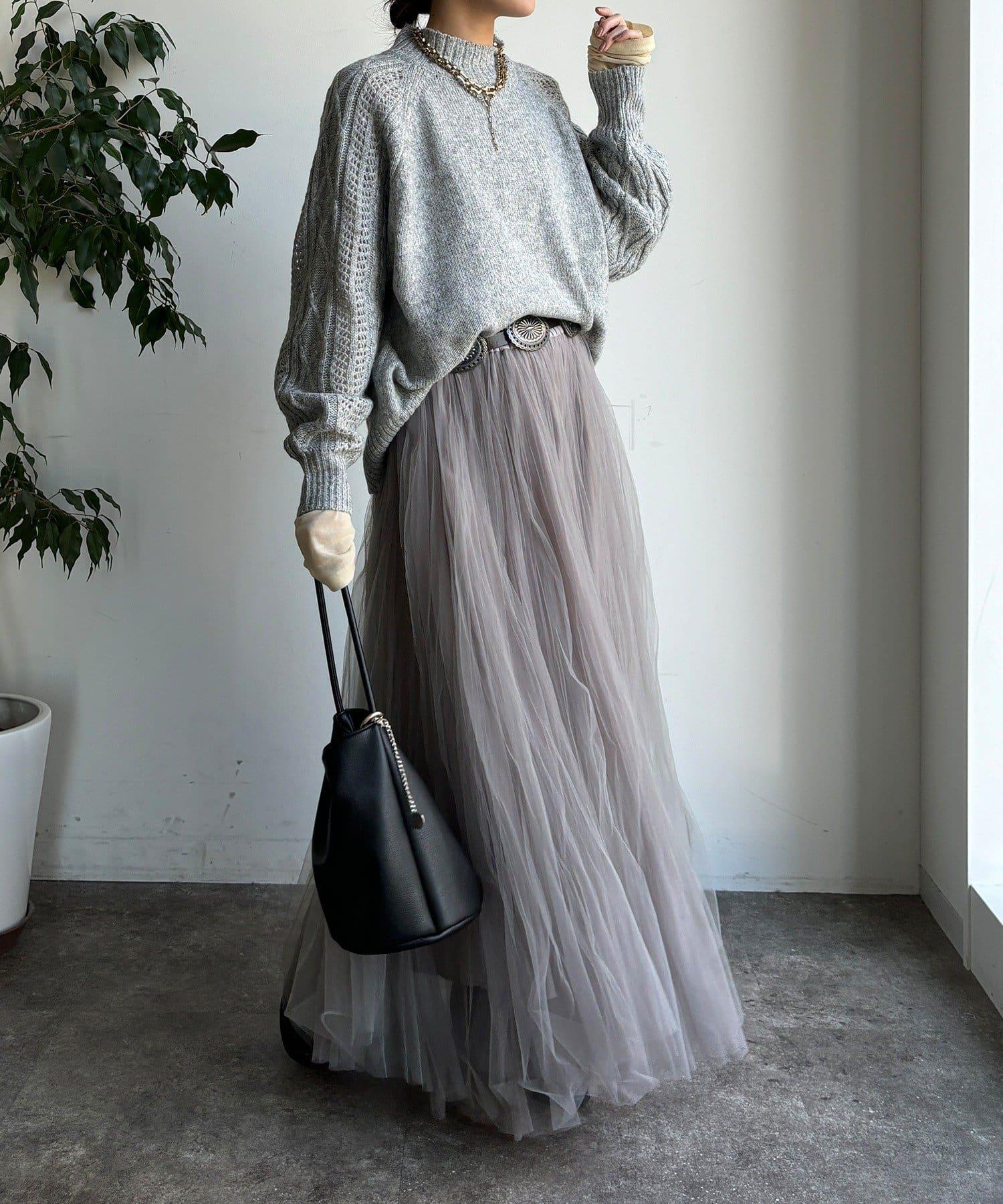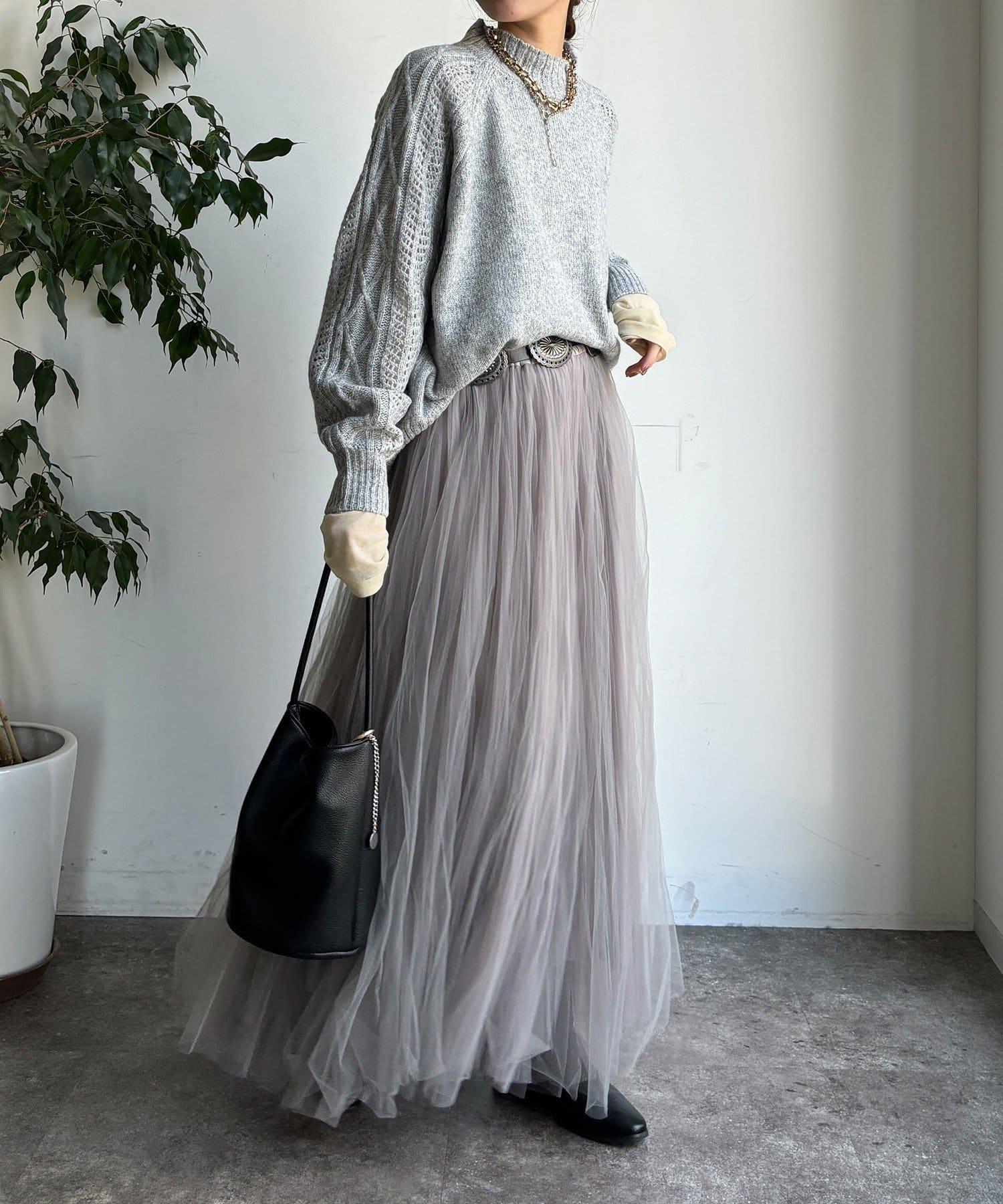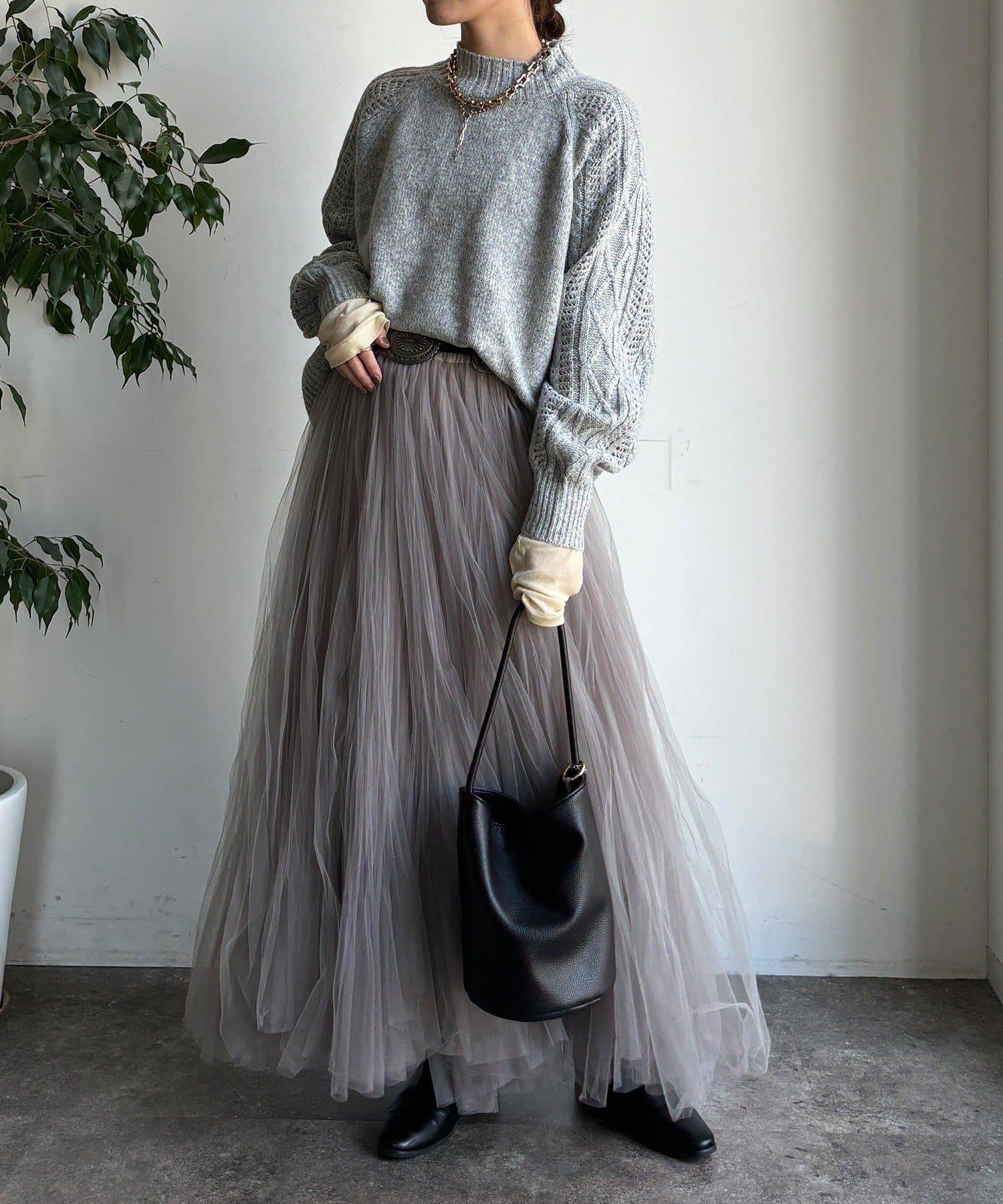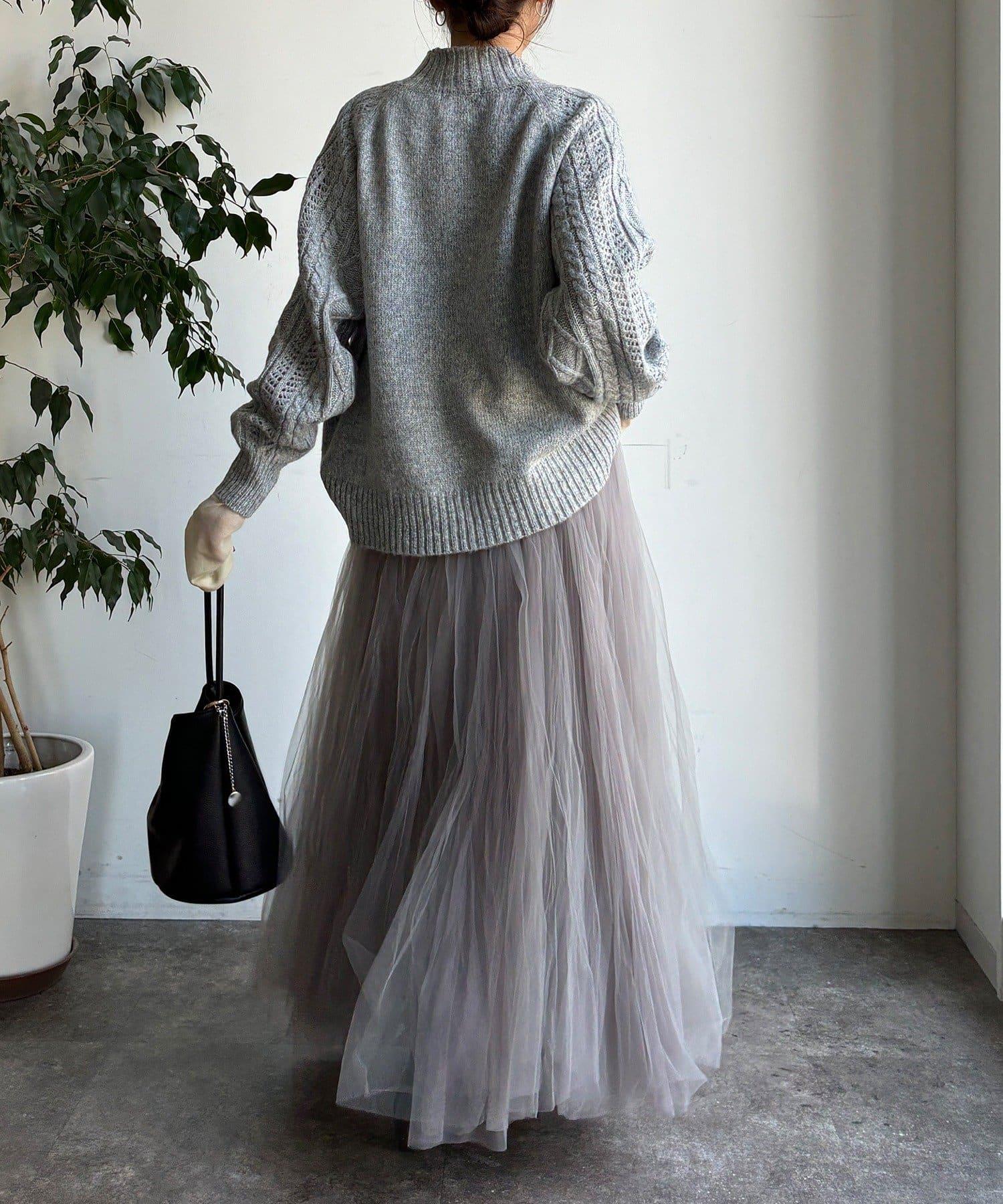 袖子上的針織線具有立體感,營造出適度的寬鬆感。