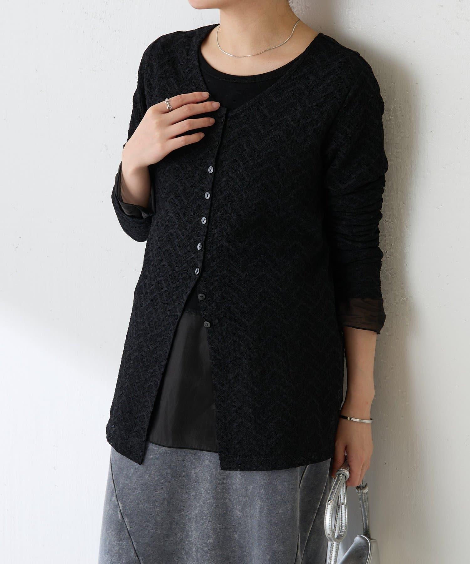 剪裁縫製的開衫,採用寬鬆的 V 開襟設計,穿上後能給人一種女性化的印象。