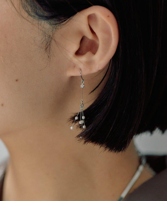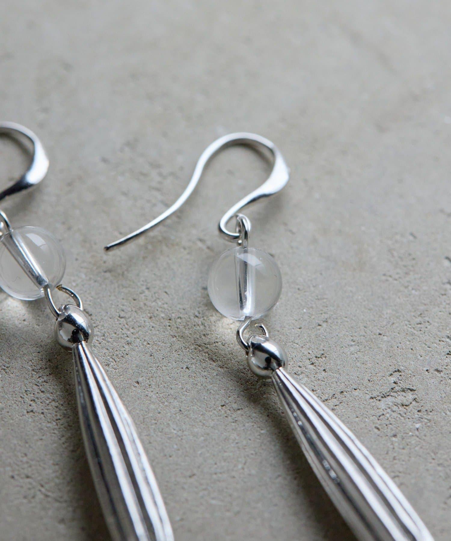 拉長的墜飾鑲嵌著圓形水晶,顯得格外柔美。