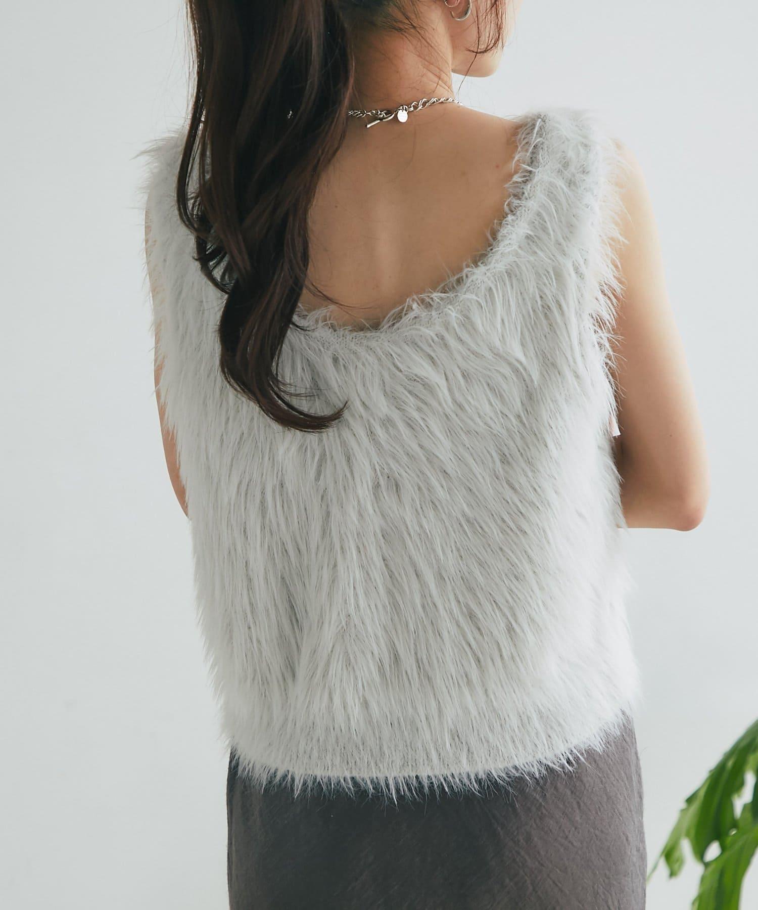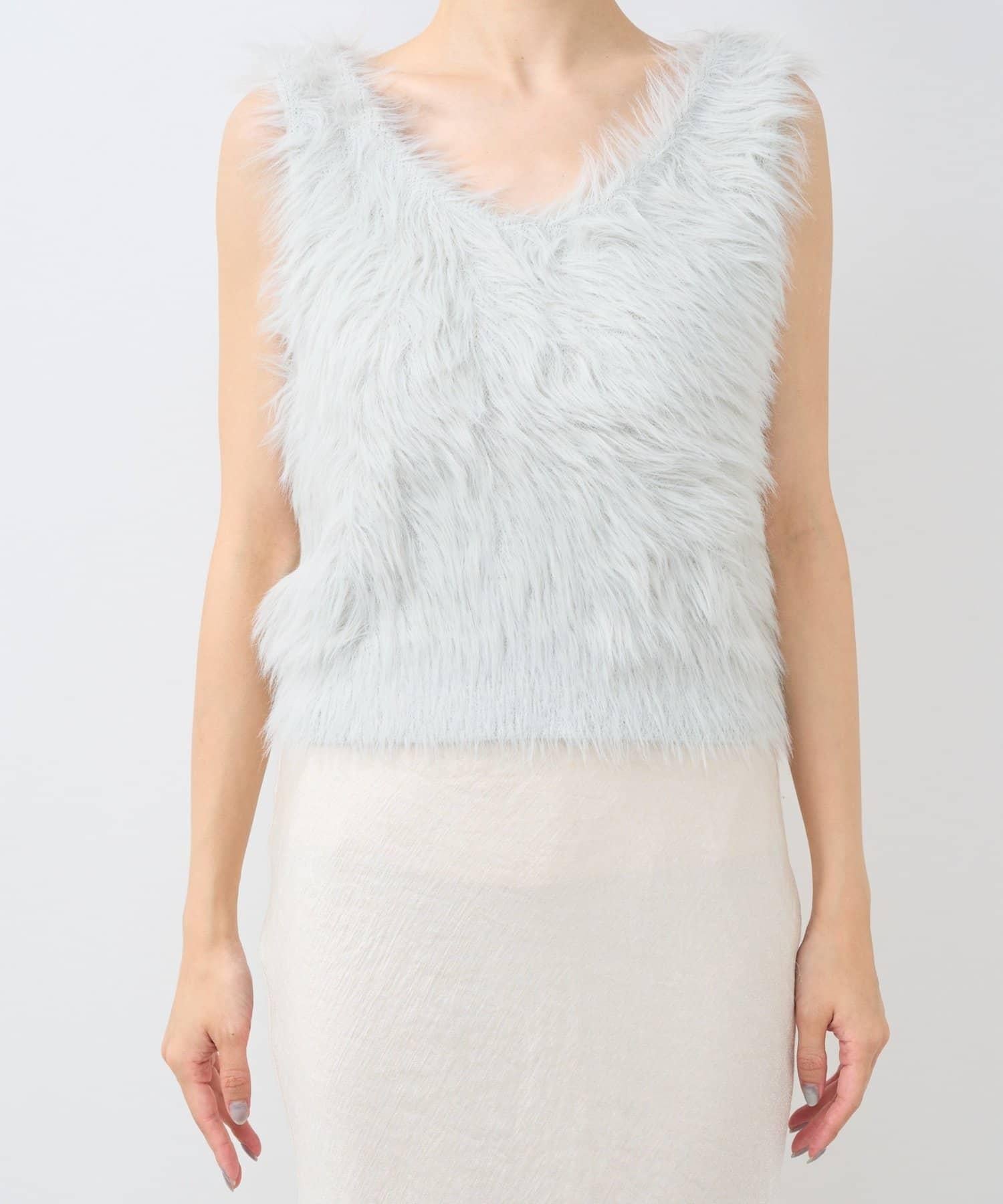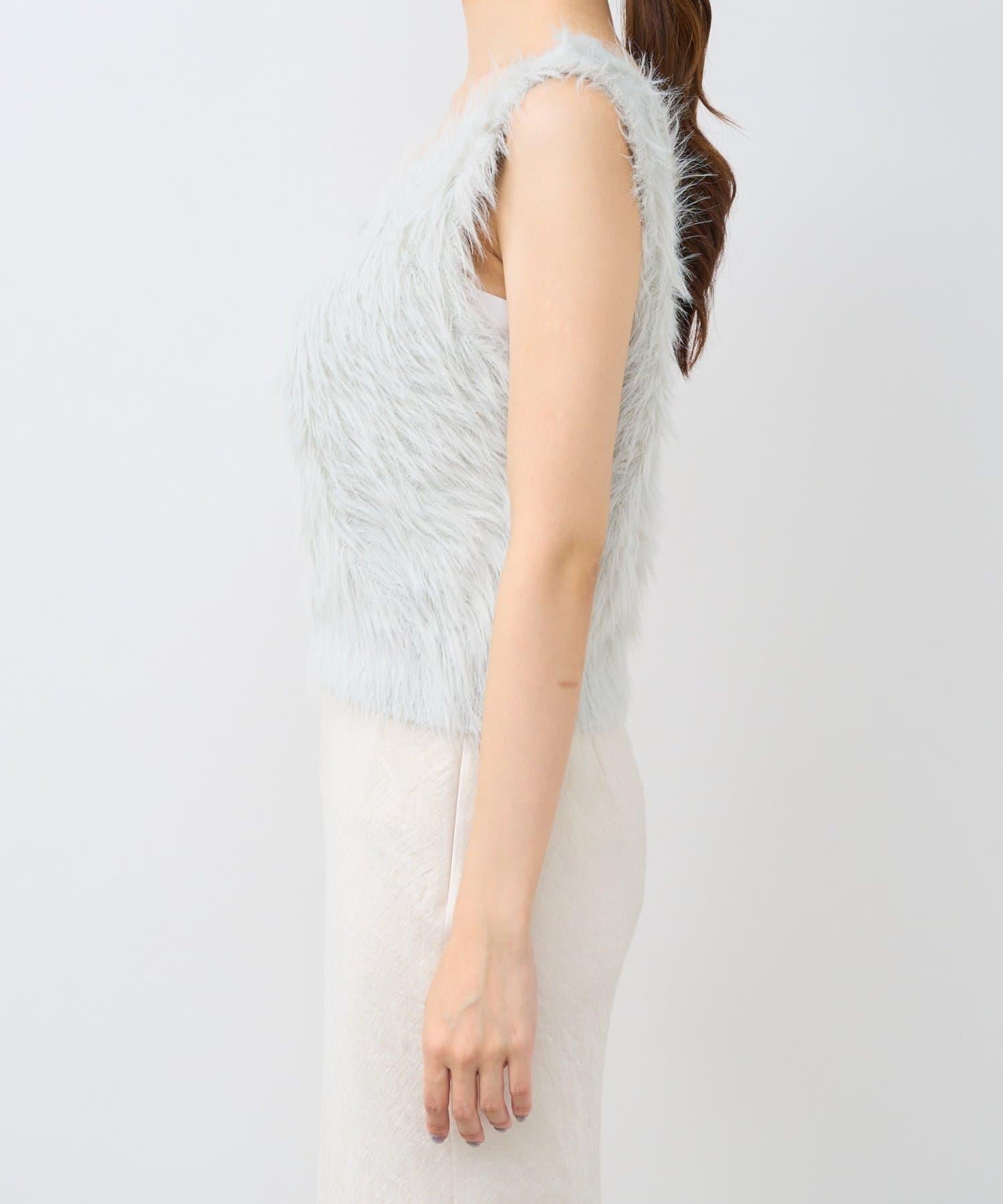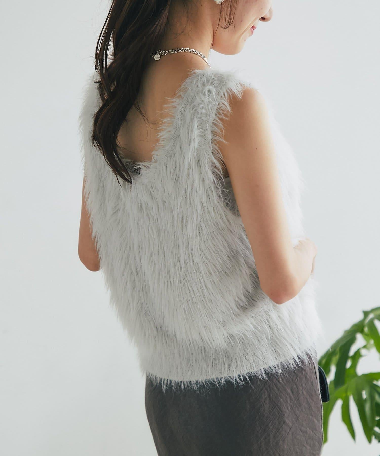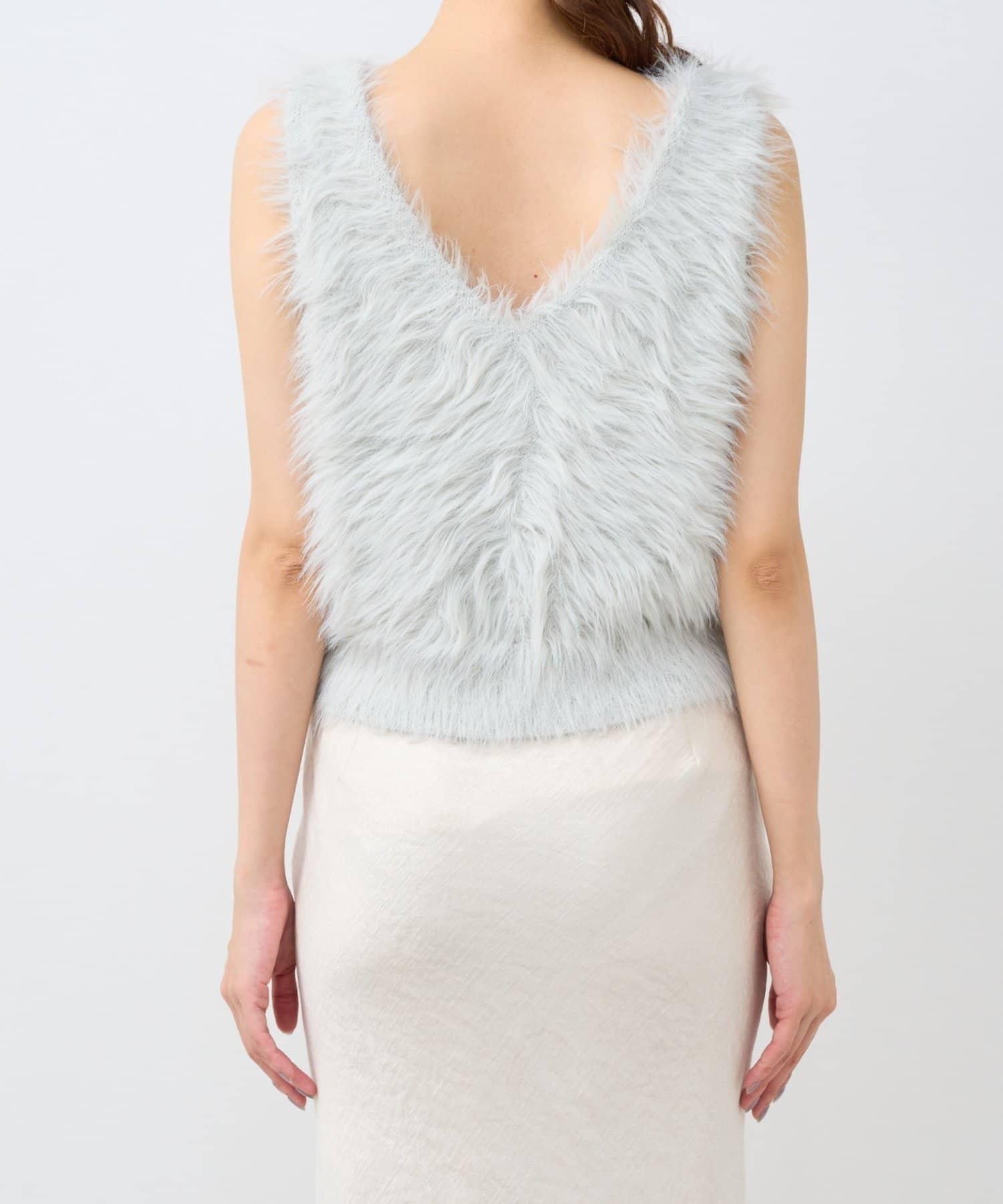 柔軟蓬鬆的針織馬甲,採用搶眼的長毛羽毛材質。