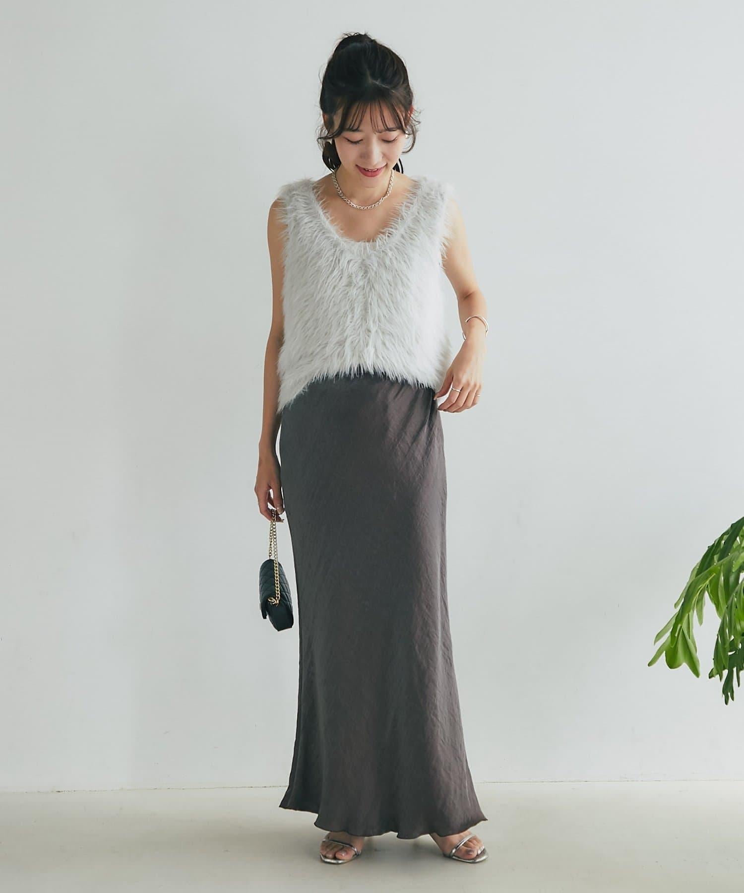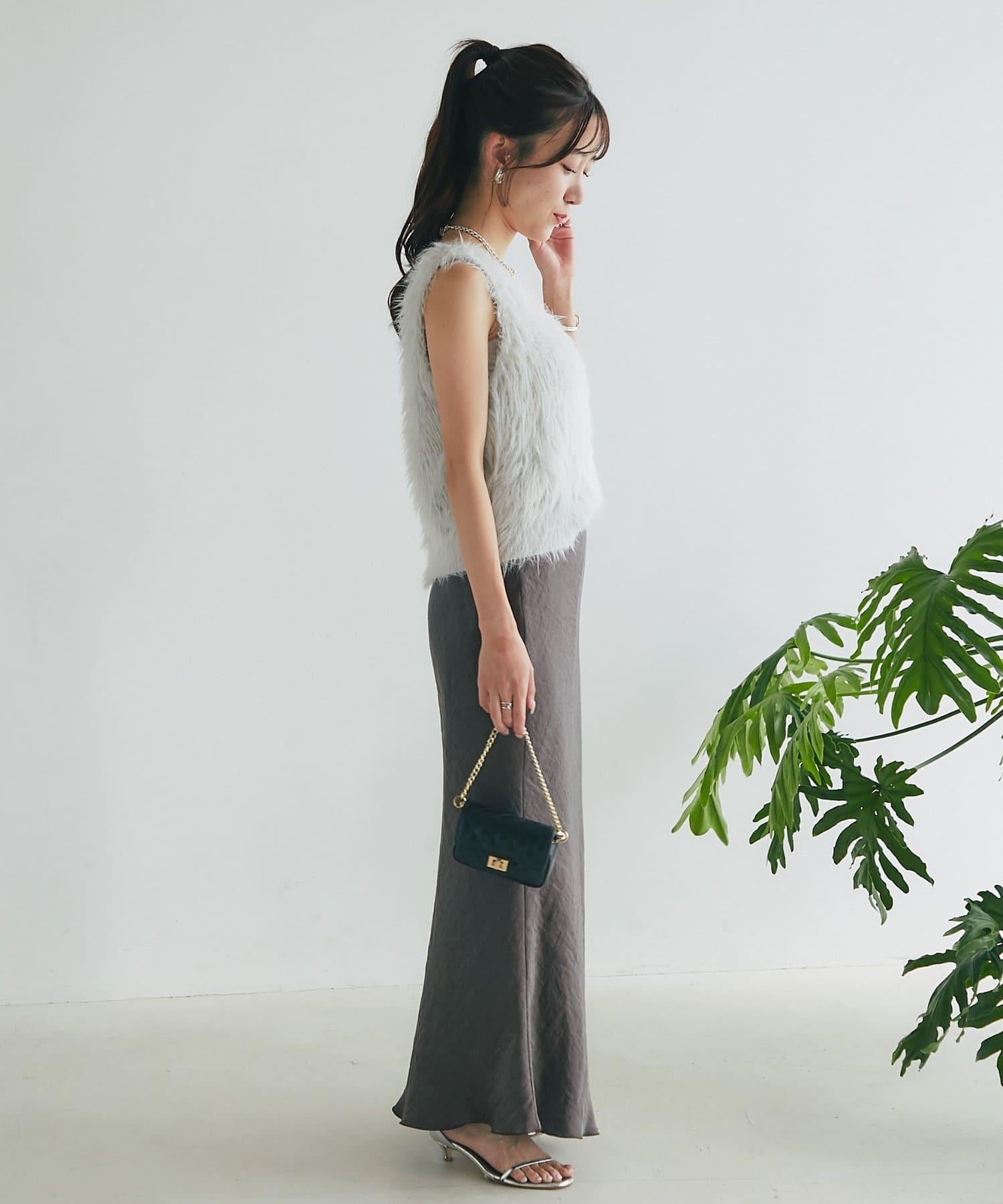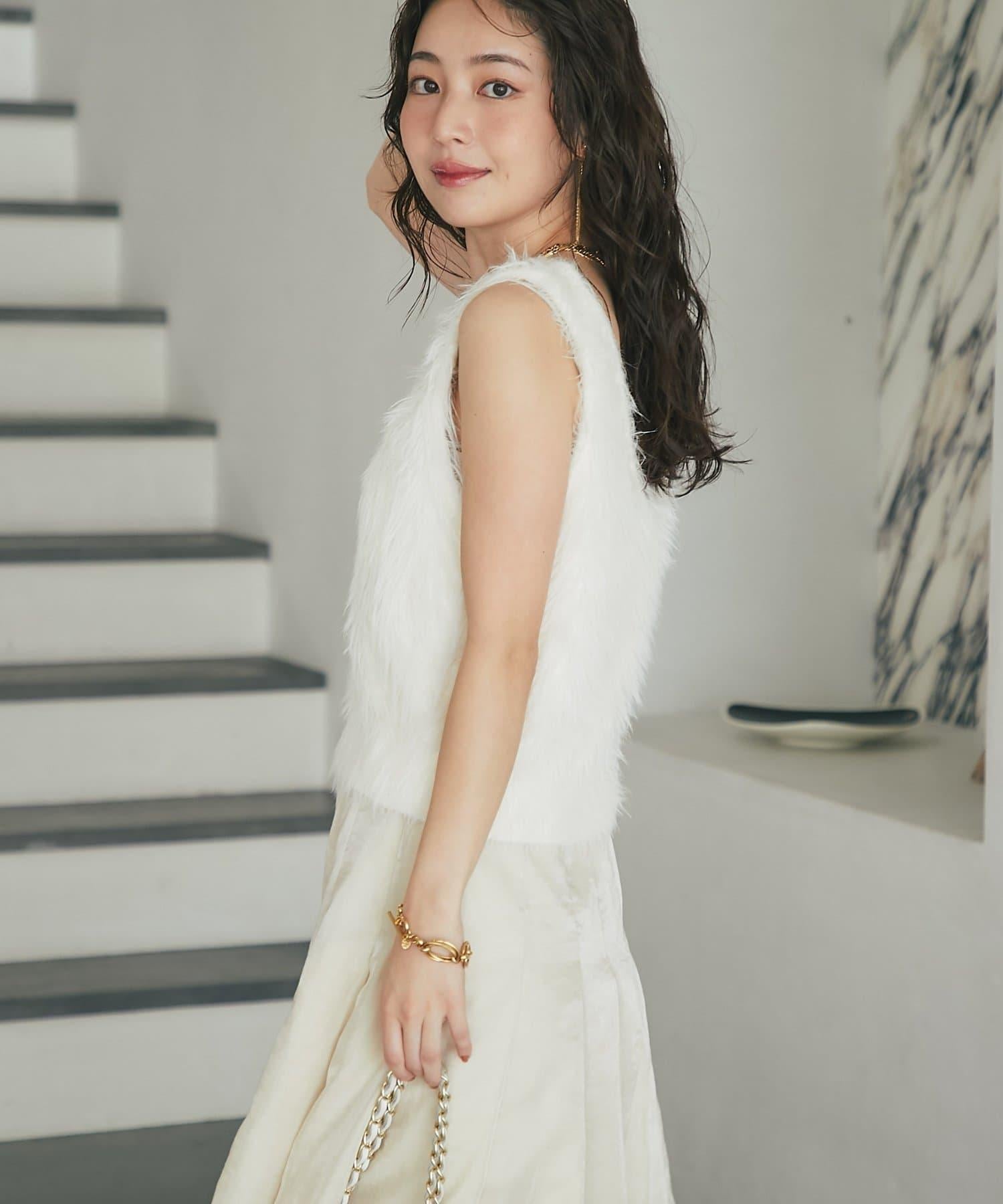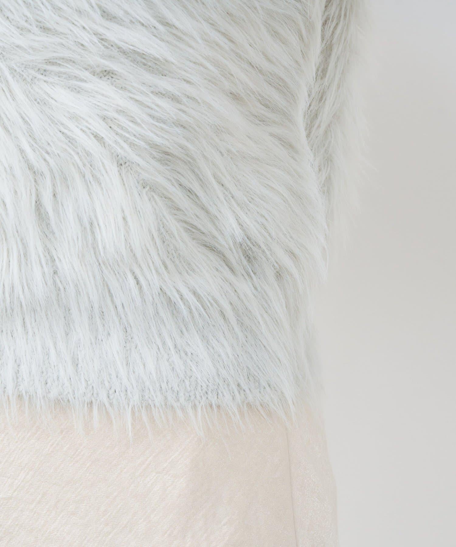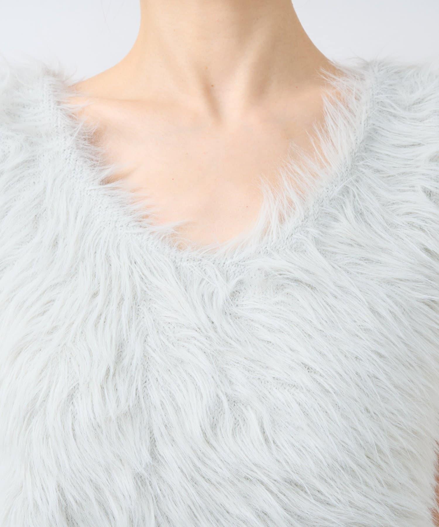 柔軟蓬鬆的針織馬甲,採用搶眼的長毛羽毛材質。