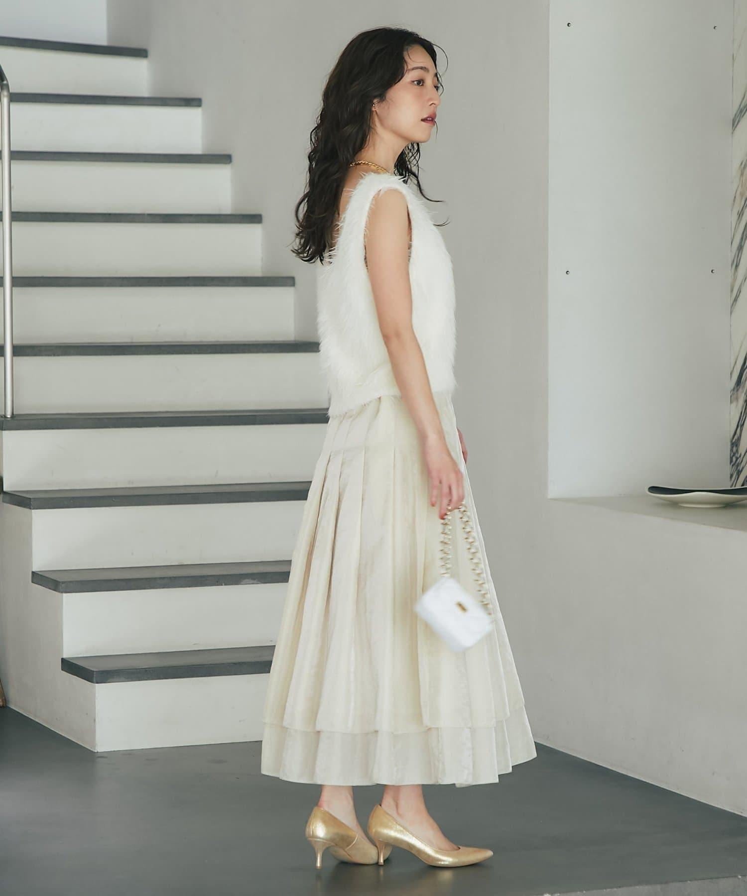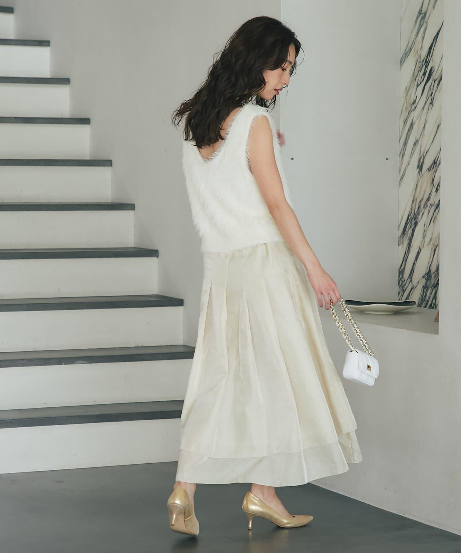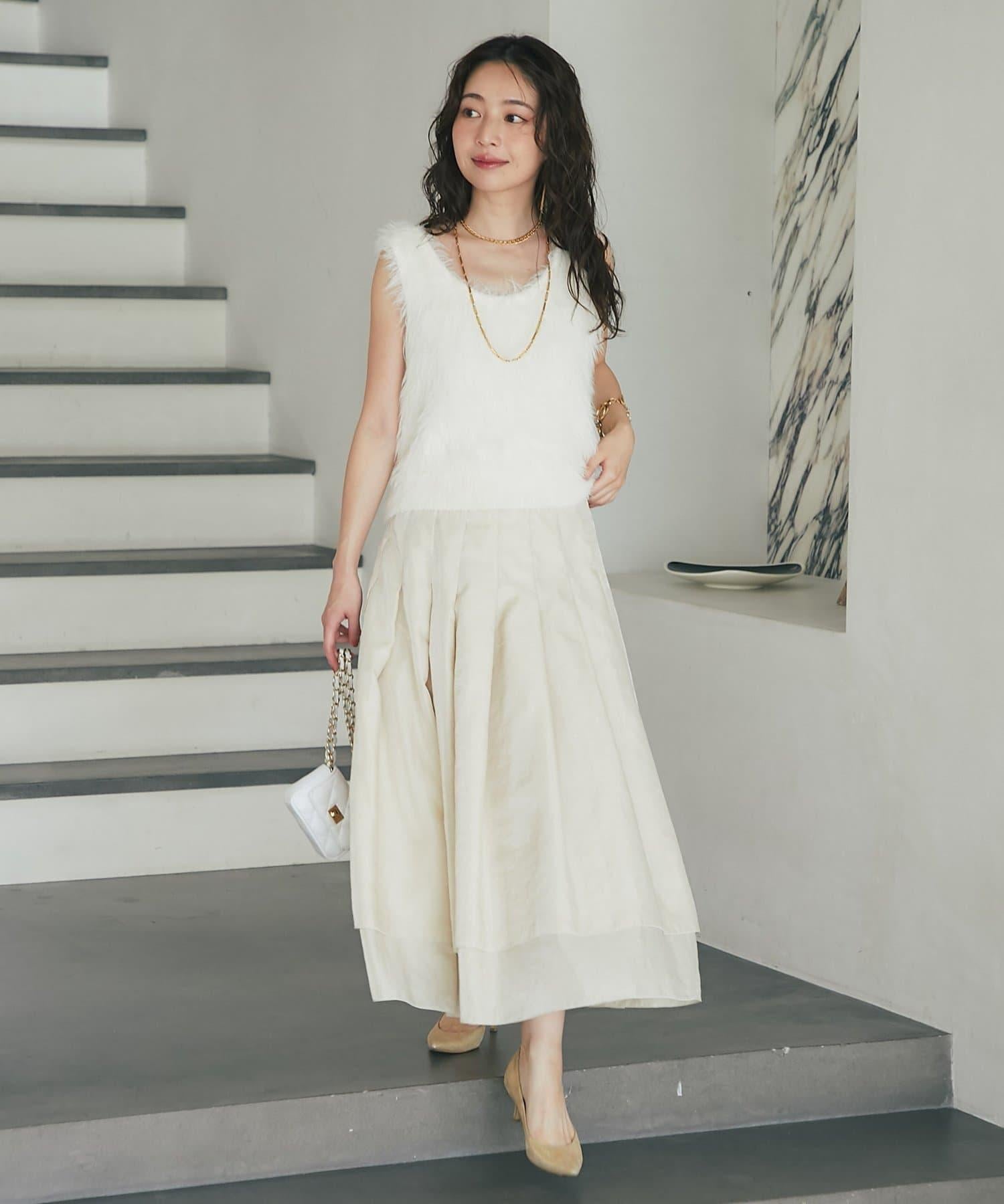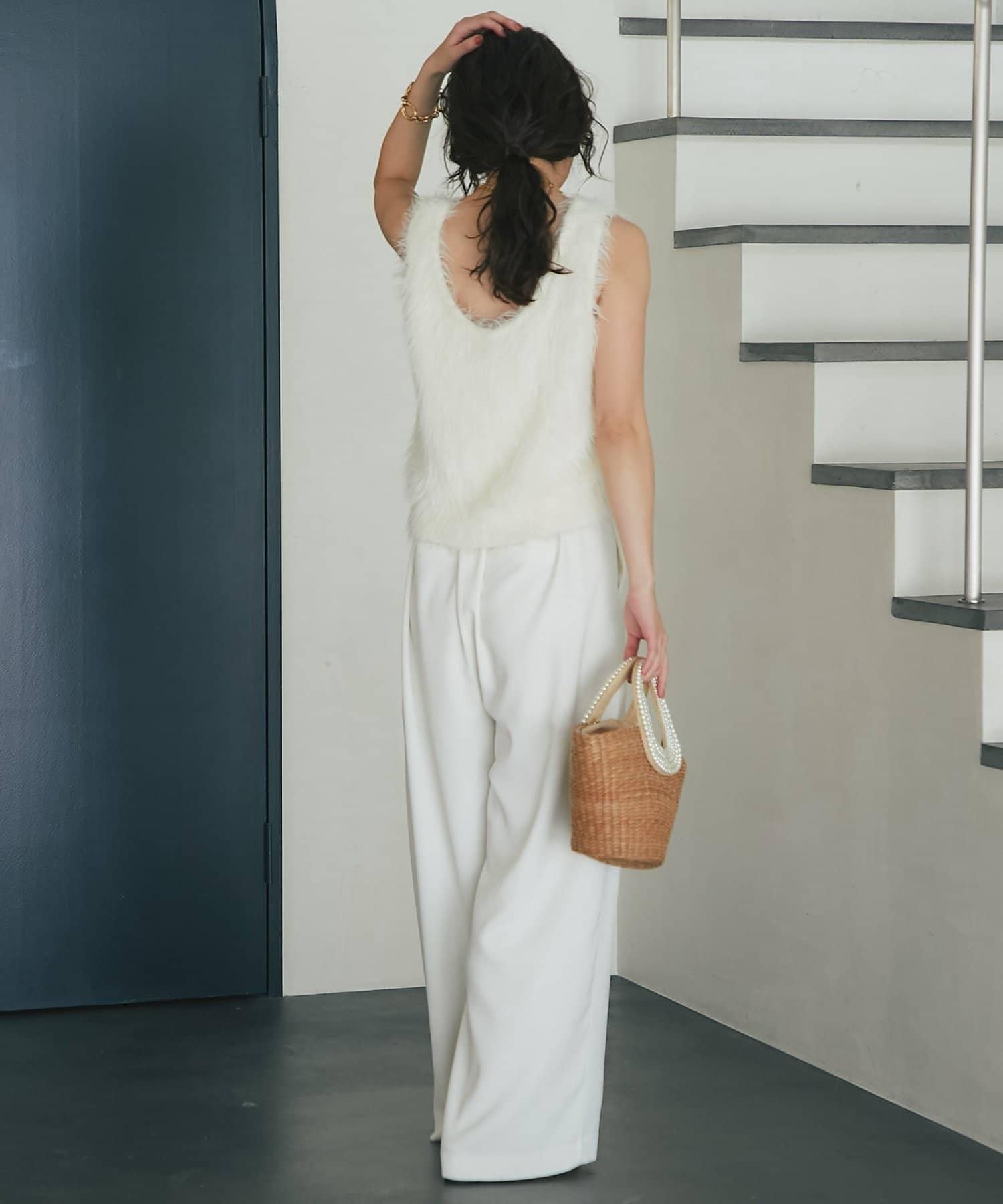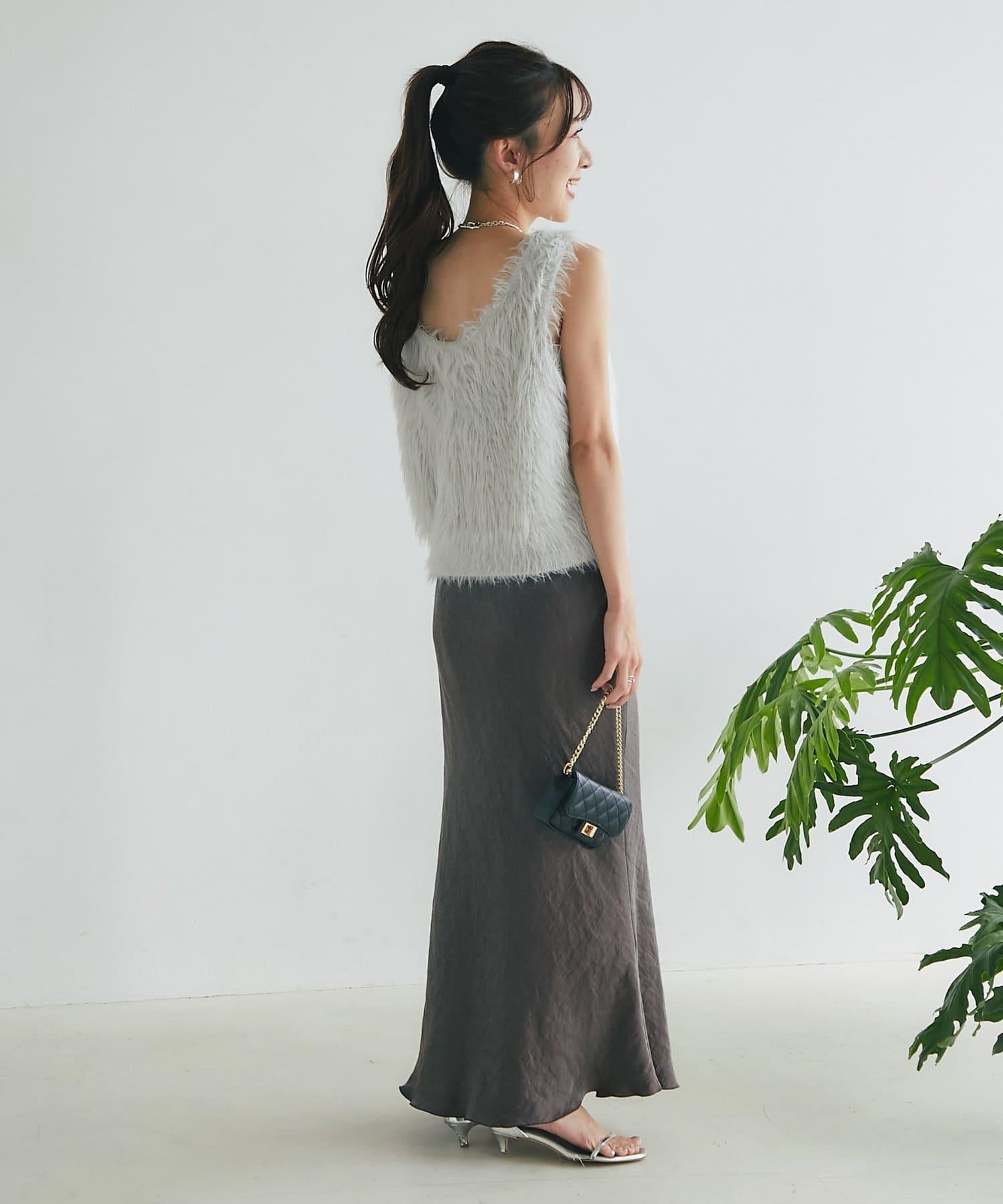 柔軟蓬鬆的針織馬甲,採用搶眼的長毛羽毛材質。