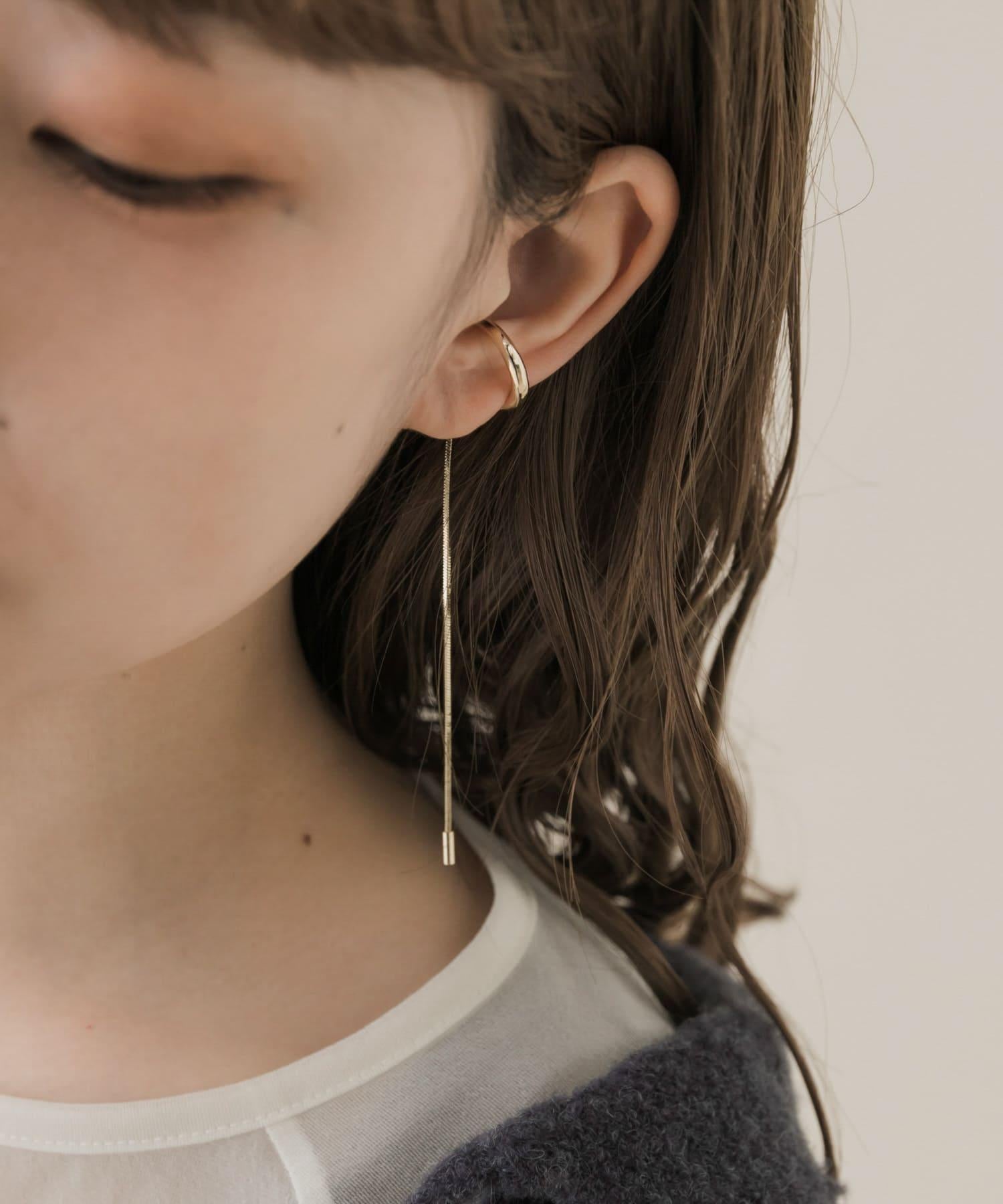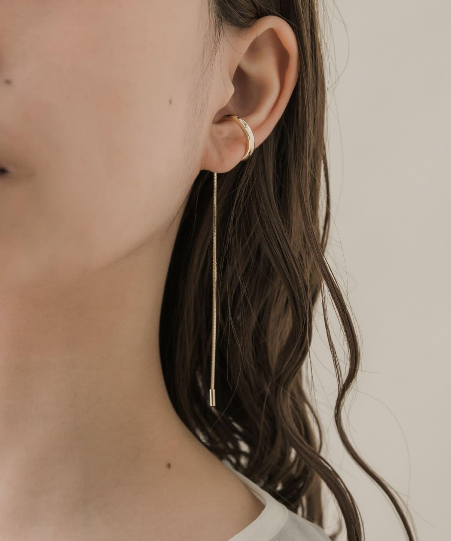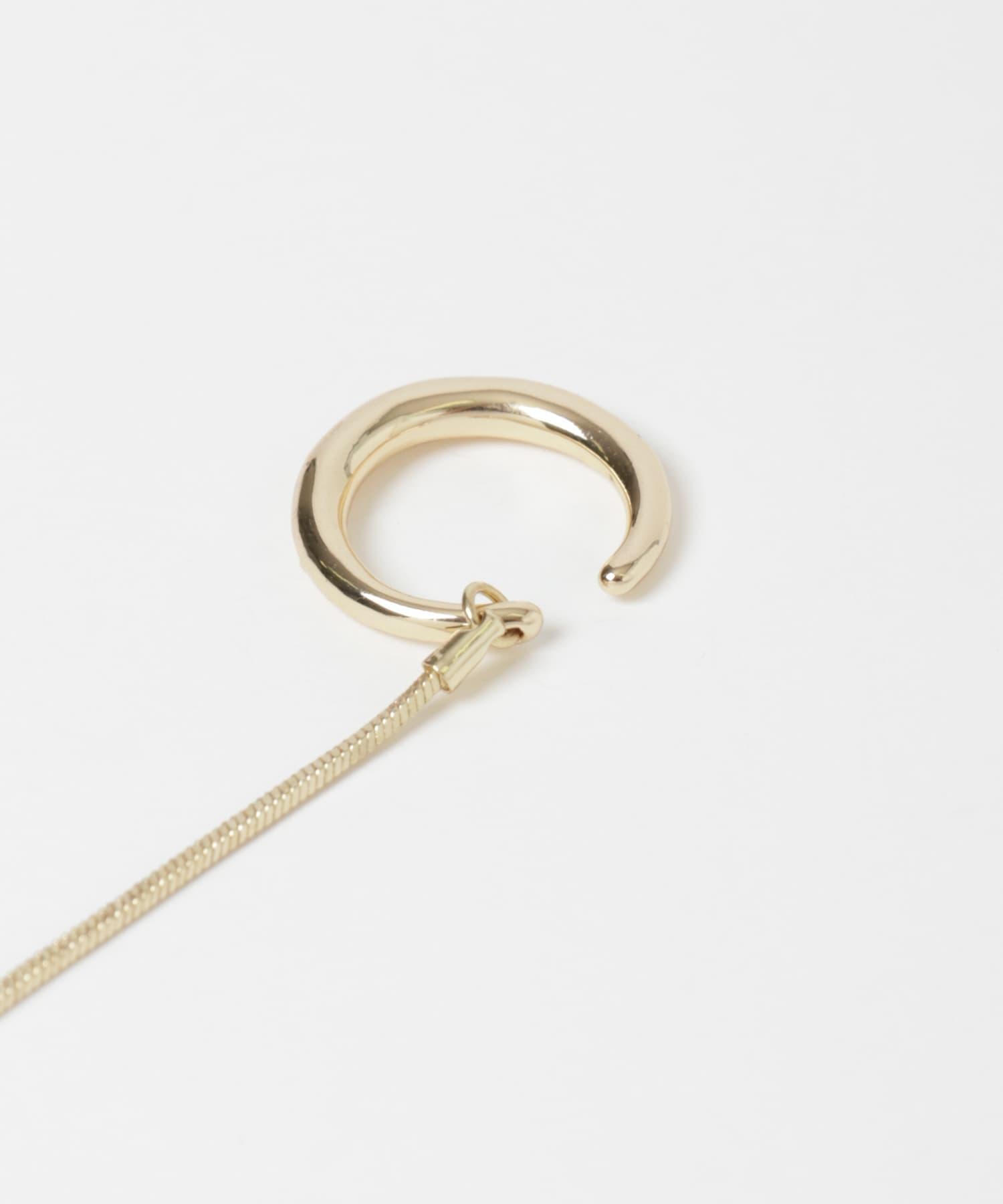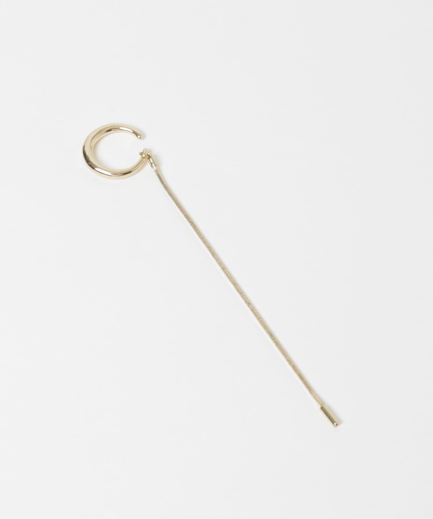 這是一款長廓形單品,蛇形鏈條掛在標準環形耳套上。