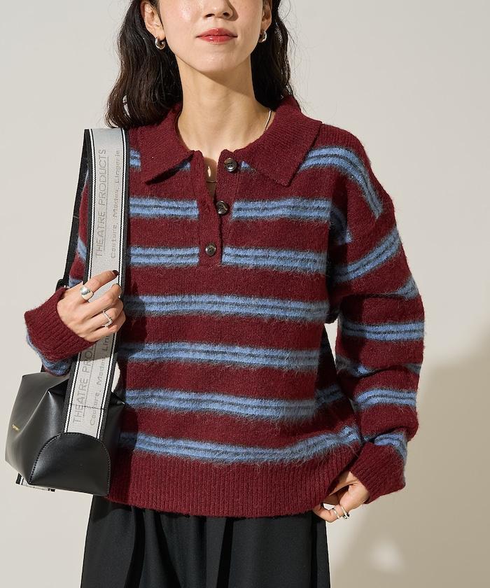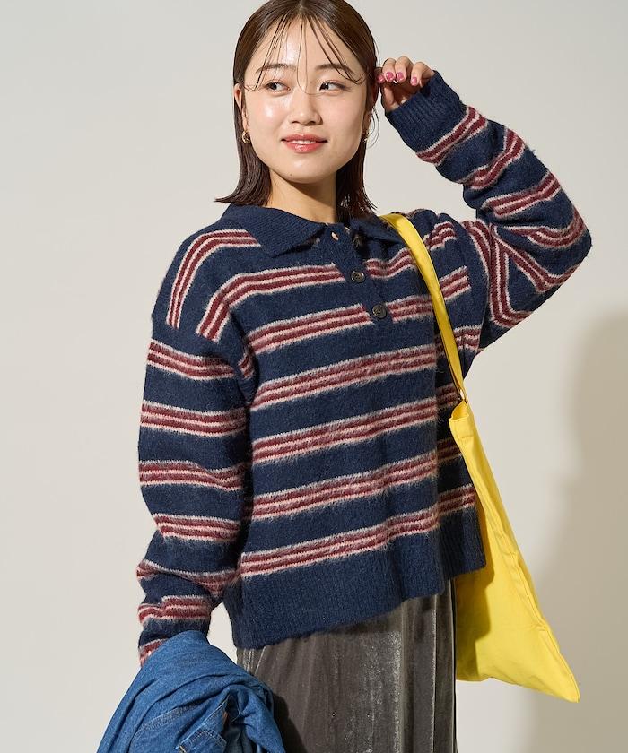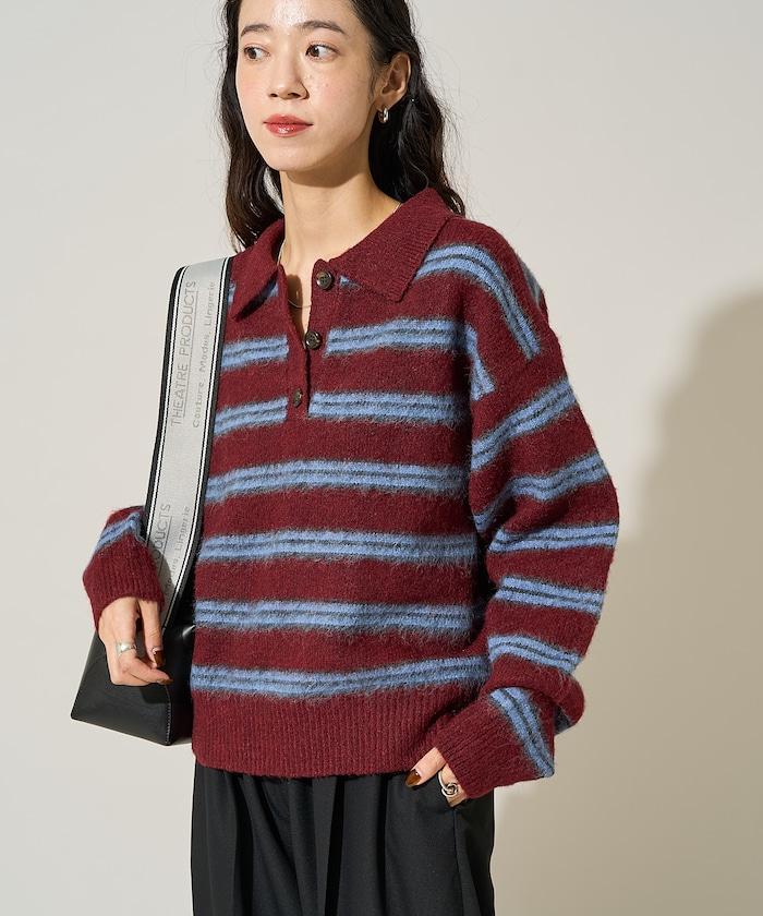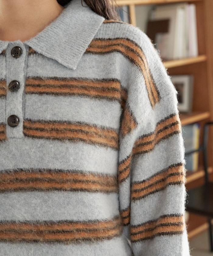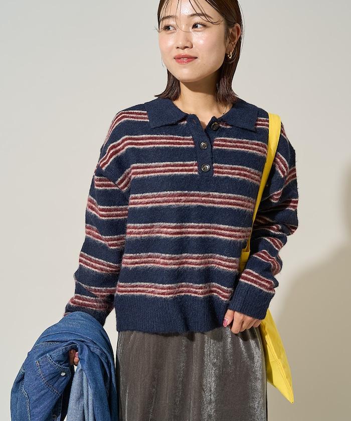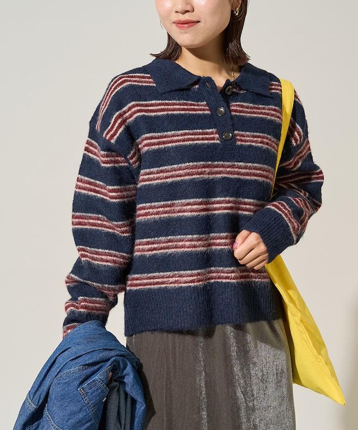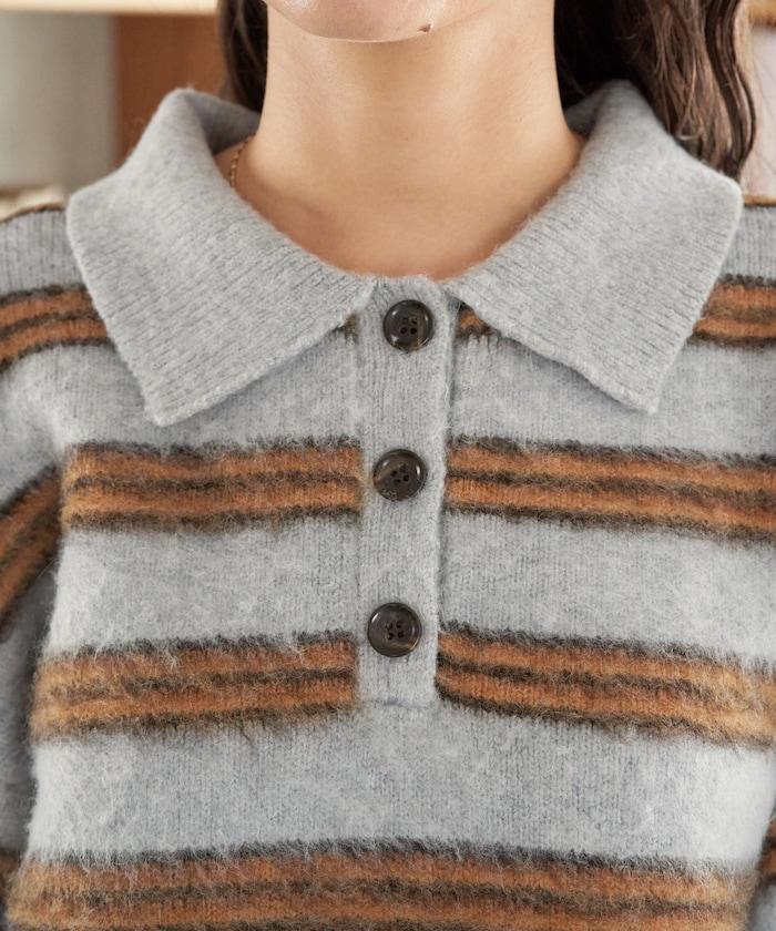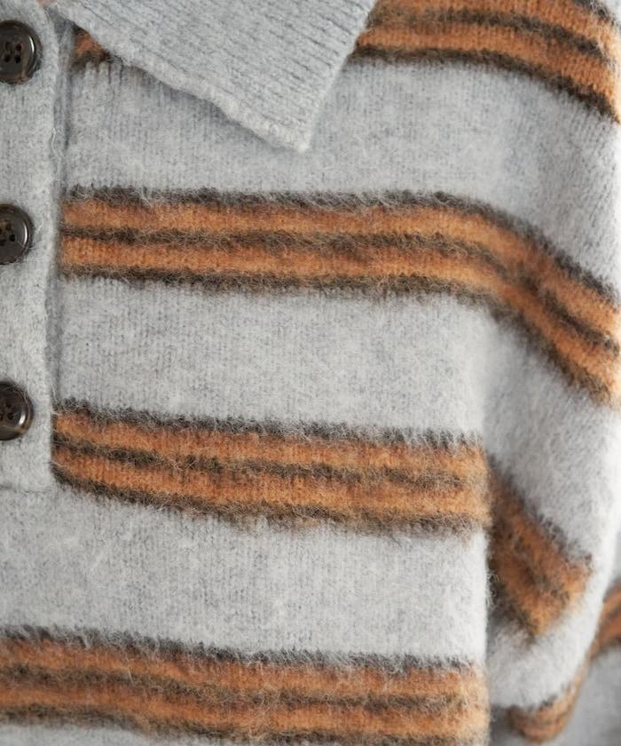 這款針織馬球衫在休閒氣息濃郁的多條紋圖案與蓬鬆的面料之間呈現出迷人的空隙。