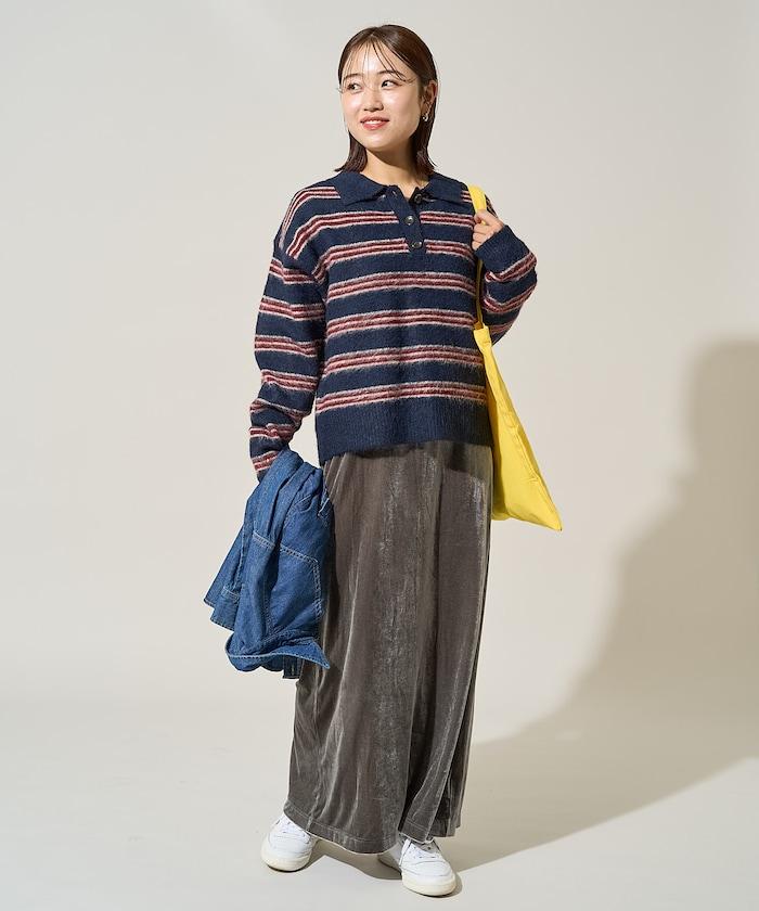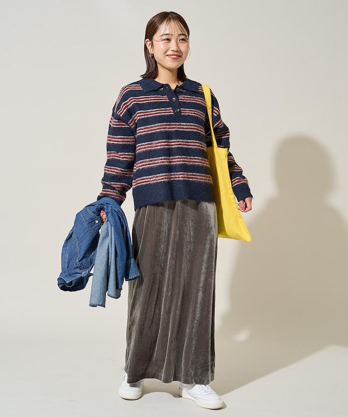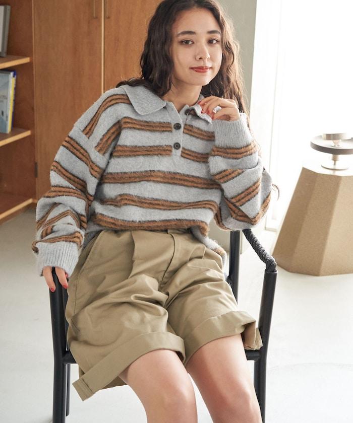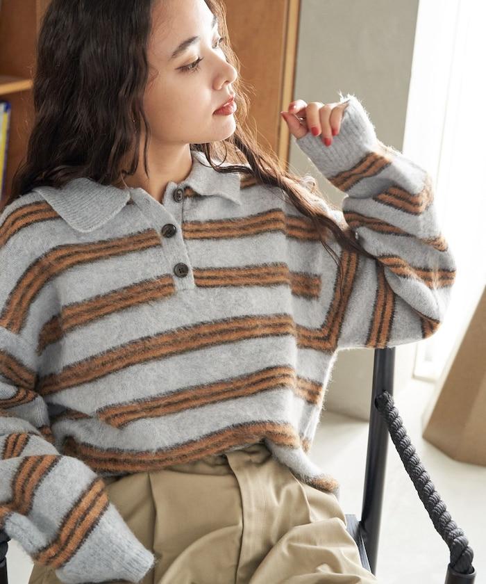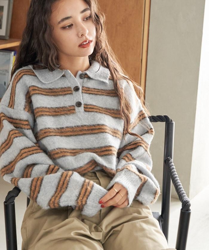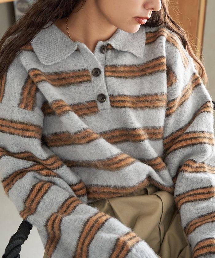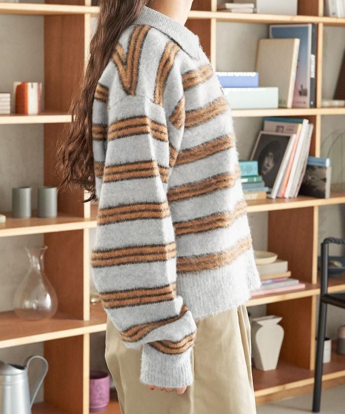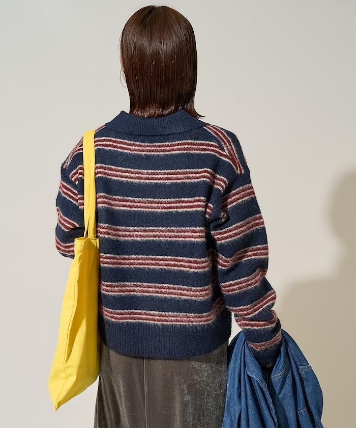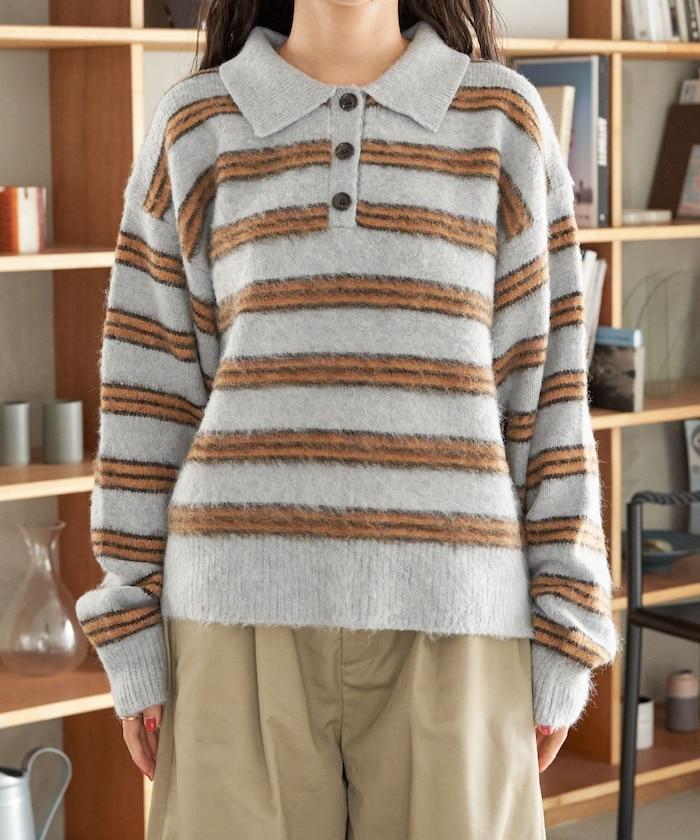 這款針織馬球衫在休閒氣息濃郁的多條紋圖案與蓬鬆的面料之間呈現出迷人的空隙。