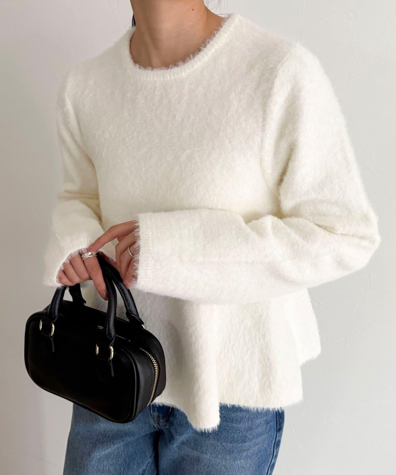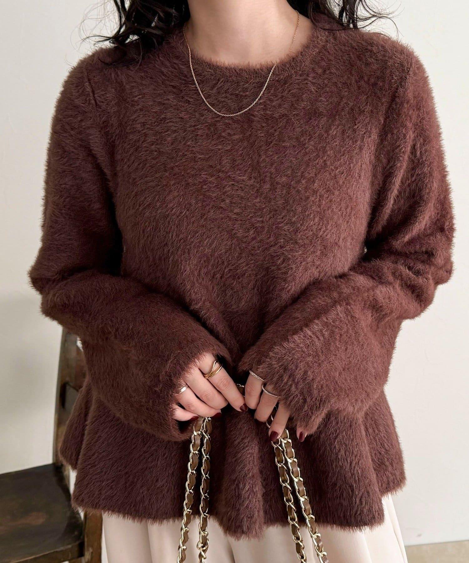長毛絨荷葉下襬針織套頭衫