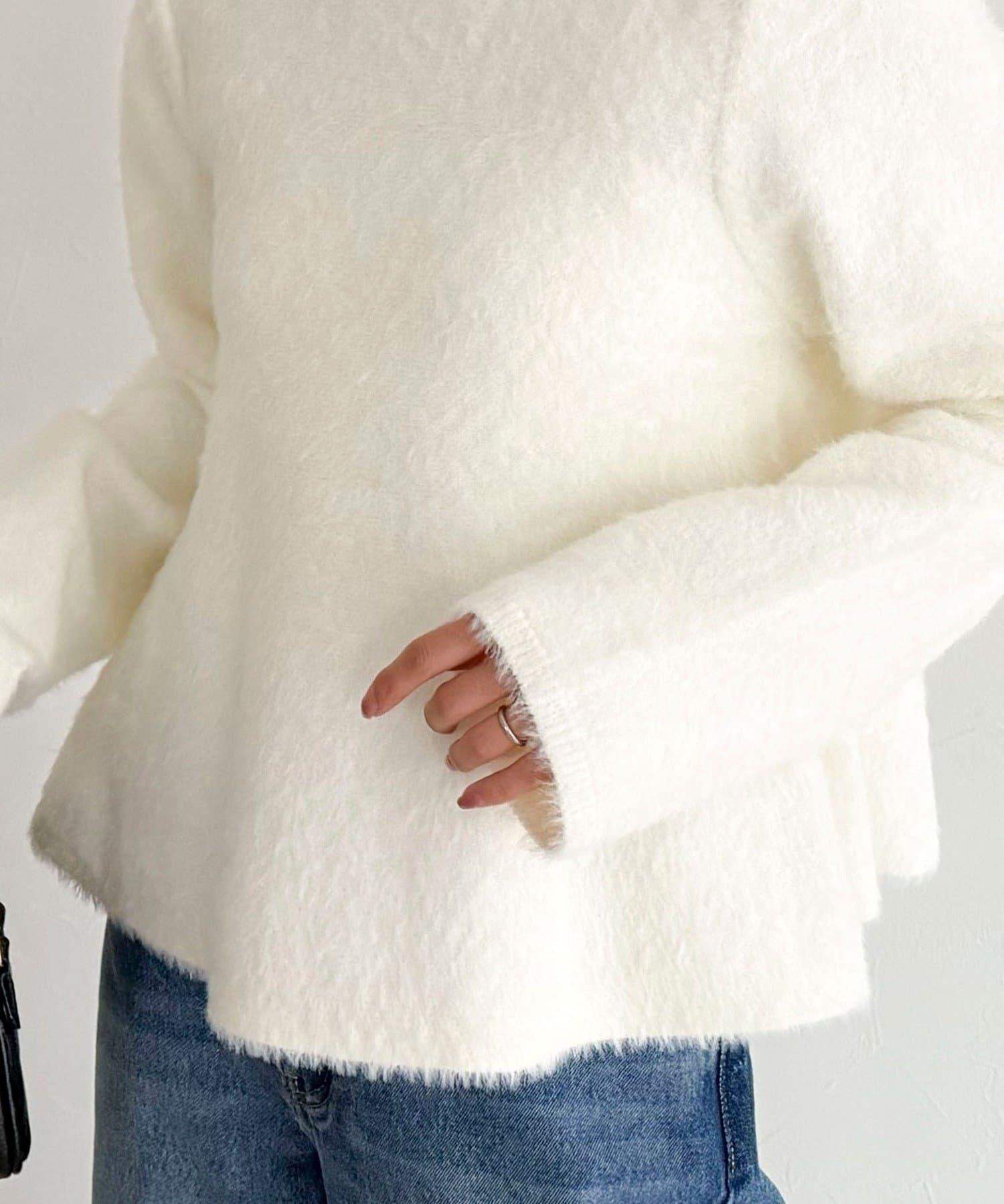 這款針織套衫採用蓬鬆的尼龍絨毛面料。