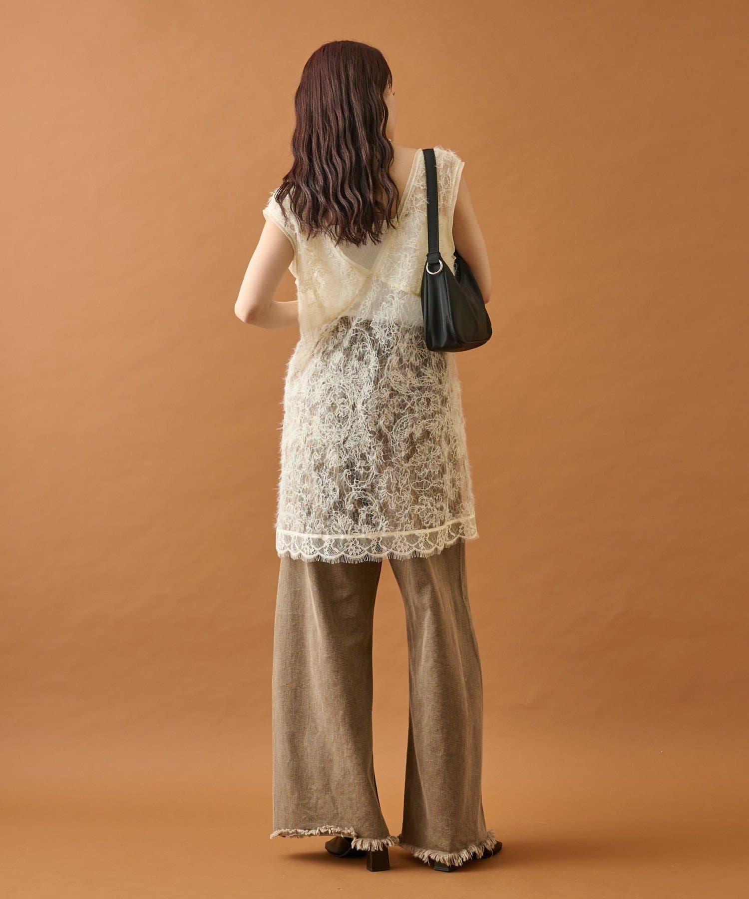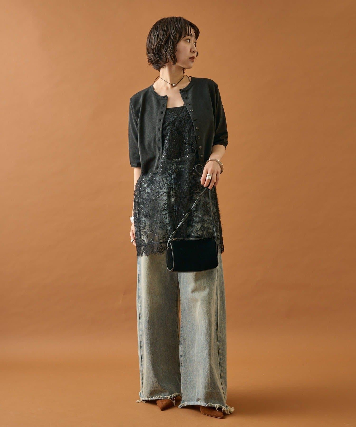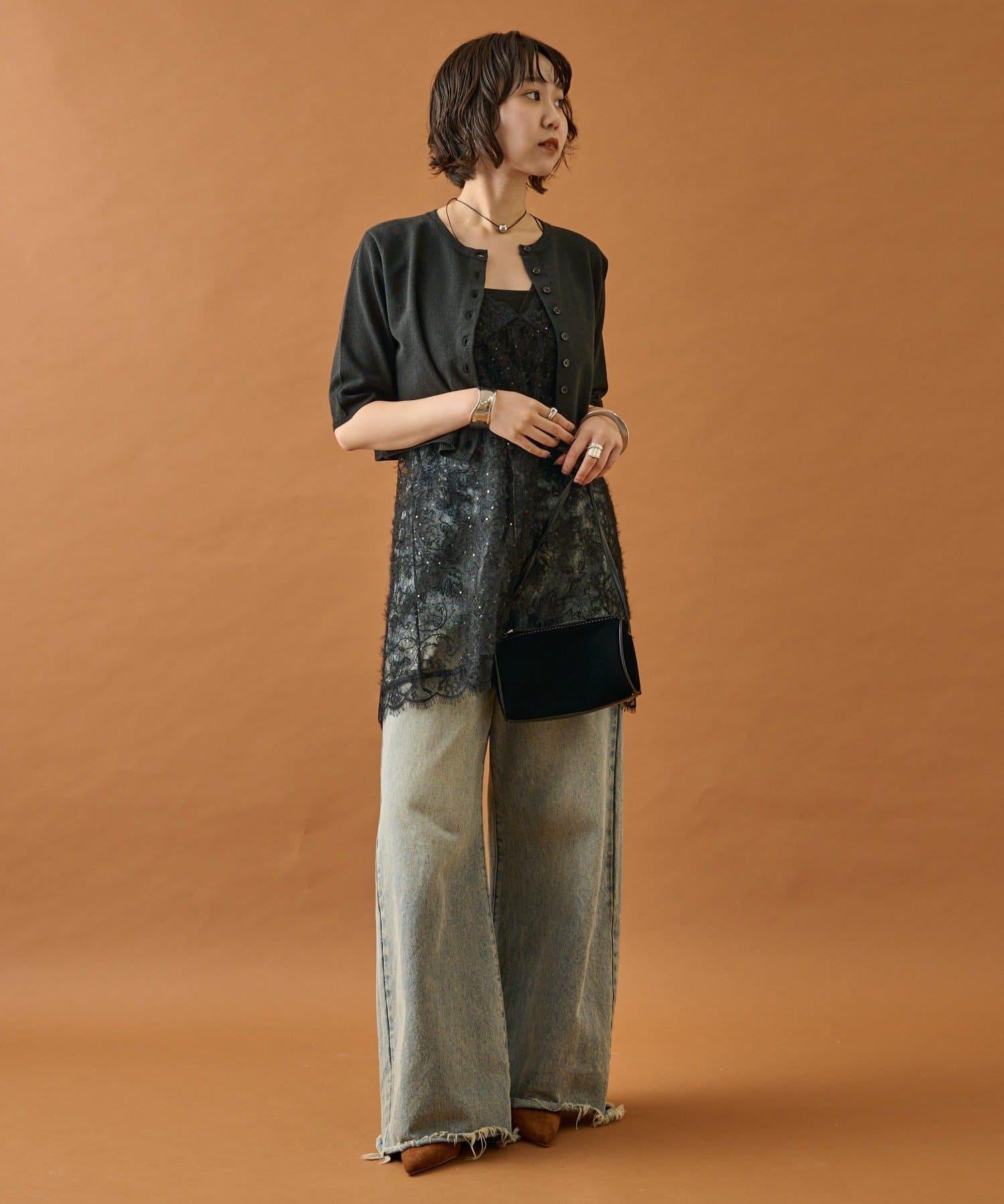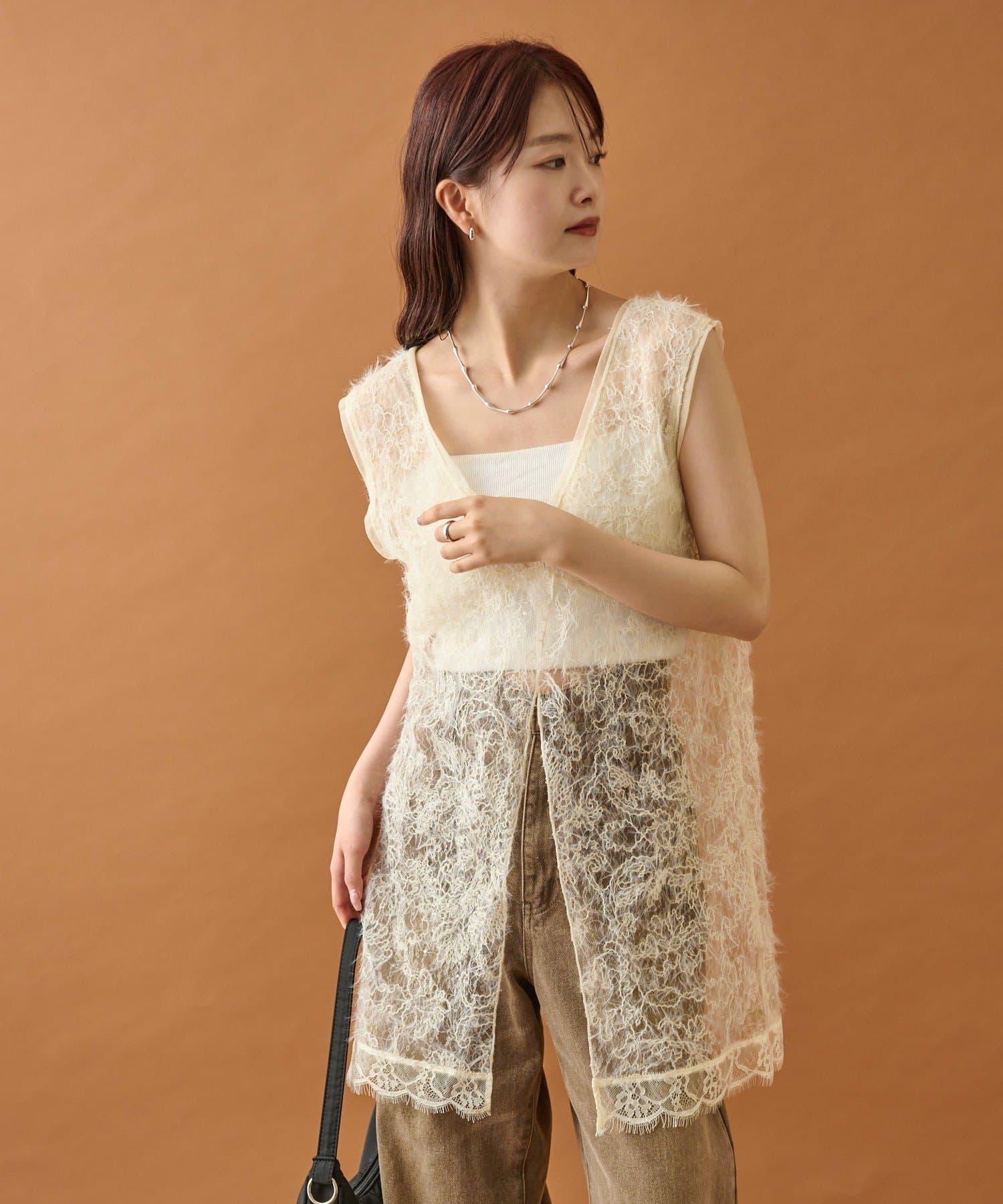 深 V 領設計讓臉部看起來更乾淨,非常適合疊穿。蕾絲下襬為其增添了微妙的女性氣息。
