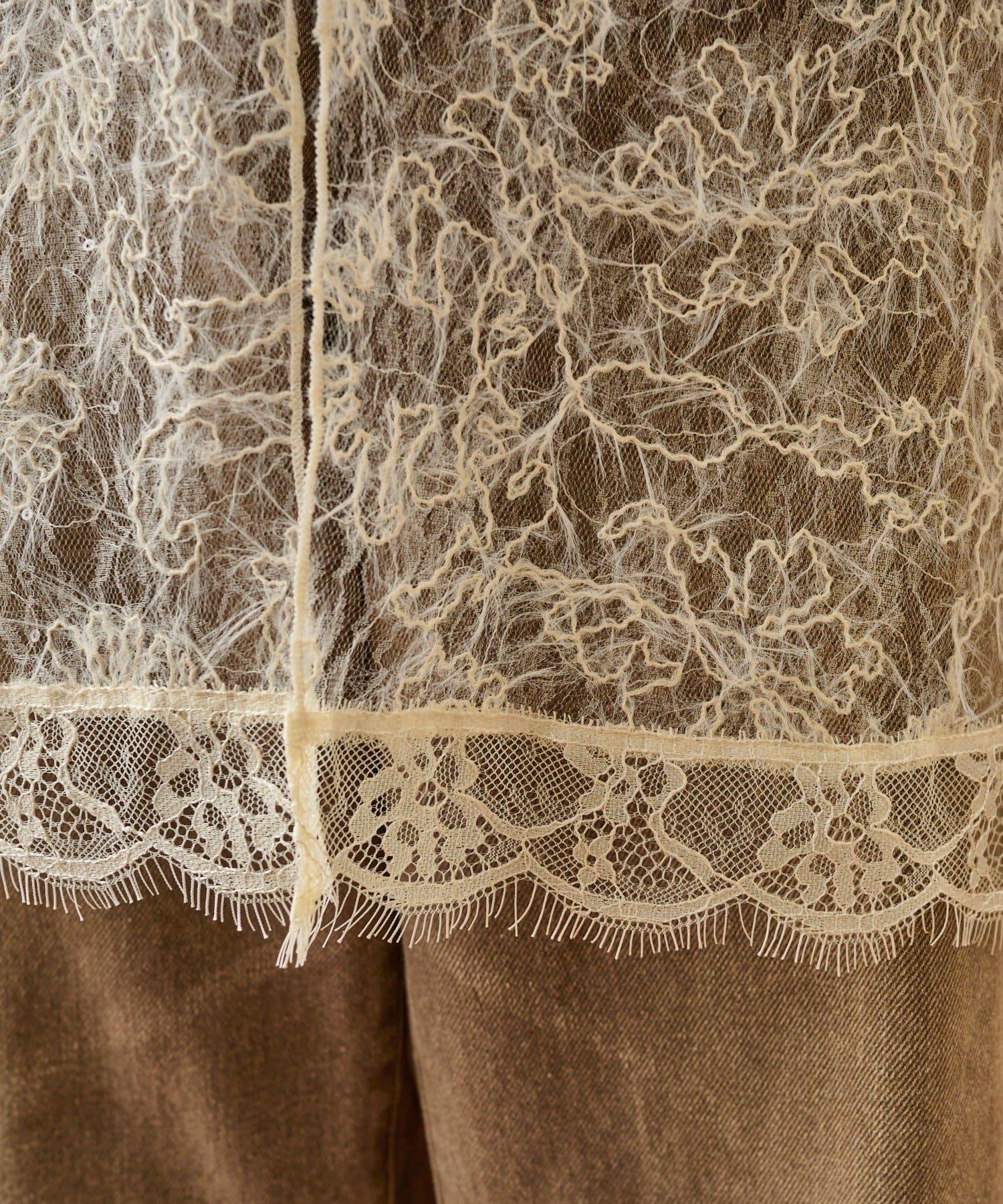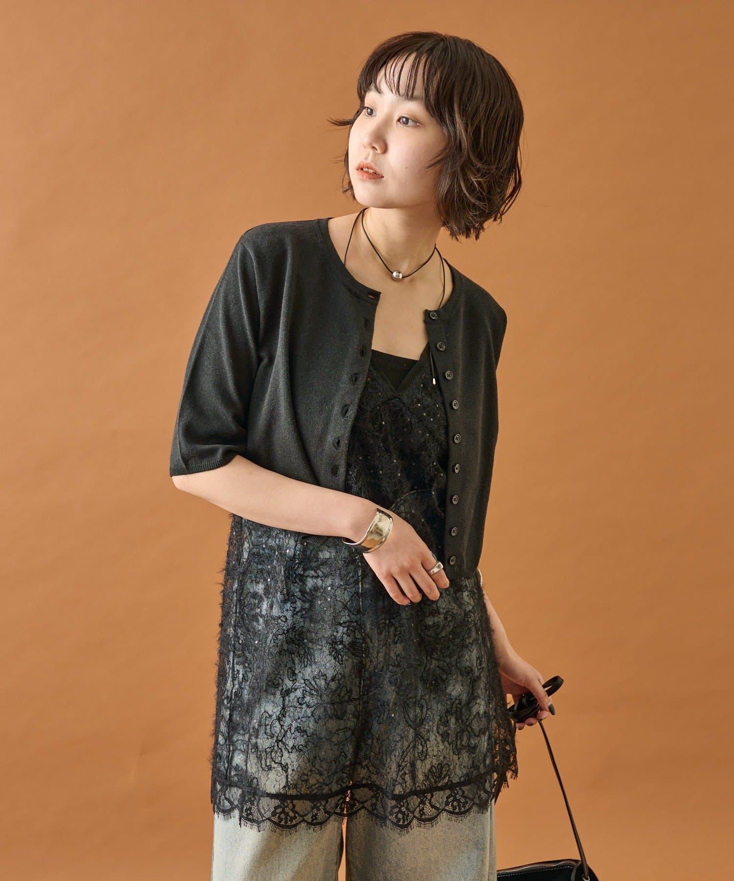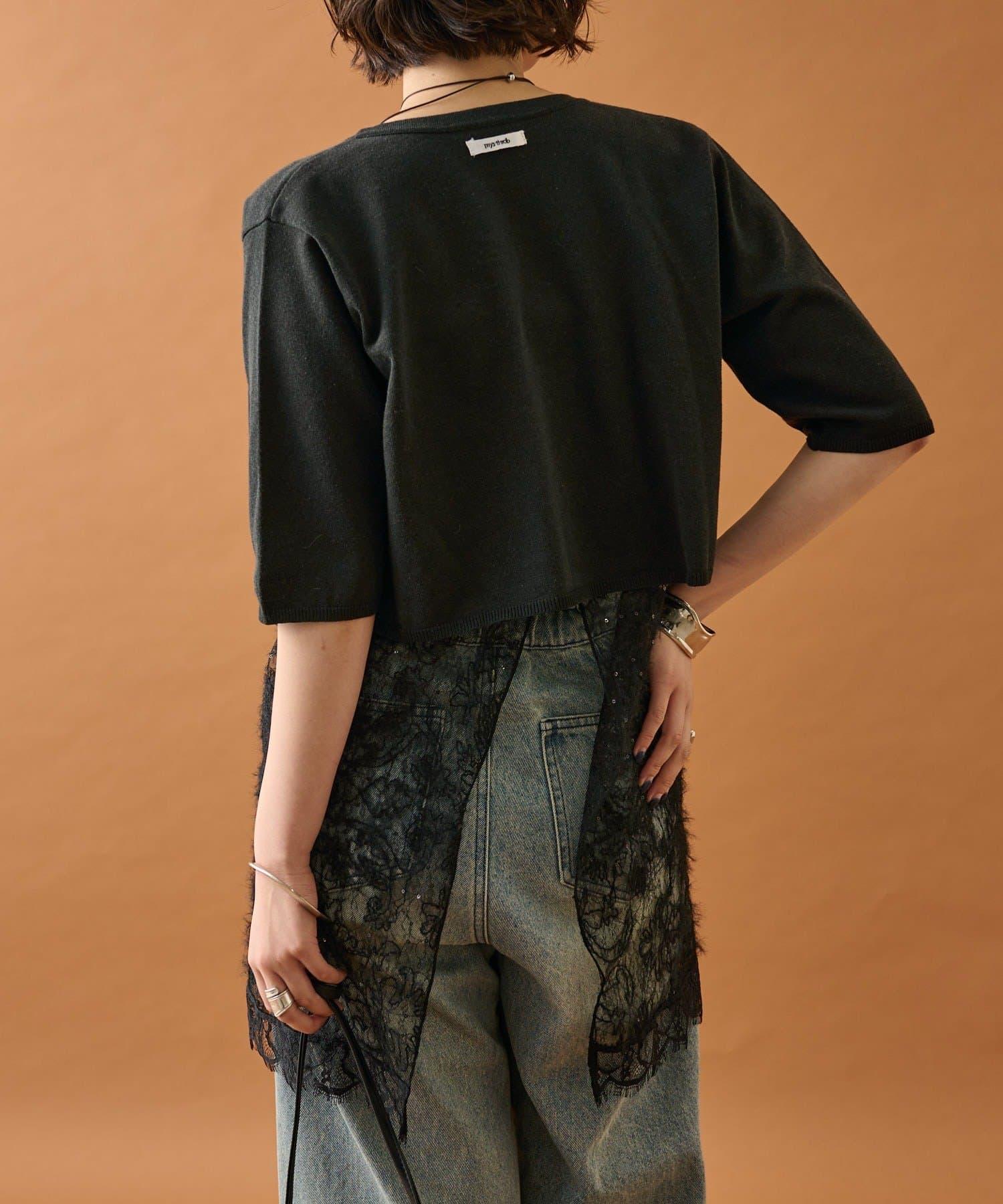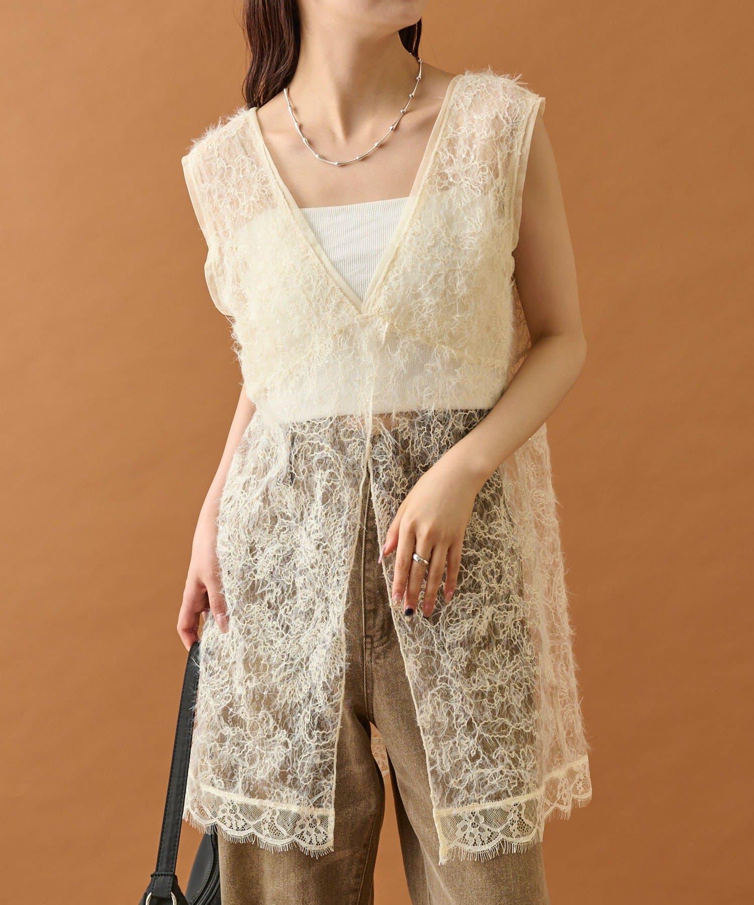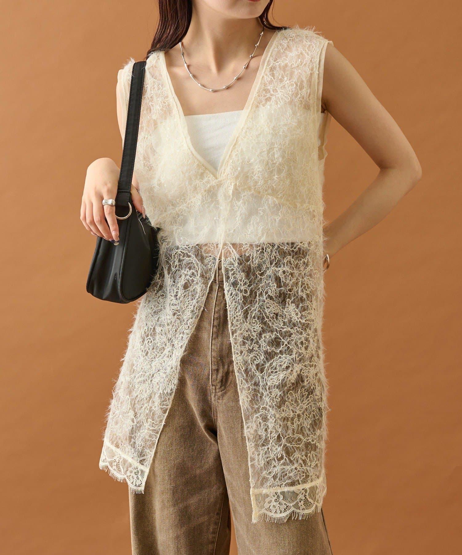 深 V 領設計讓臉部看起來更乾淨,非常適合疊穿。蕾絲下襬為其增添了微妙的女性氣息。