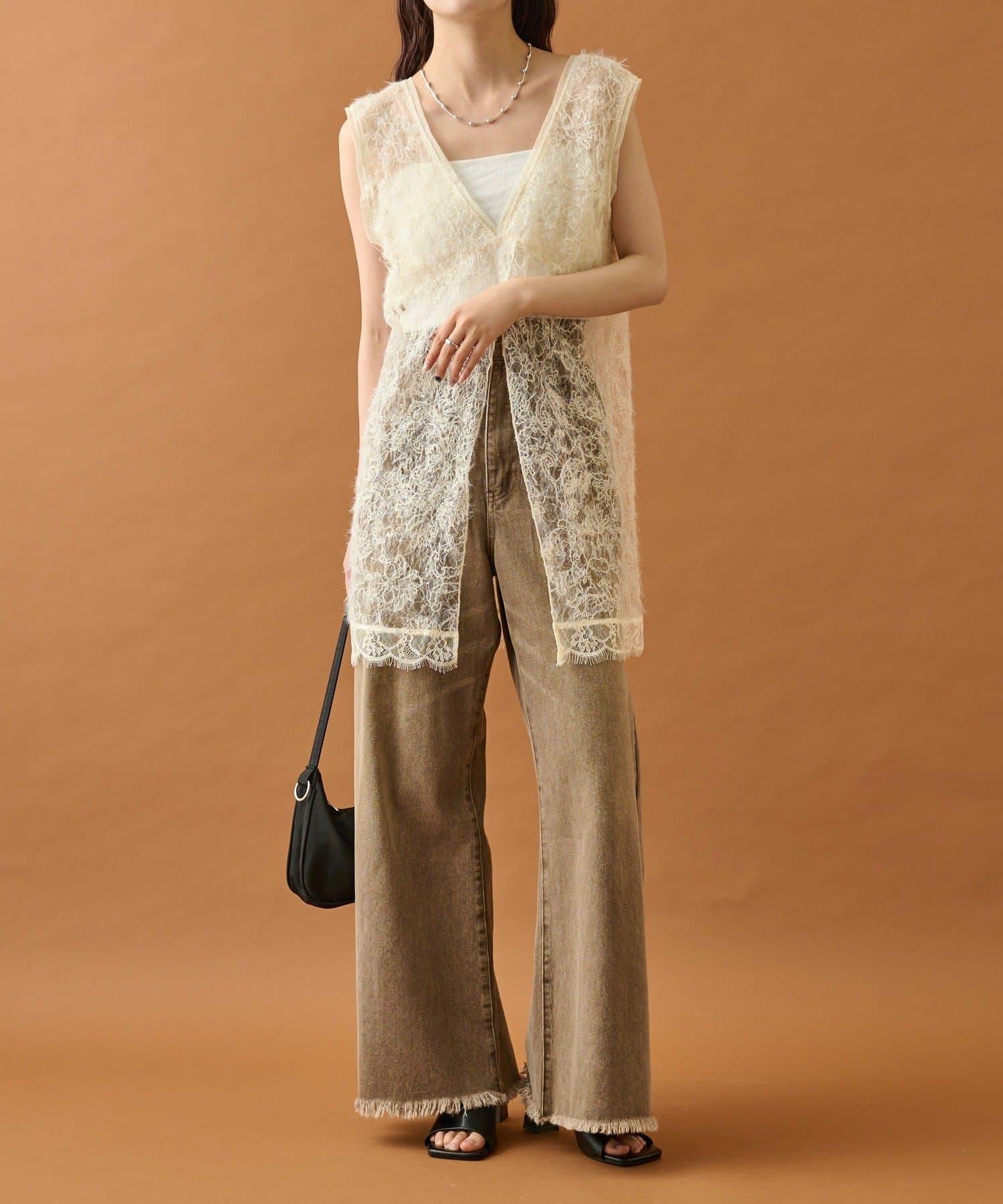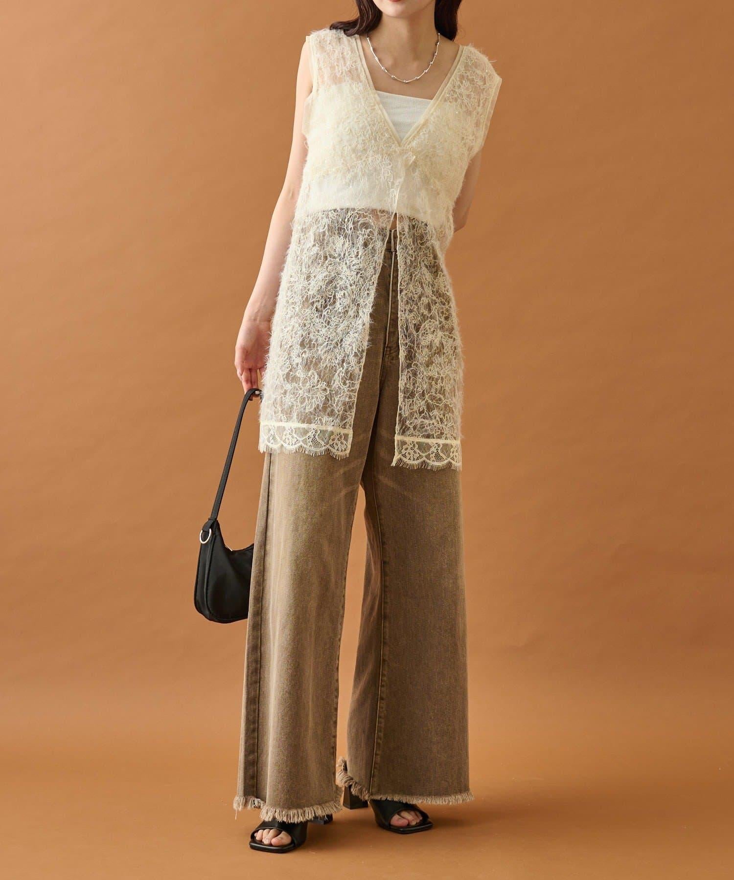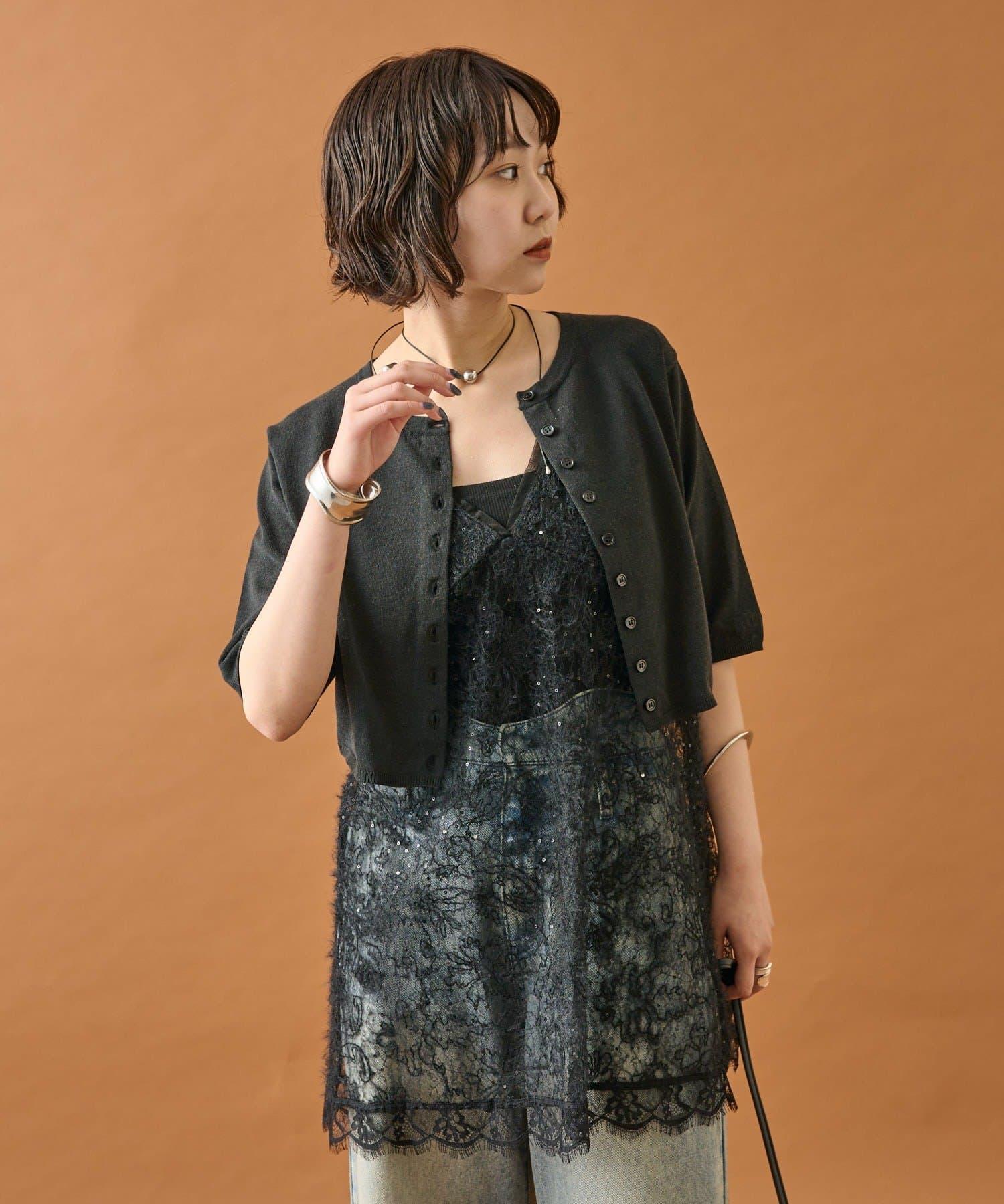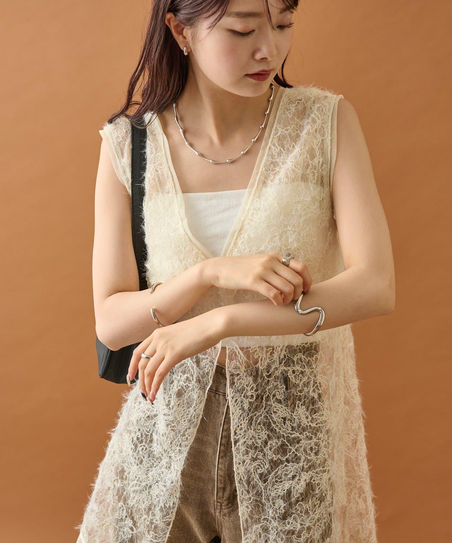 深 V 領設計讓臉部看起來更乾淨,非常適合疊穿。蕾絲下襬為其增添了微妙的女性氣息。