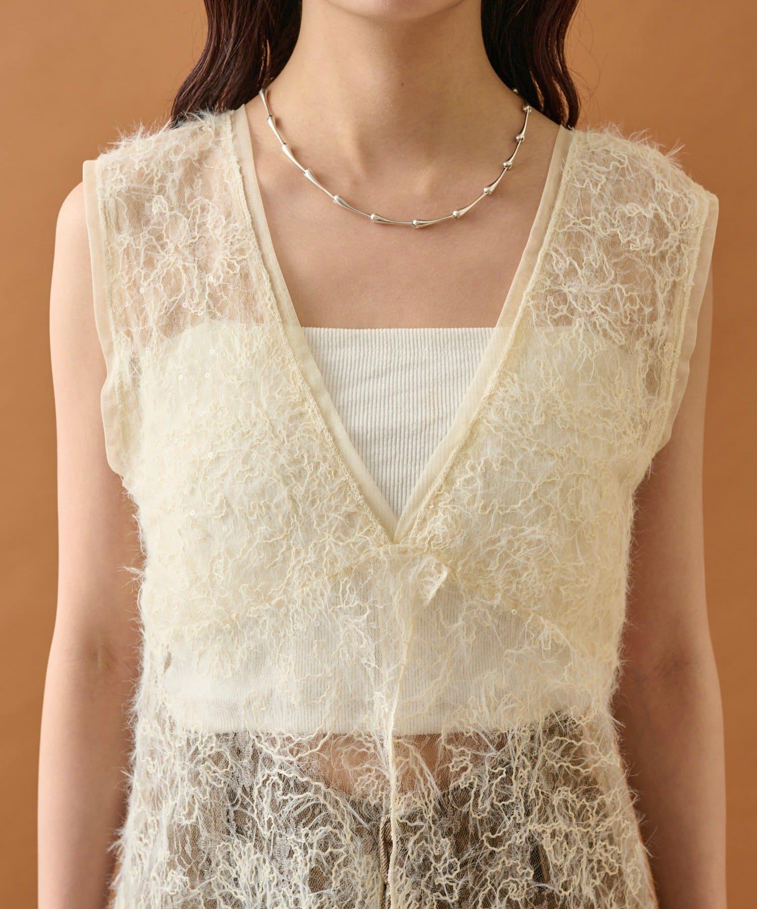 毛茸茸的蕾絲背心採用亮片設計,非常適合外出。