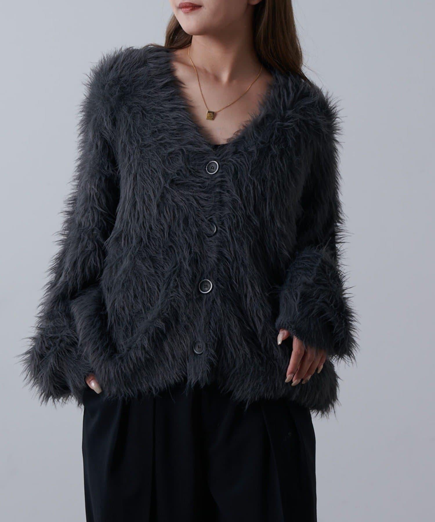 面料採用了蓬鬆的尼龍和聚酯纖維。其要點在於光滑舒適的手感和絨毛獨特的長毛質地。
