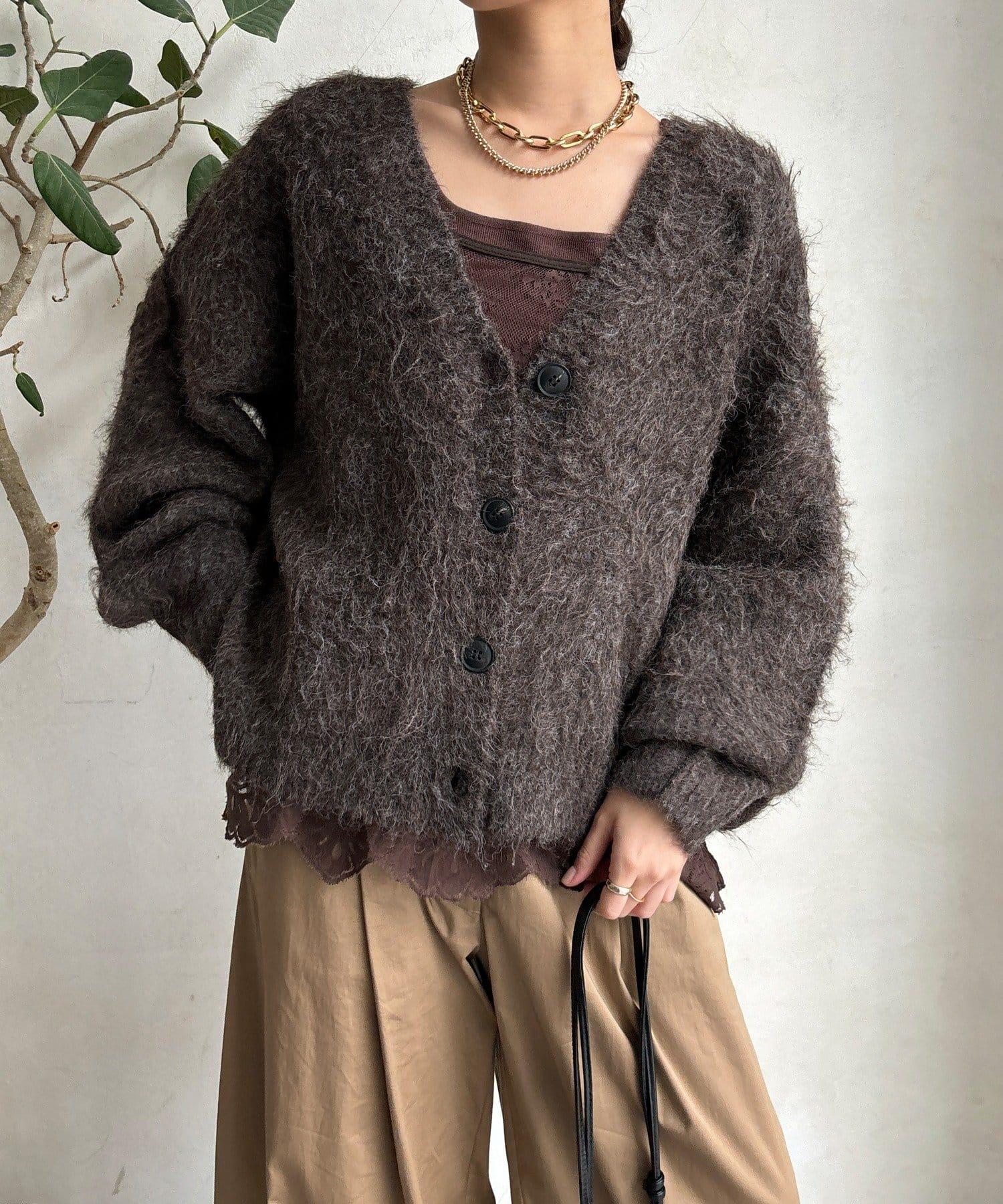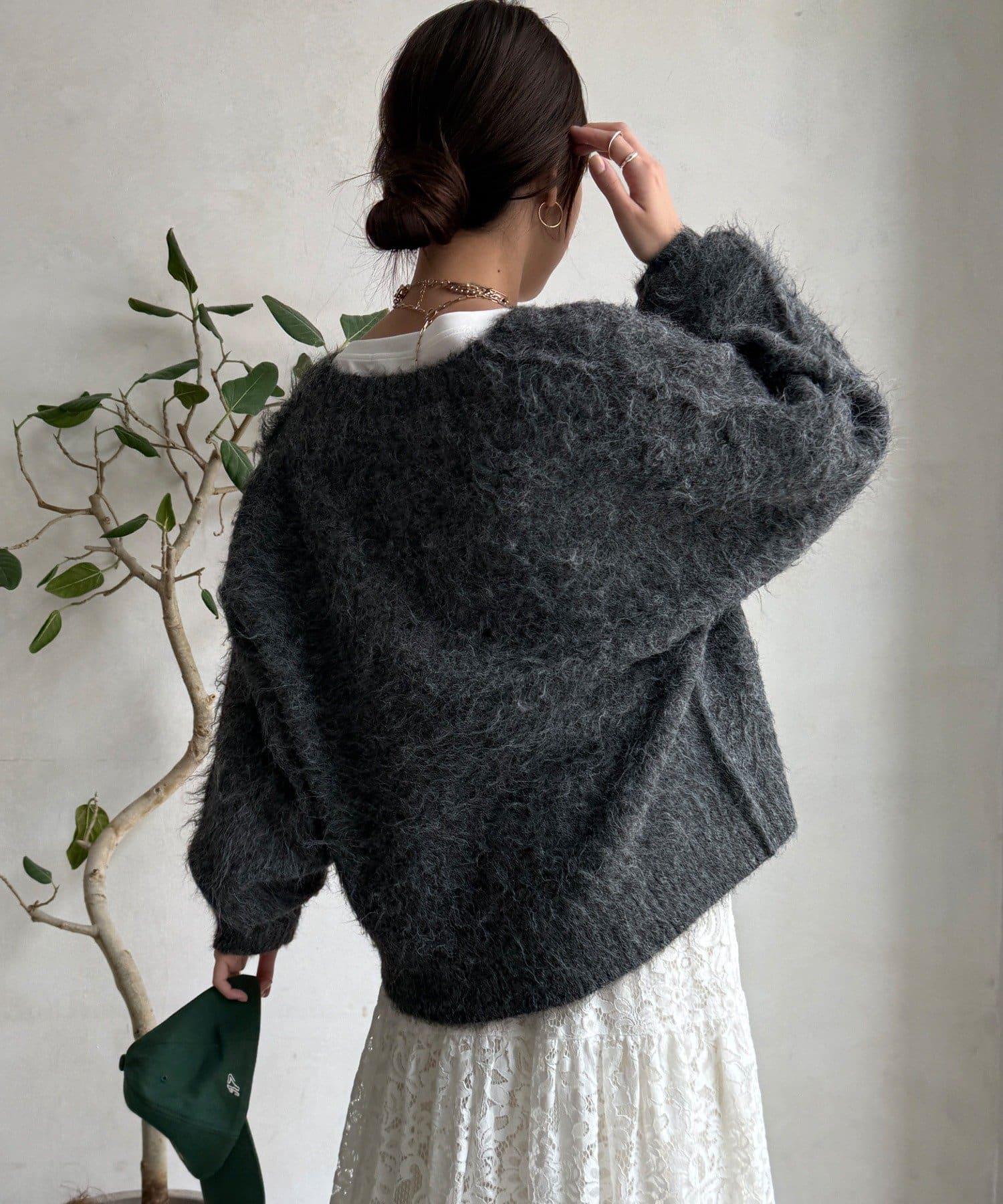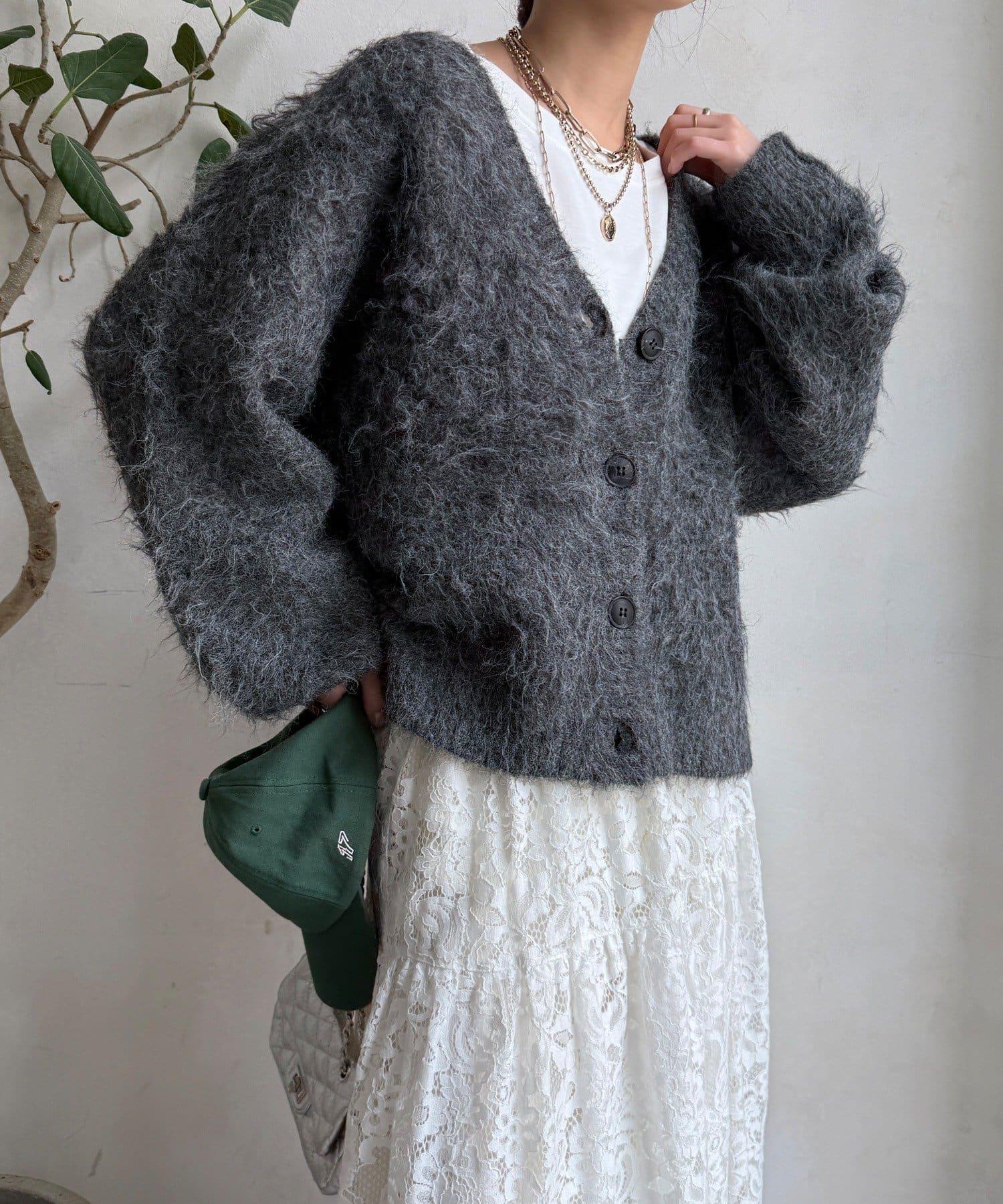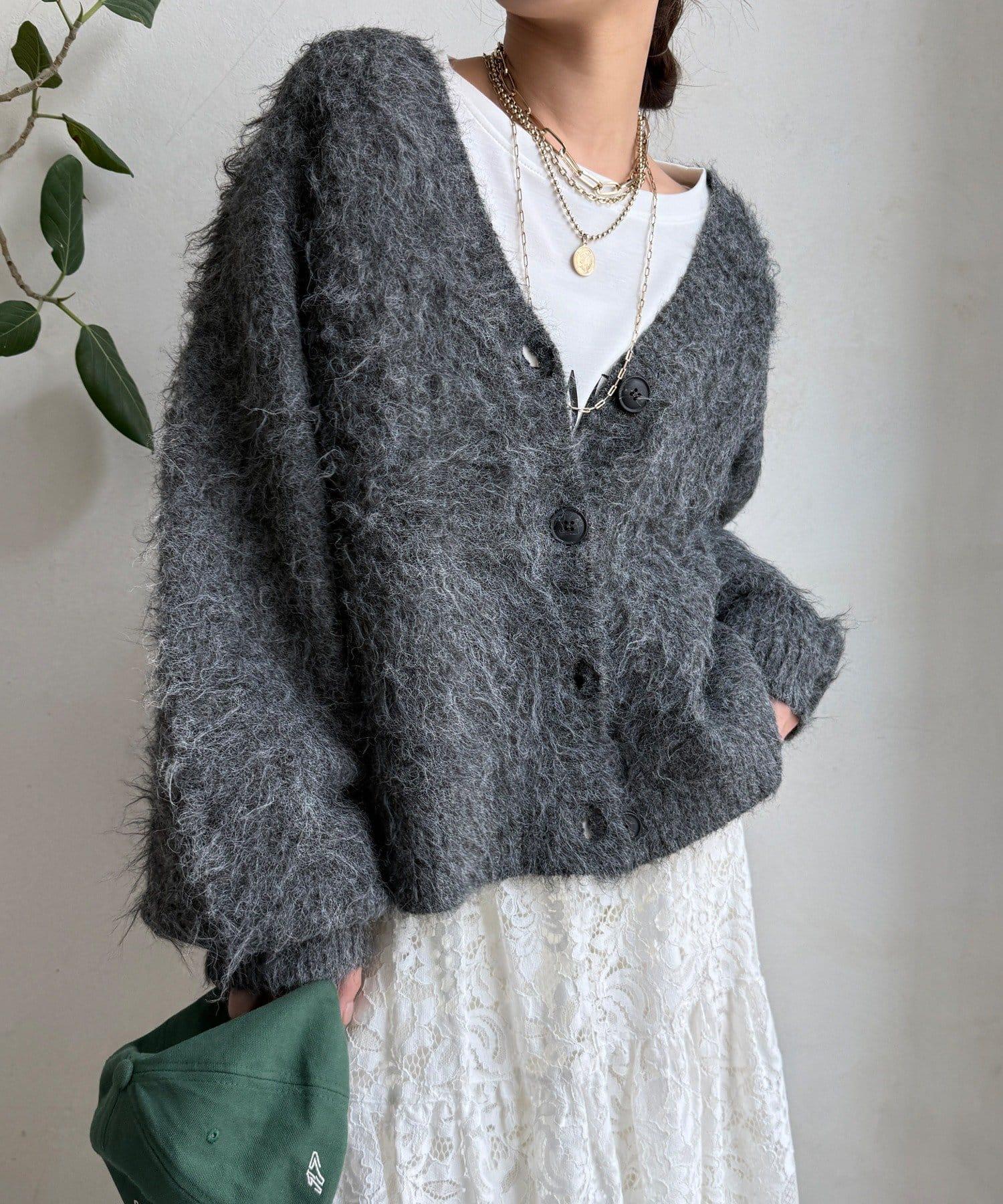柔軟輕柔。充滿秋冬氣息的絨毛 V 領開衫