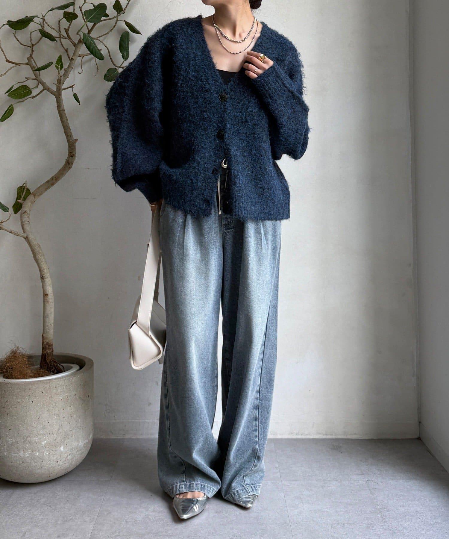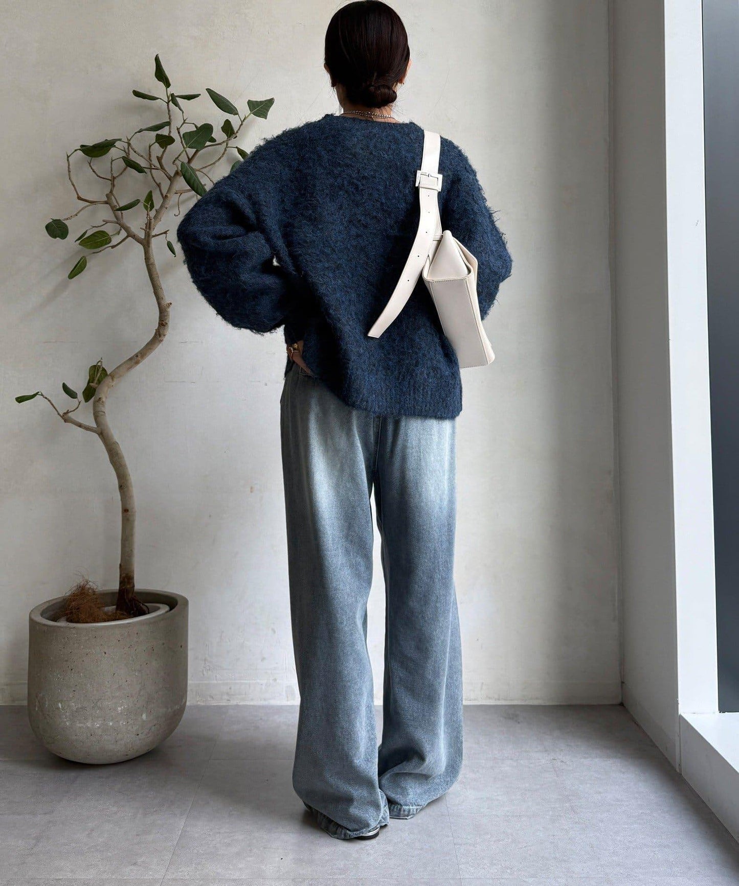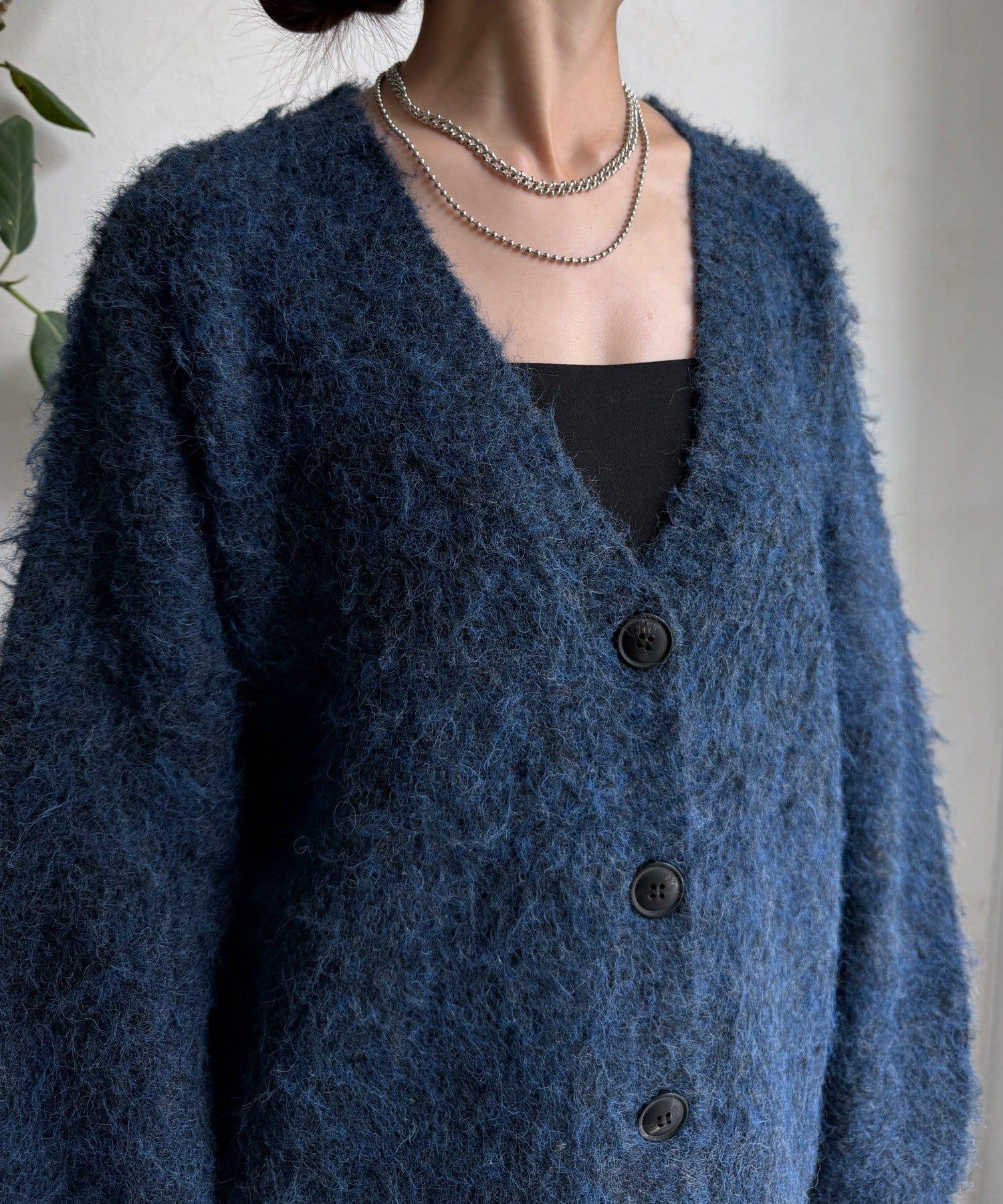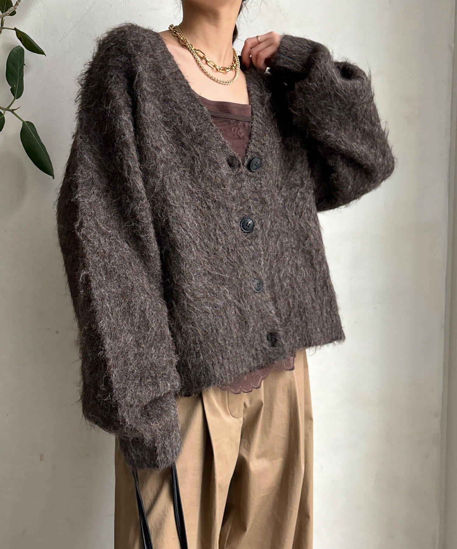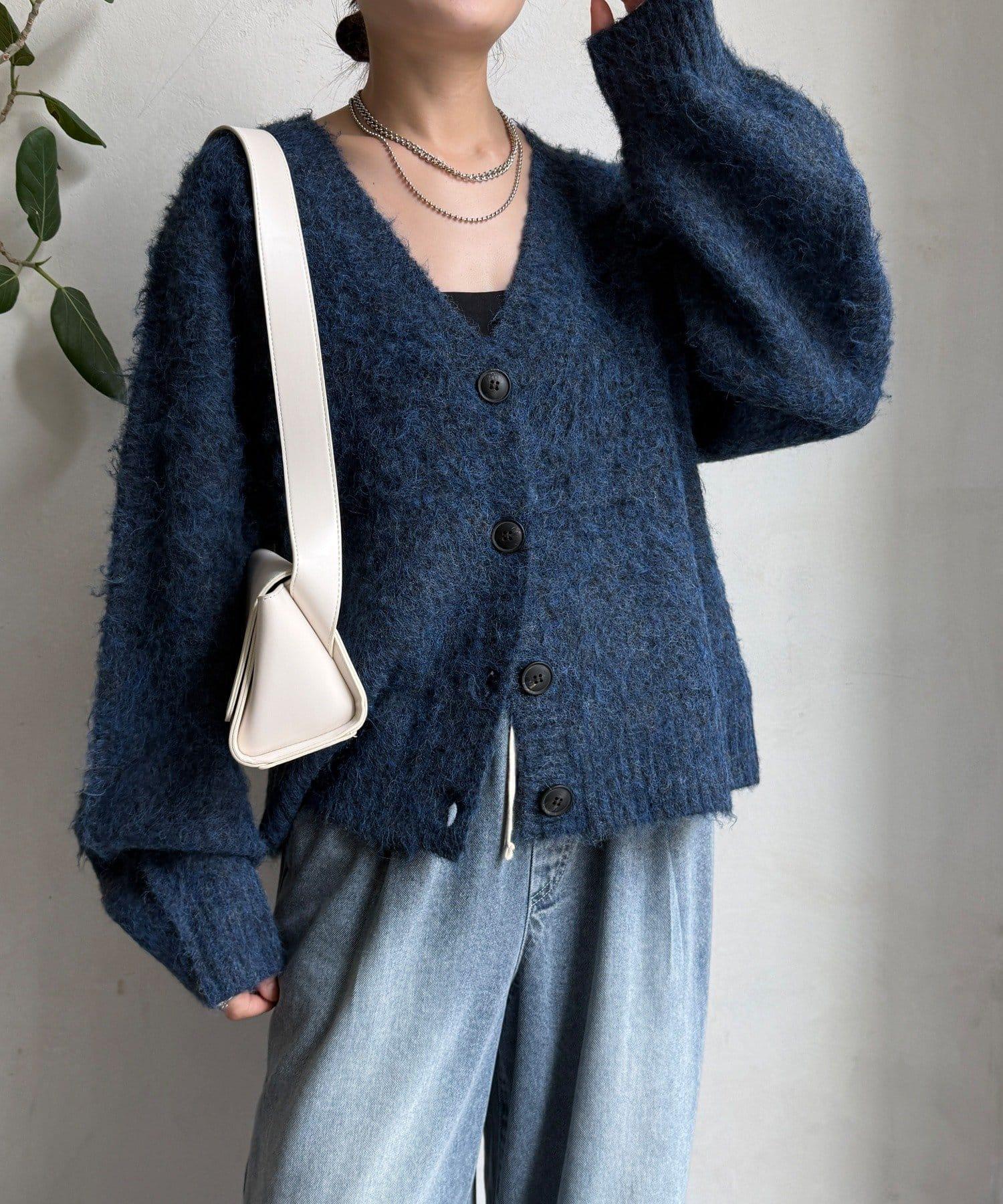 柔軟輕柔。充滿秋冬氣息的絨毛 V 領開衫