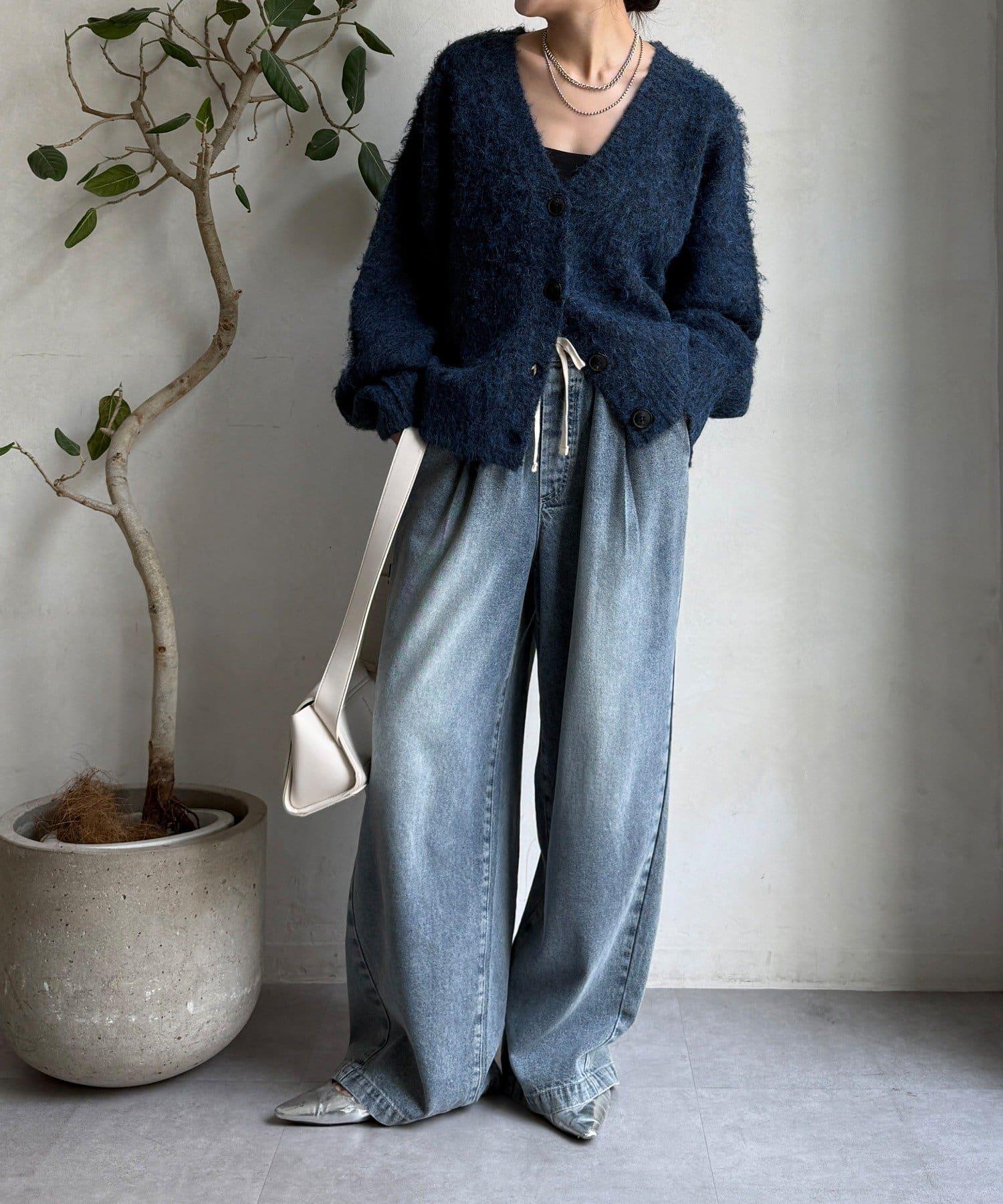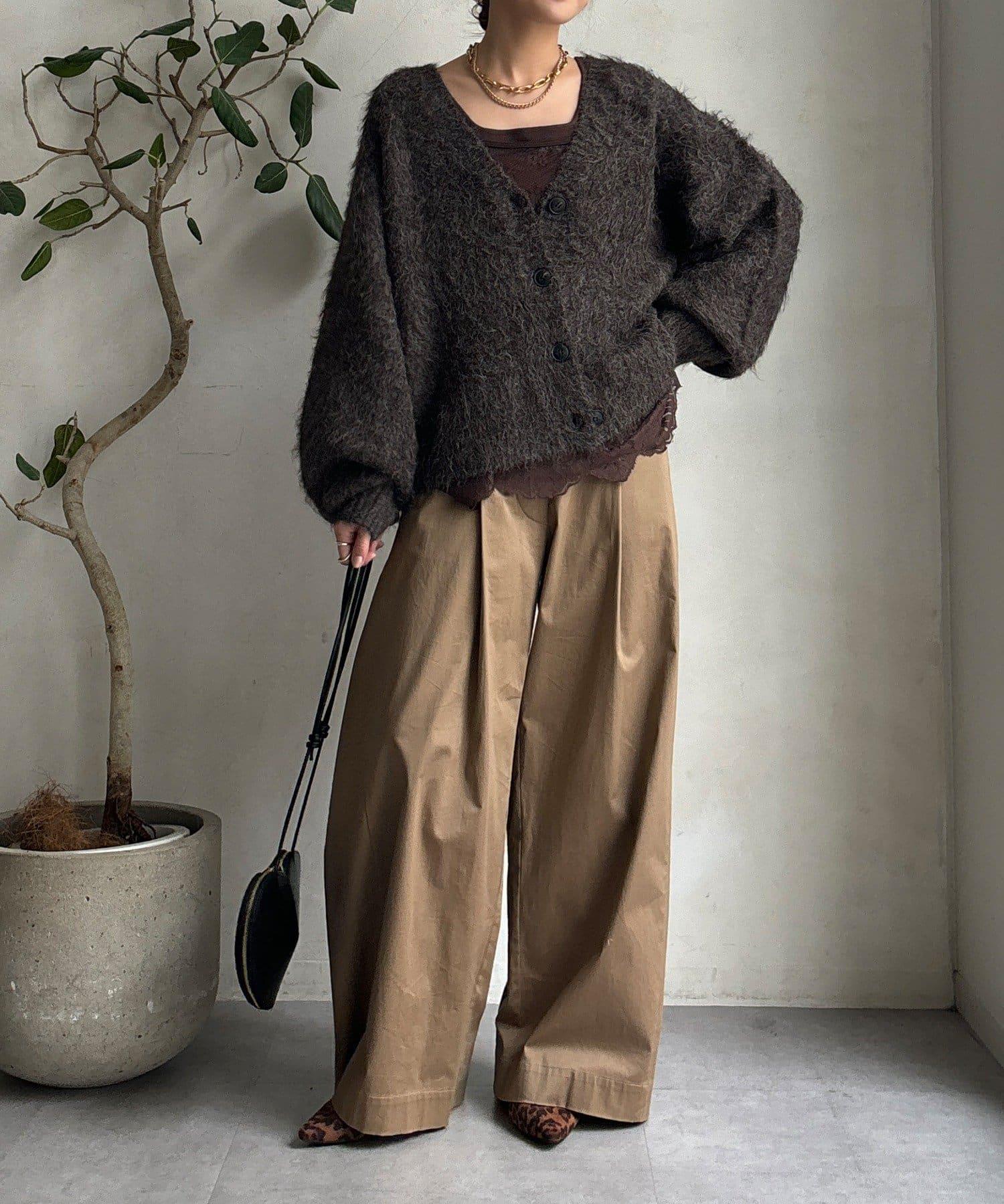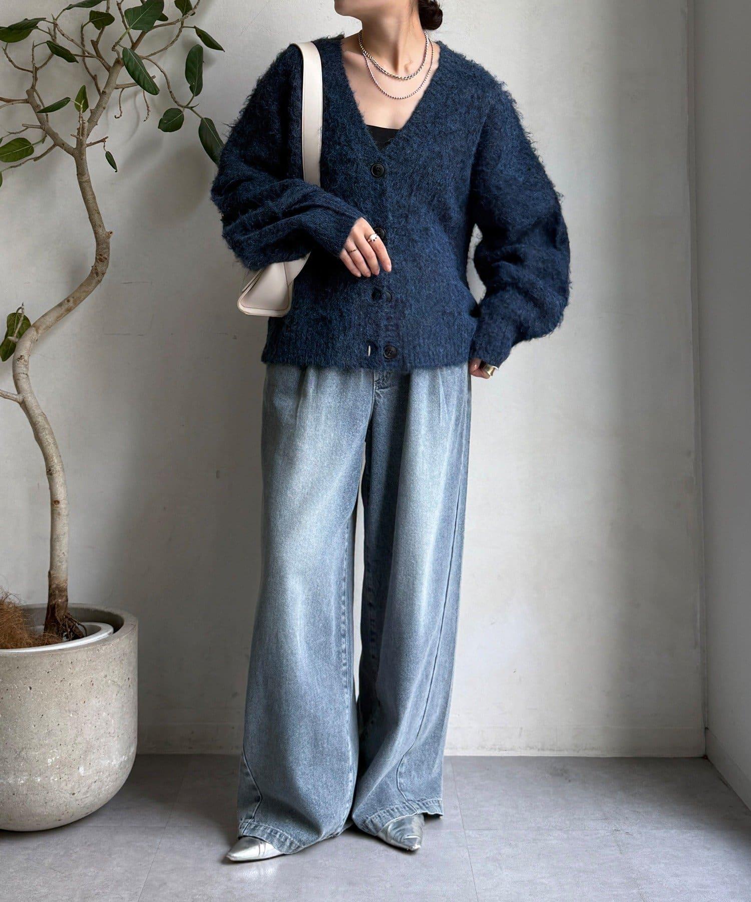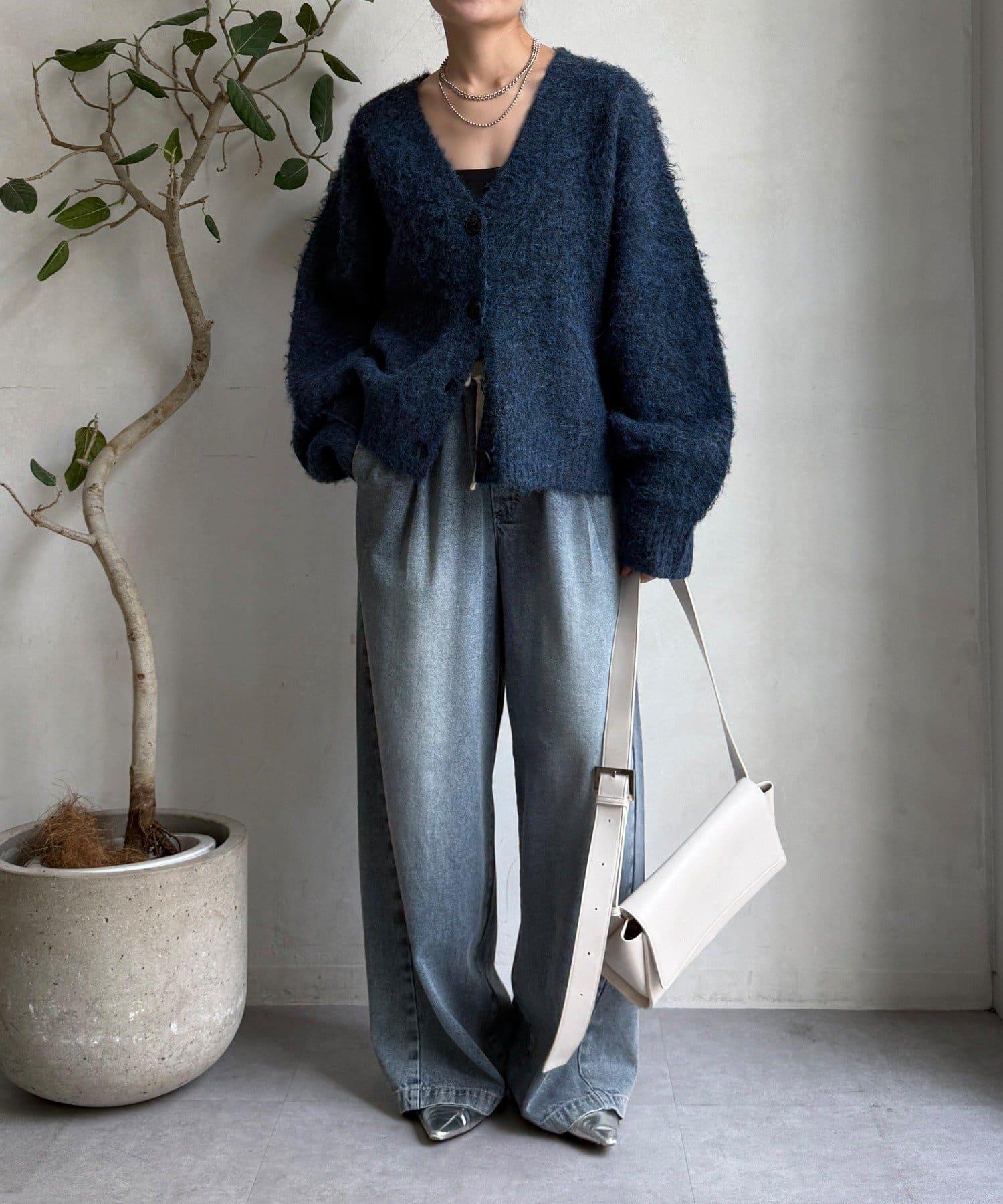 柔軟輕柔。充滿秋冬氣息的絨毛 V 領開衫