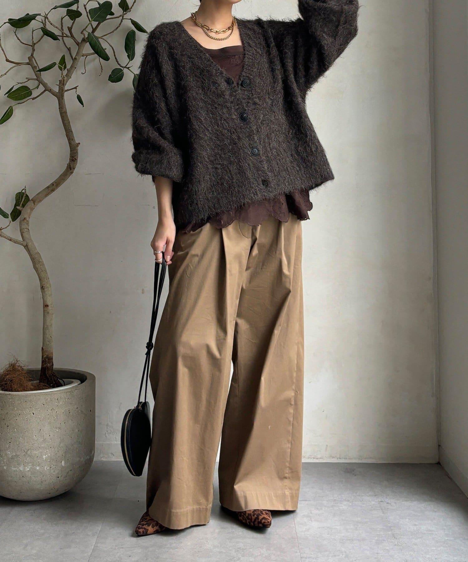 時尚的 V 領開衫,採用柔軟的絨毛面料,烘托秋冬氛圍。