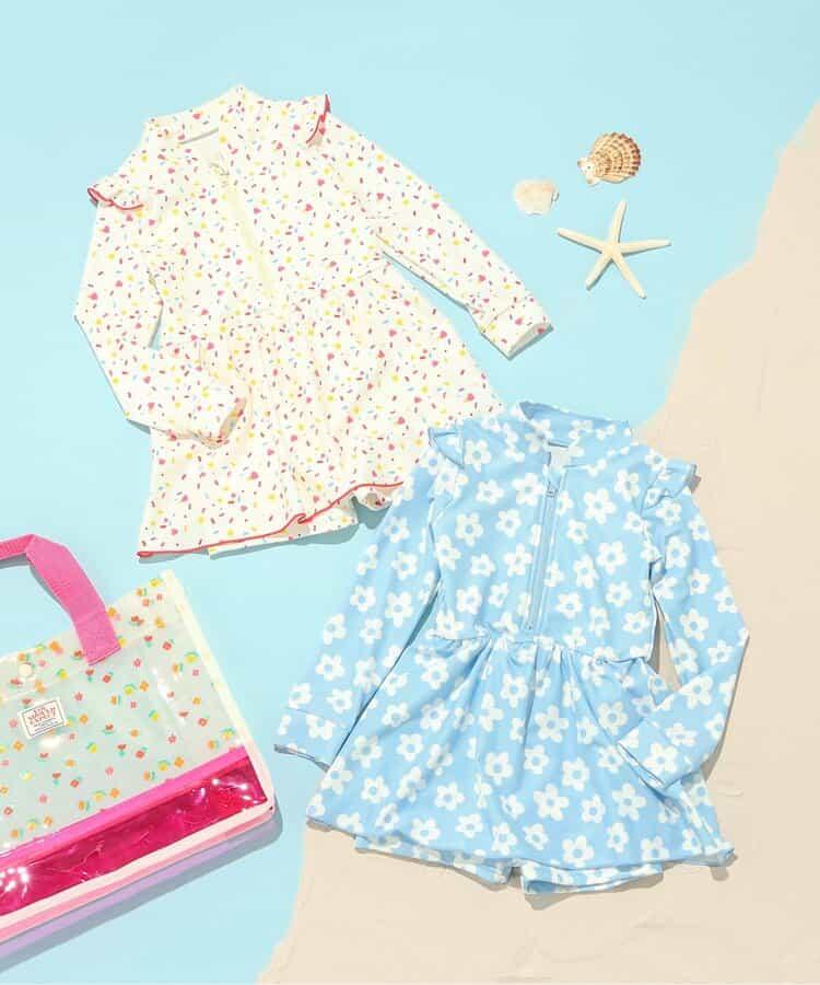 BREEZE 泳裝和沙灘單品 "長袖連體泳裝 "因其鮮豔的色彩和流行的圖案而廣受歡迎!多彩的夏日記憶。