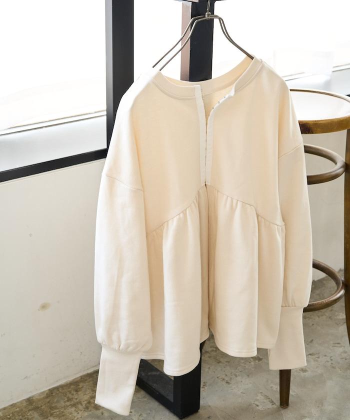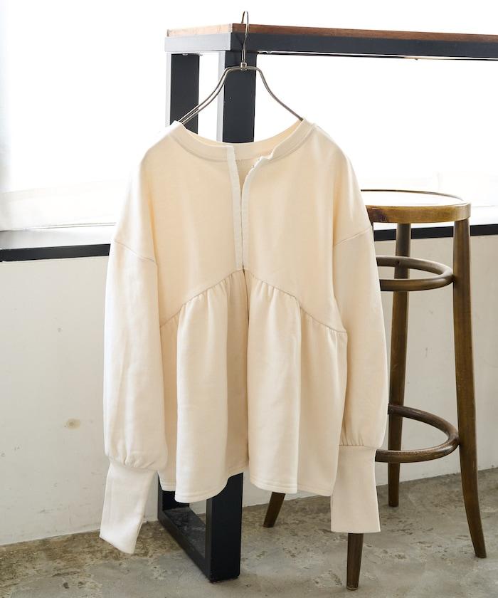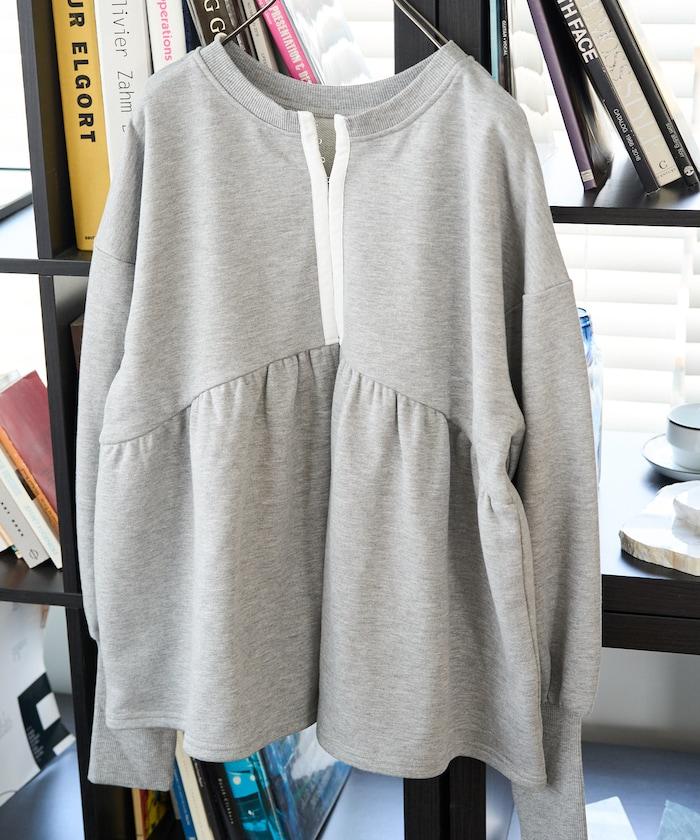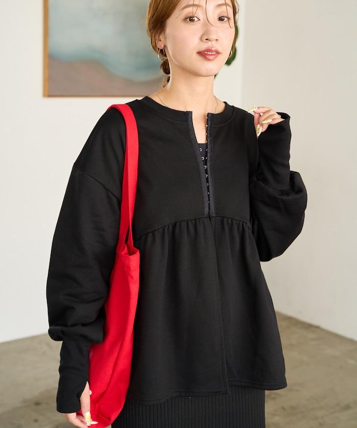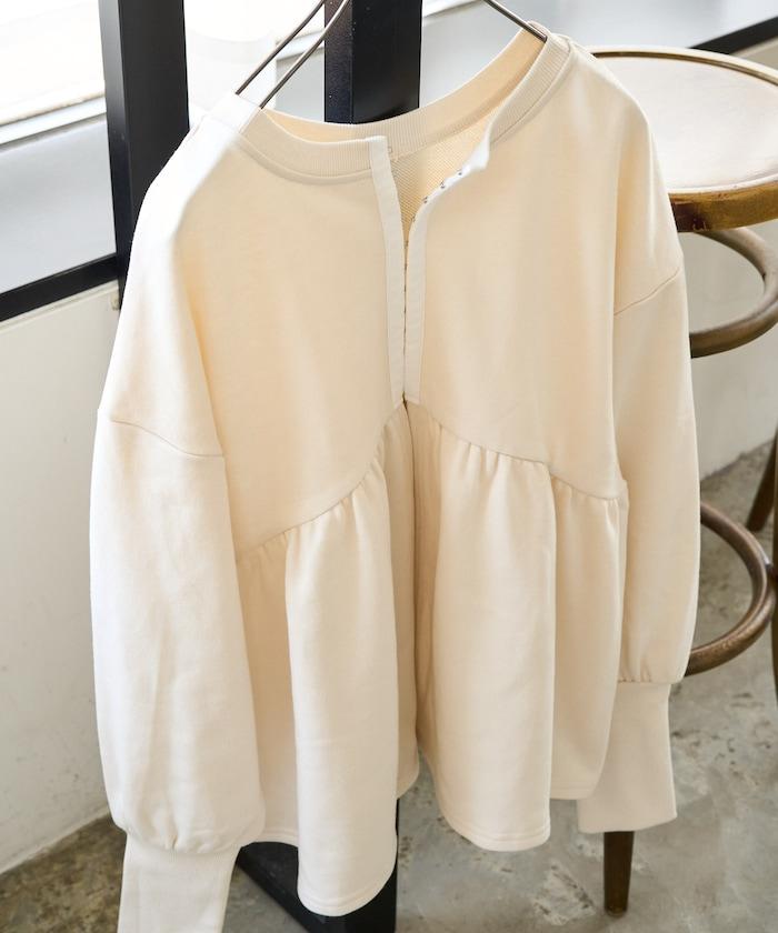 門襟開扣荷葉下襬兩穿衛衣套頭衫