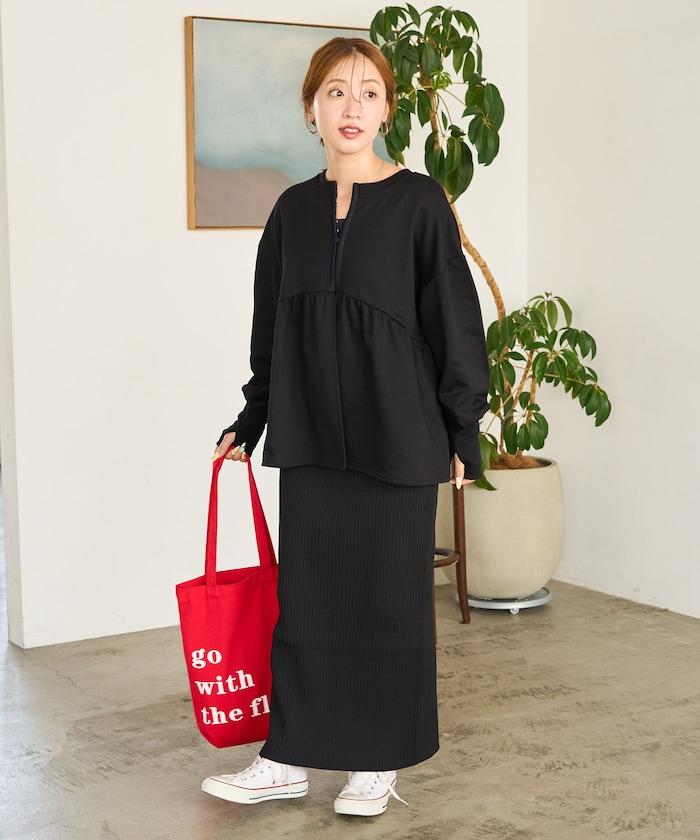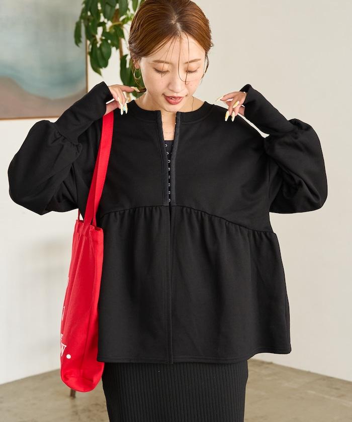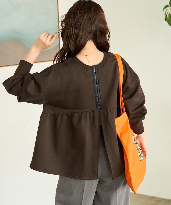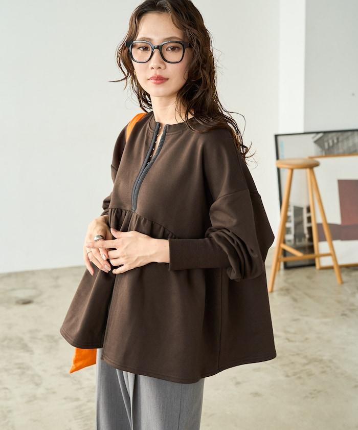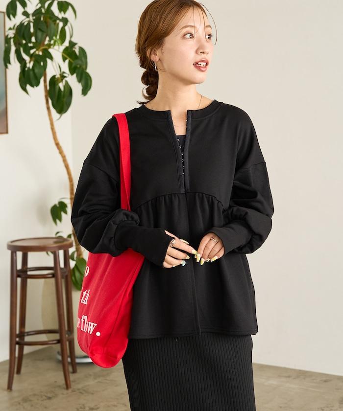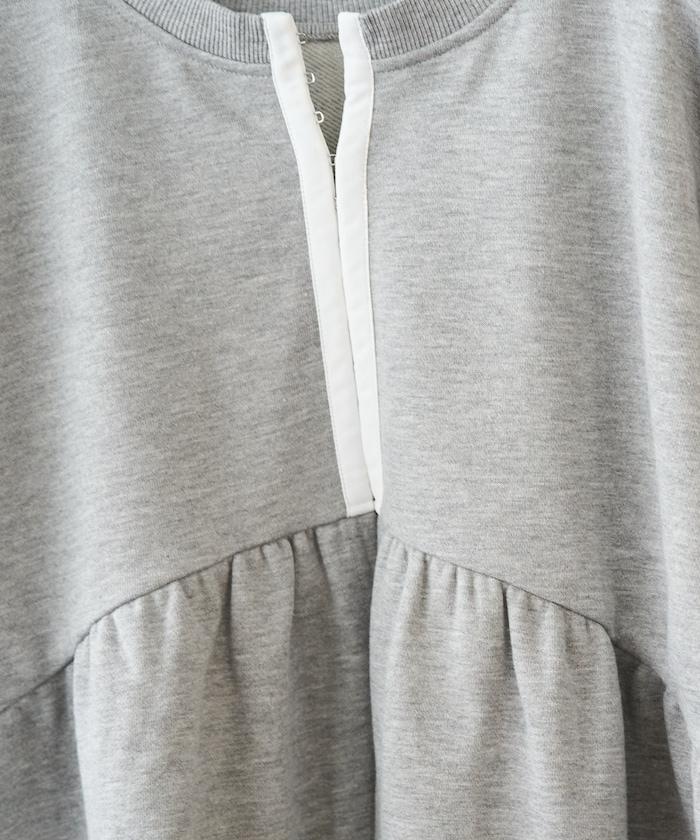 門襟開扣荷葉下襬兩穿衛衣套頭衫