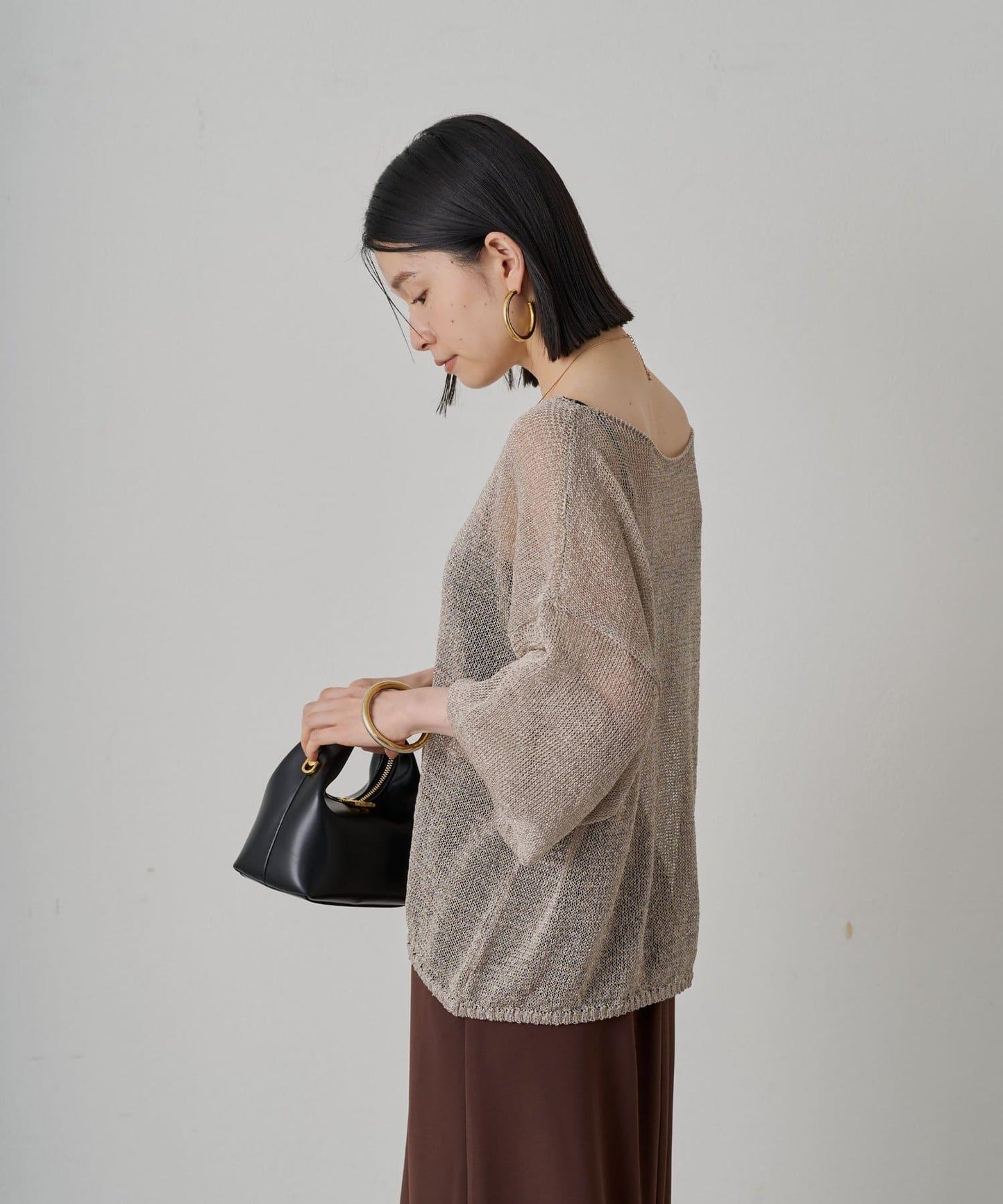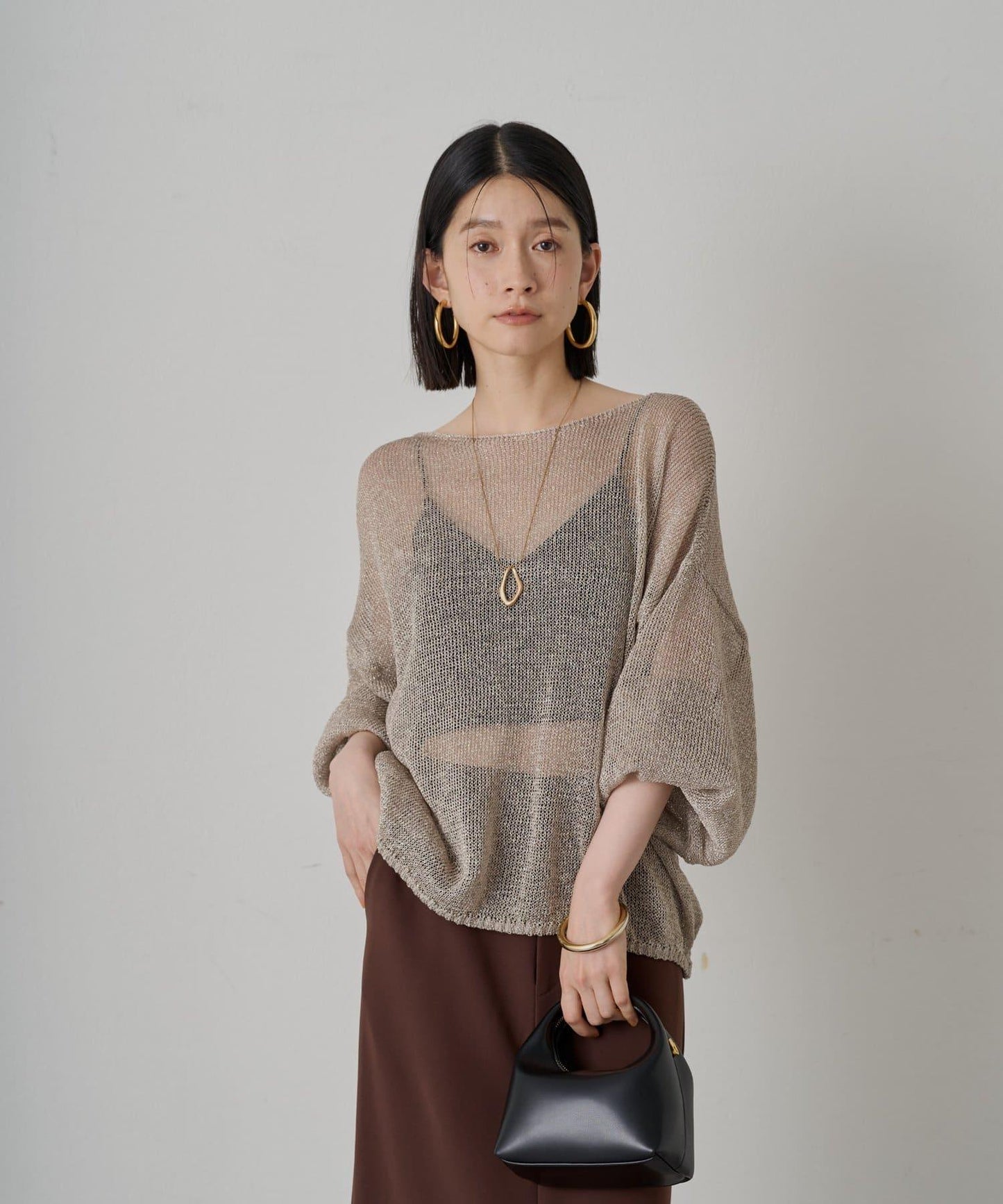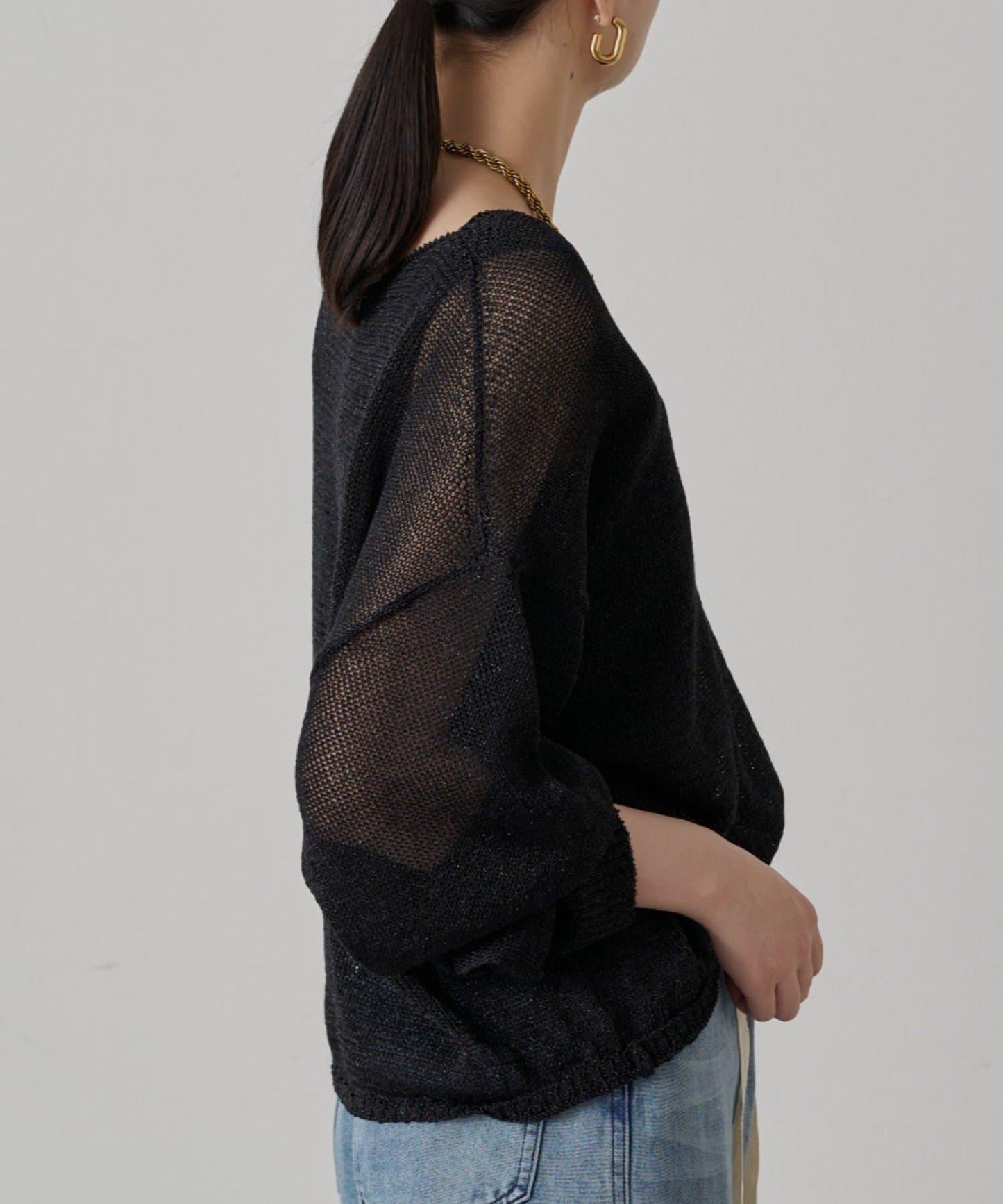 透視針織上衣,具有精緻的透明度和細絨毛設計。