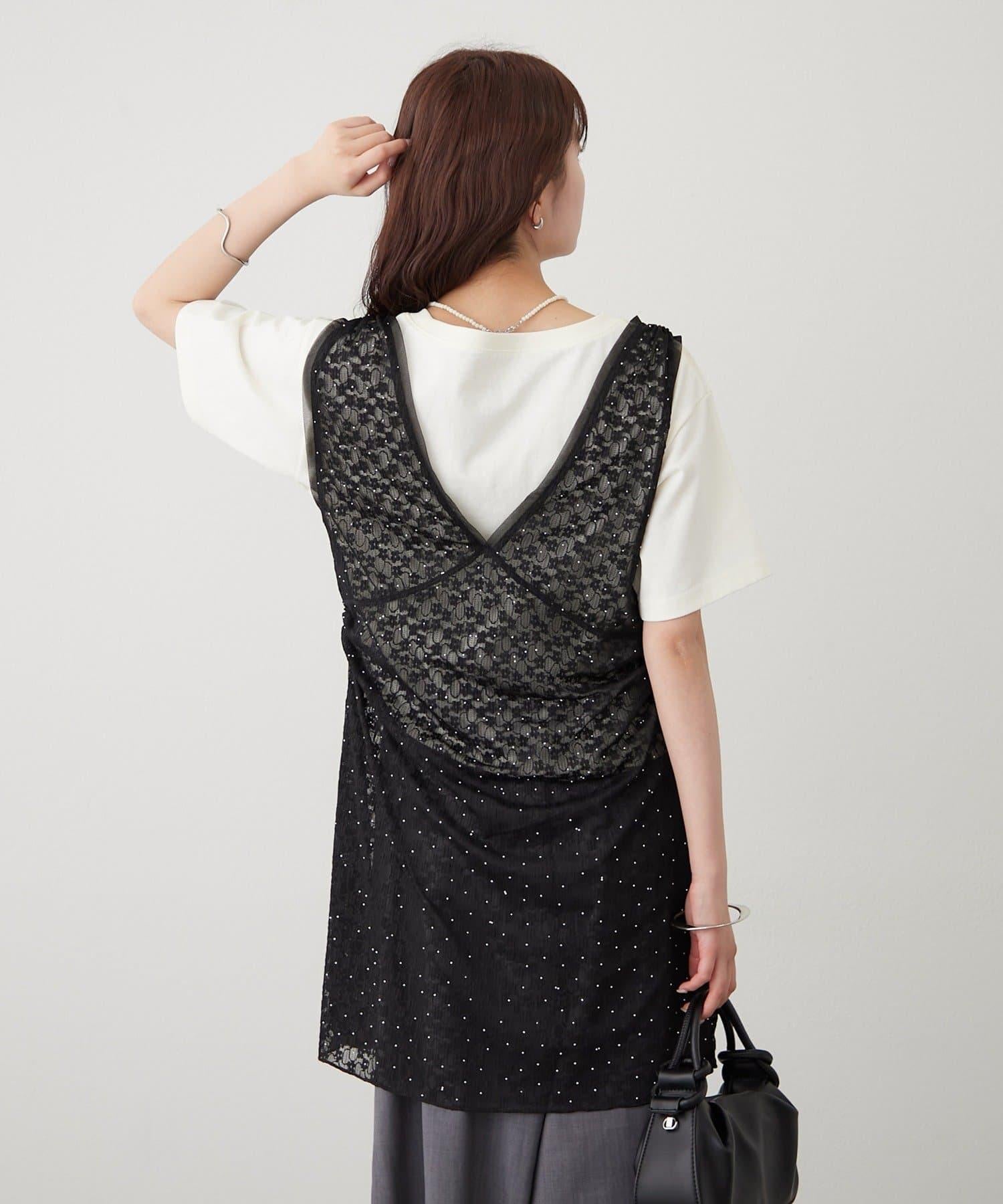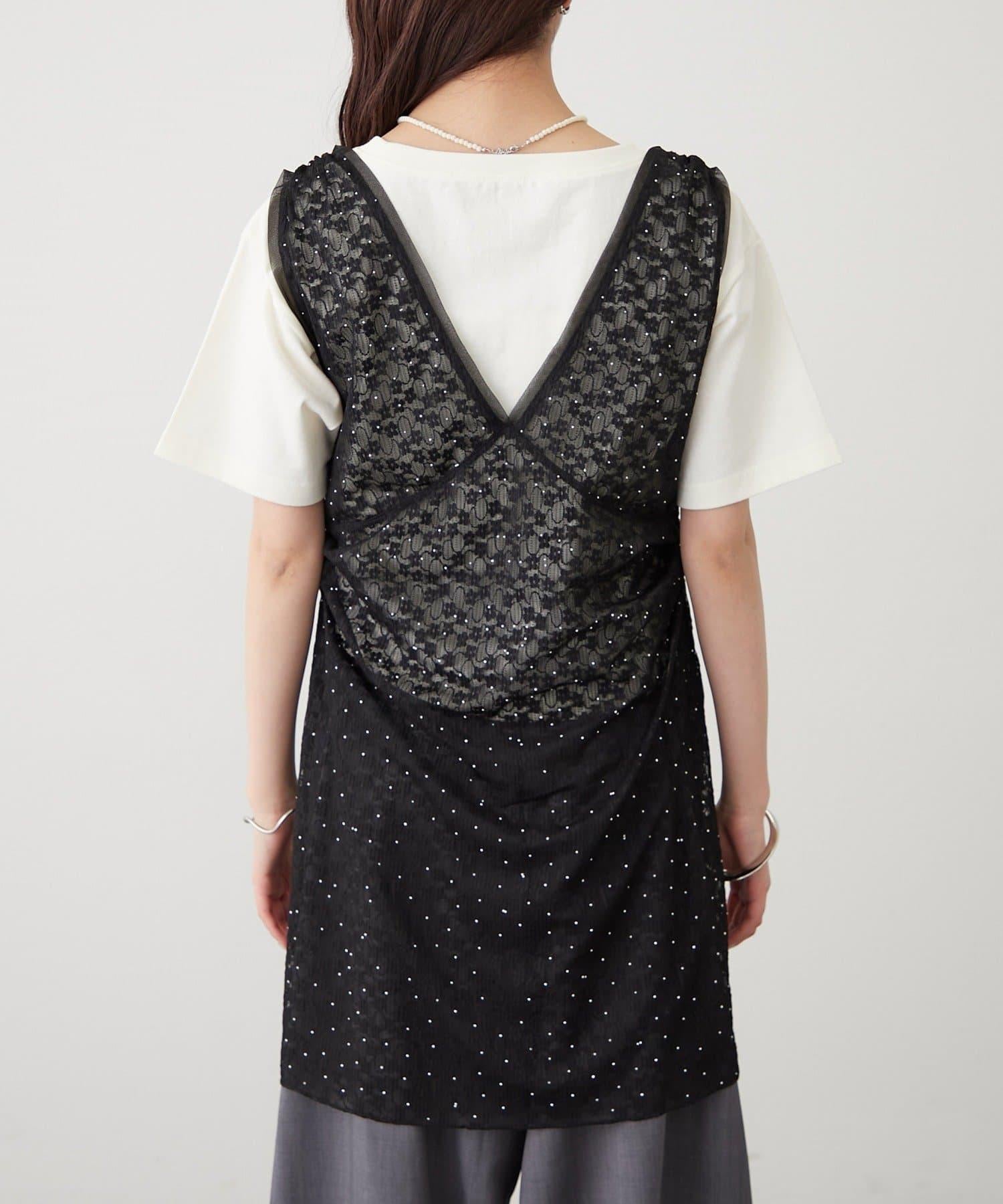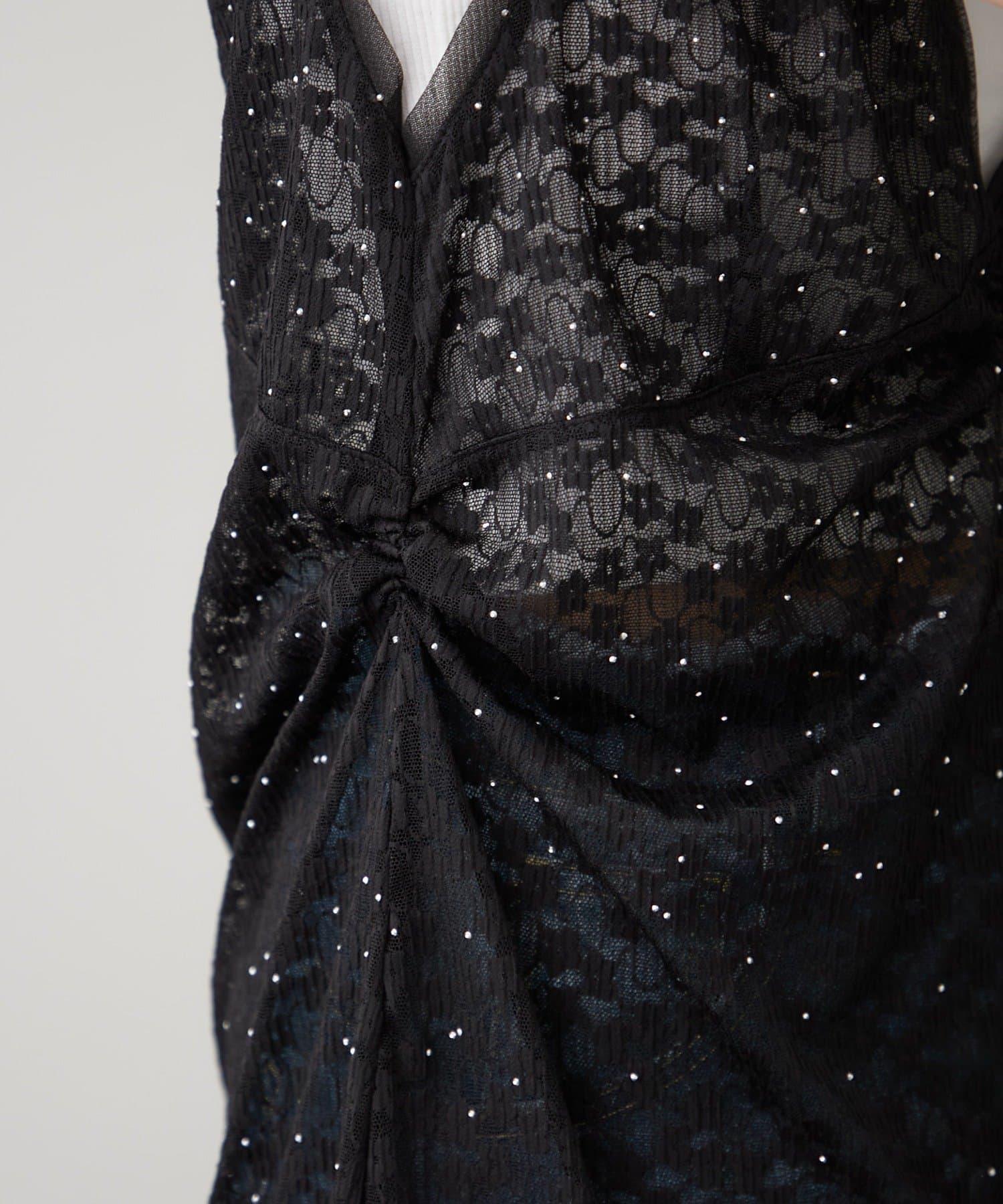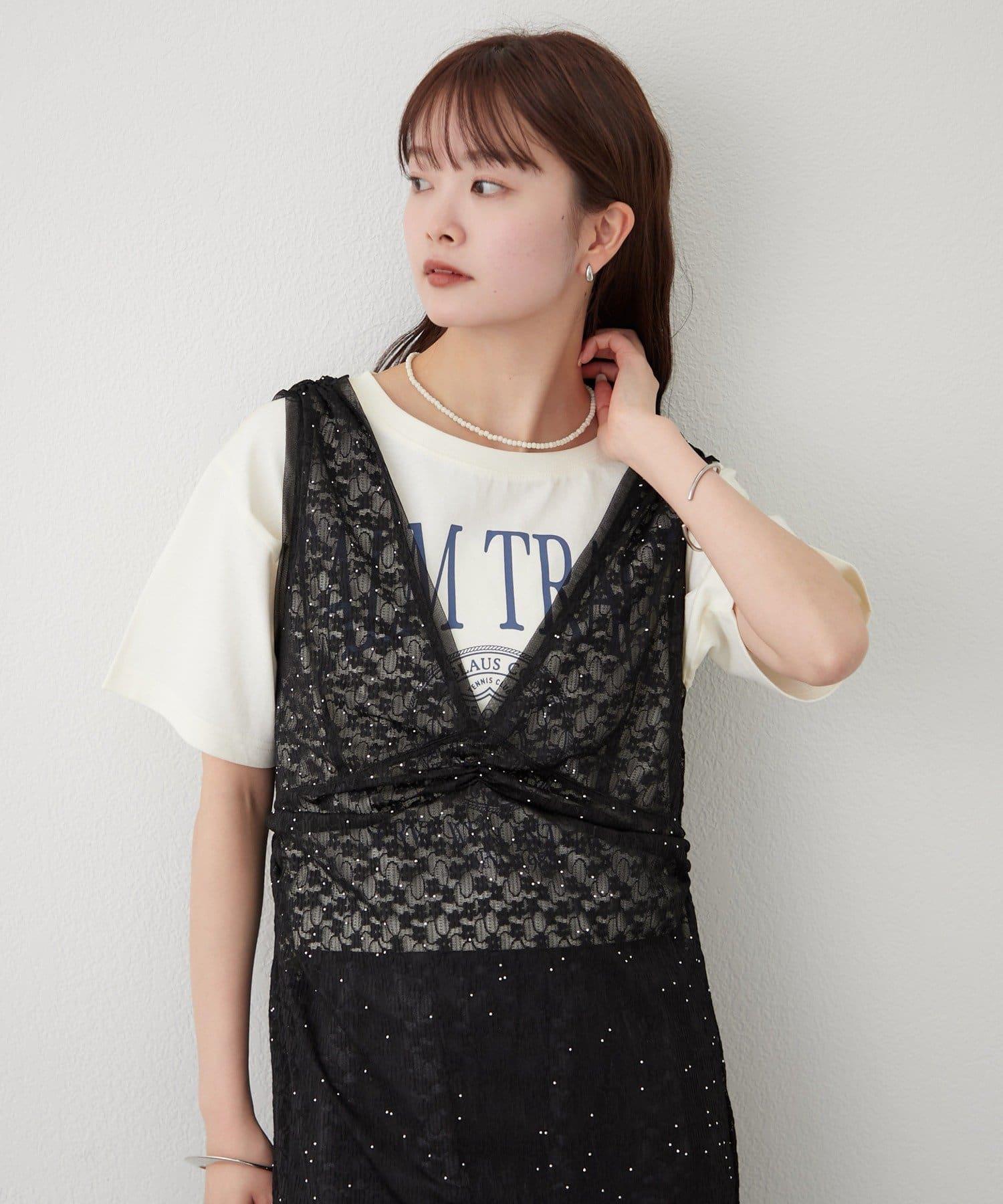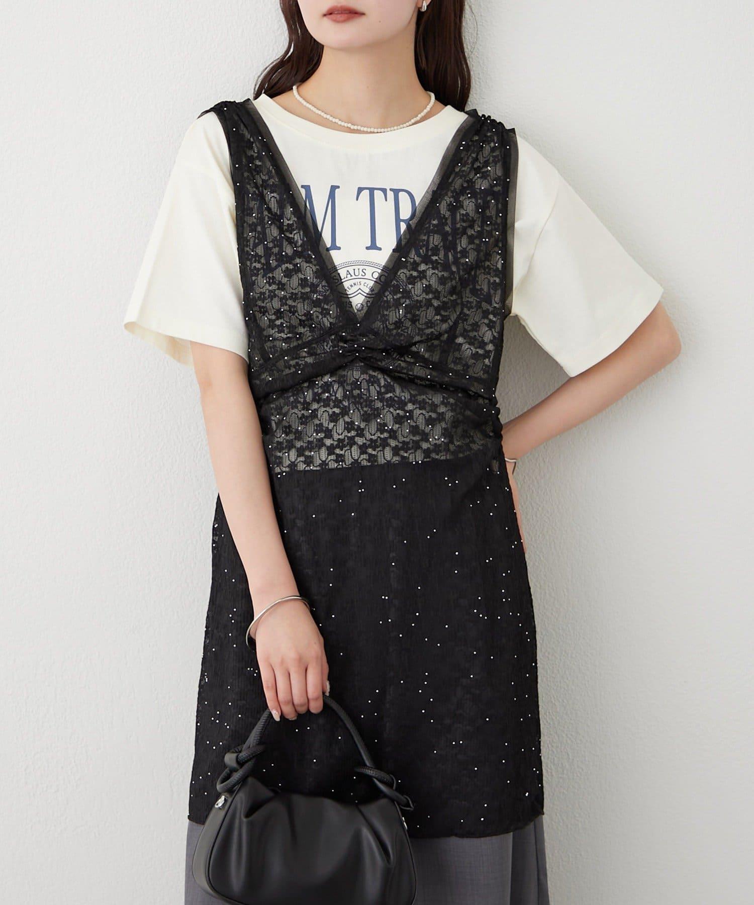 蕾絲連衣裙帶有微妙的光澤,蕾絲散落其間。
