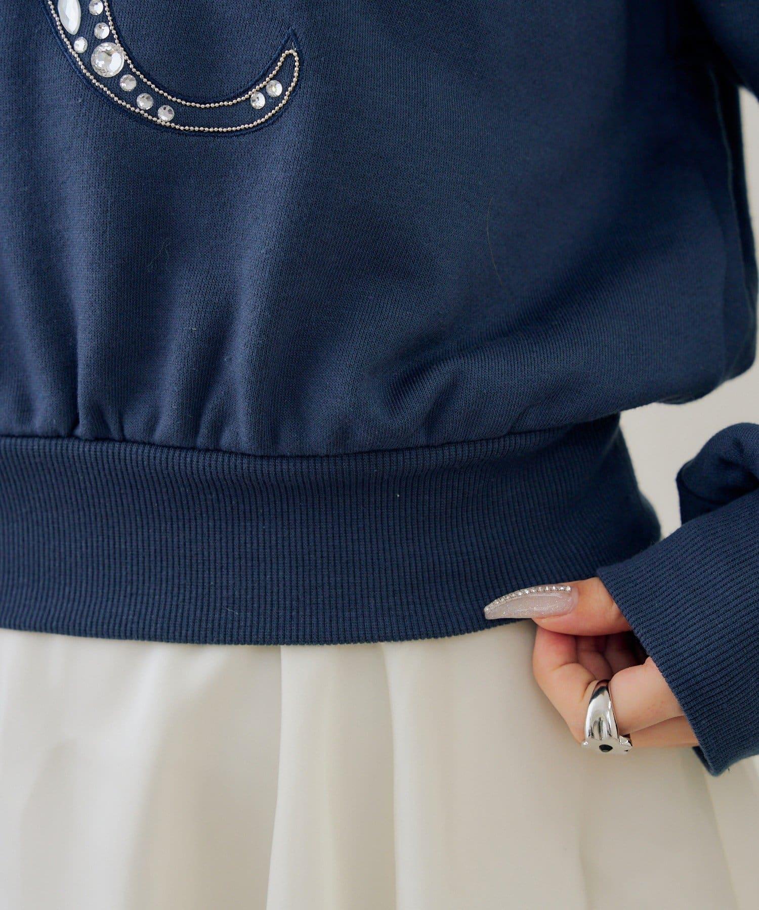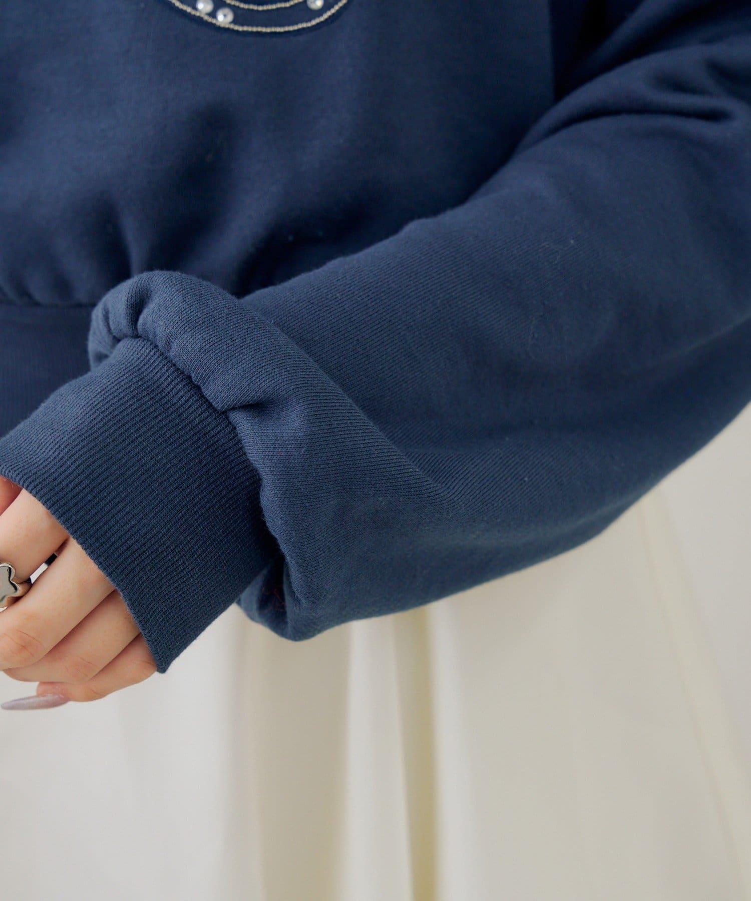可愛的衛衣套頭衫上繡有閃亮的標誌。