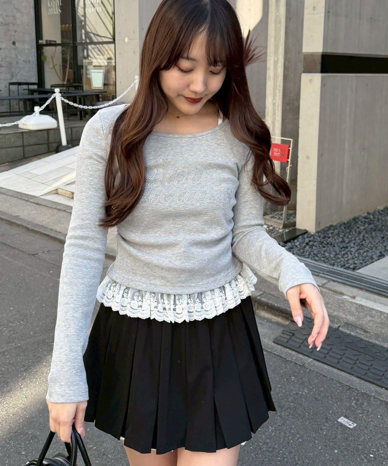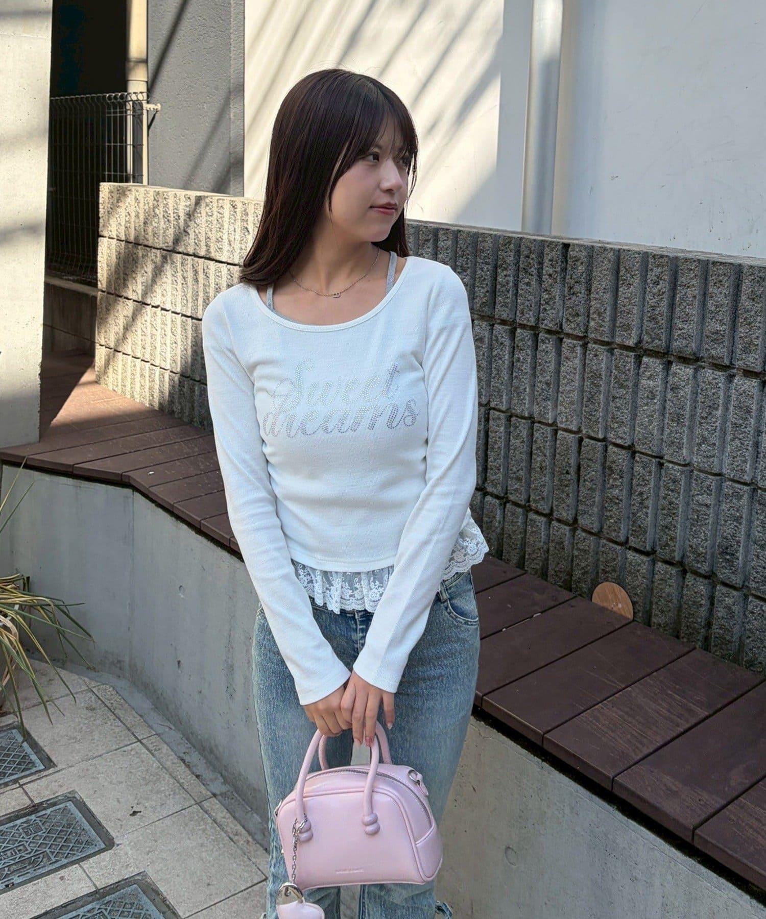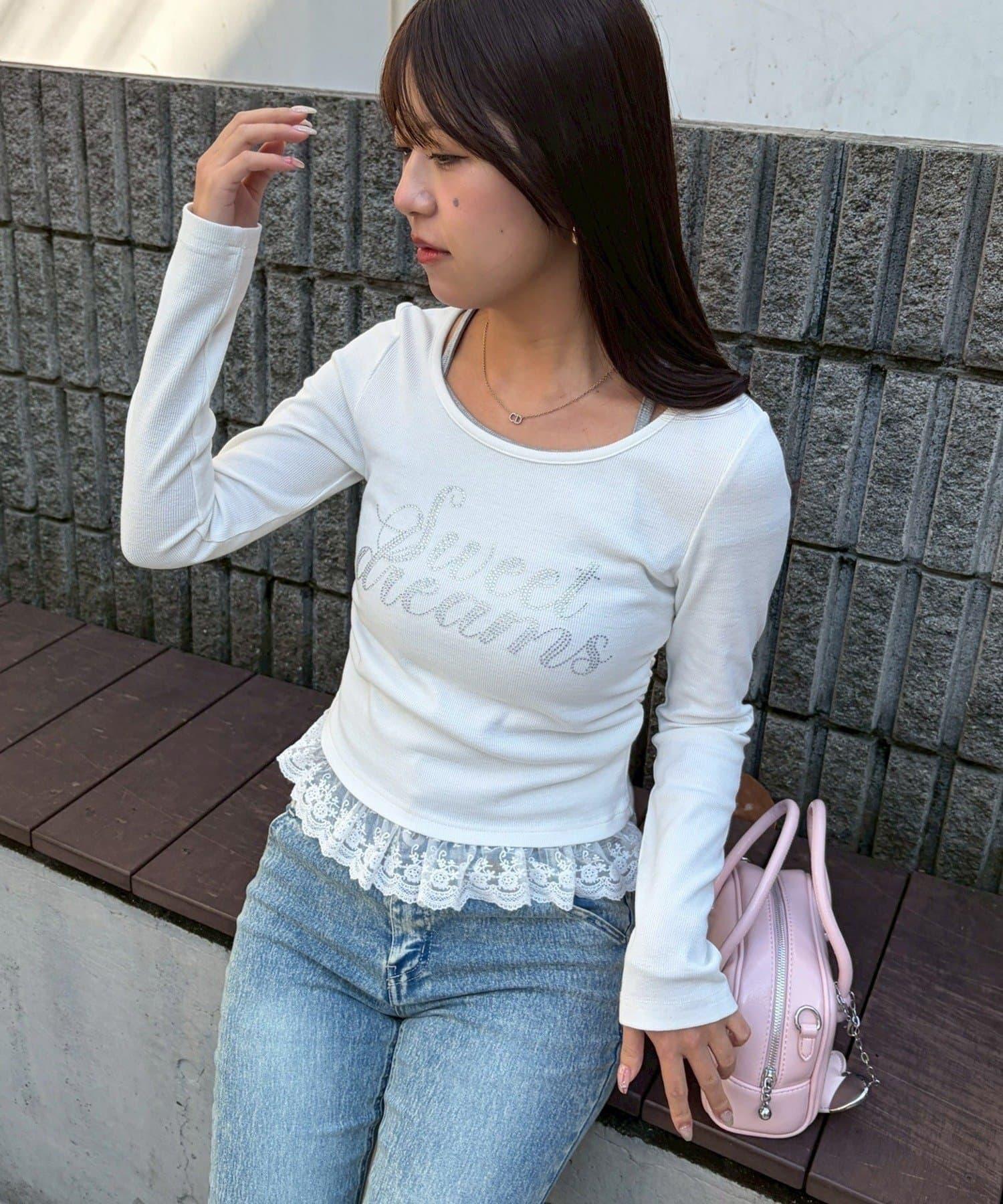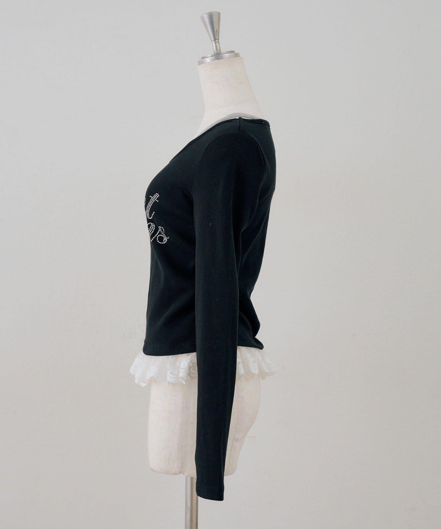 閃亮Logo 下襬蕾絲 羅紋 上衣