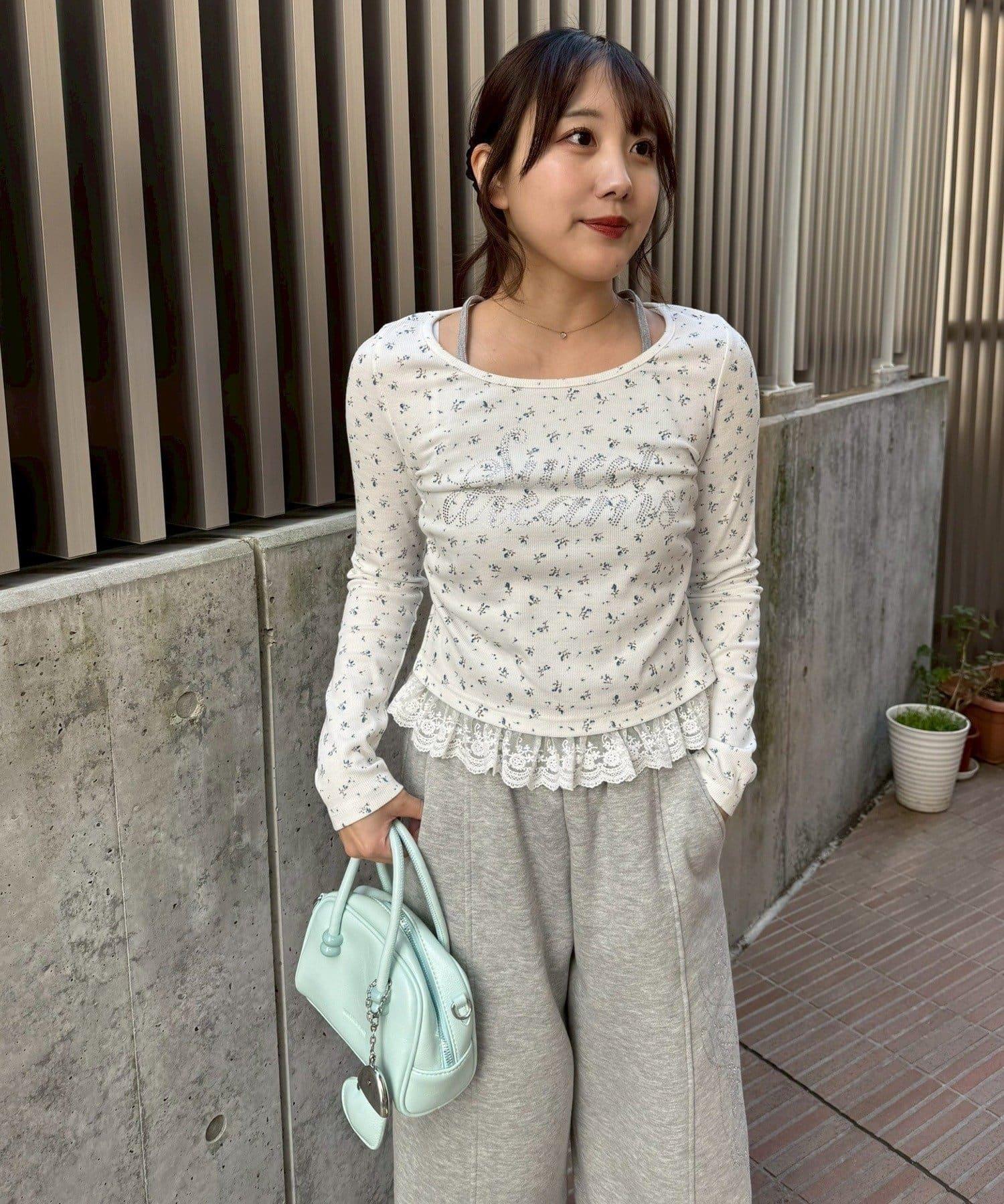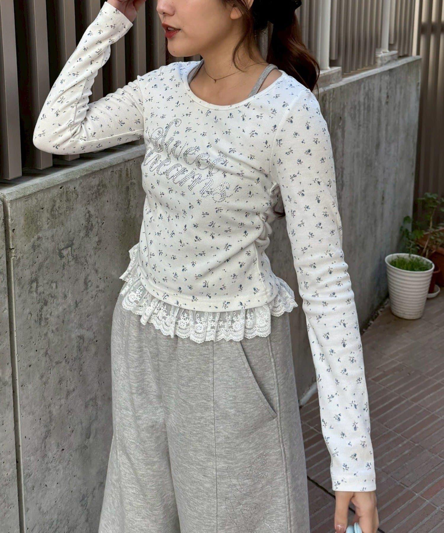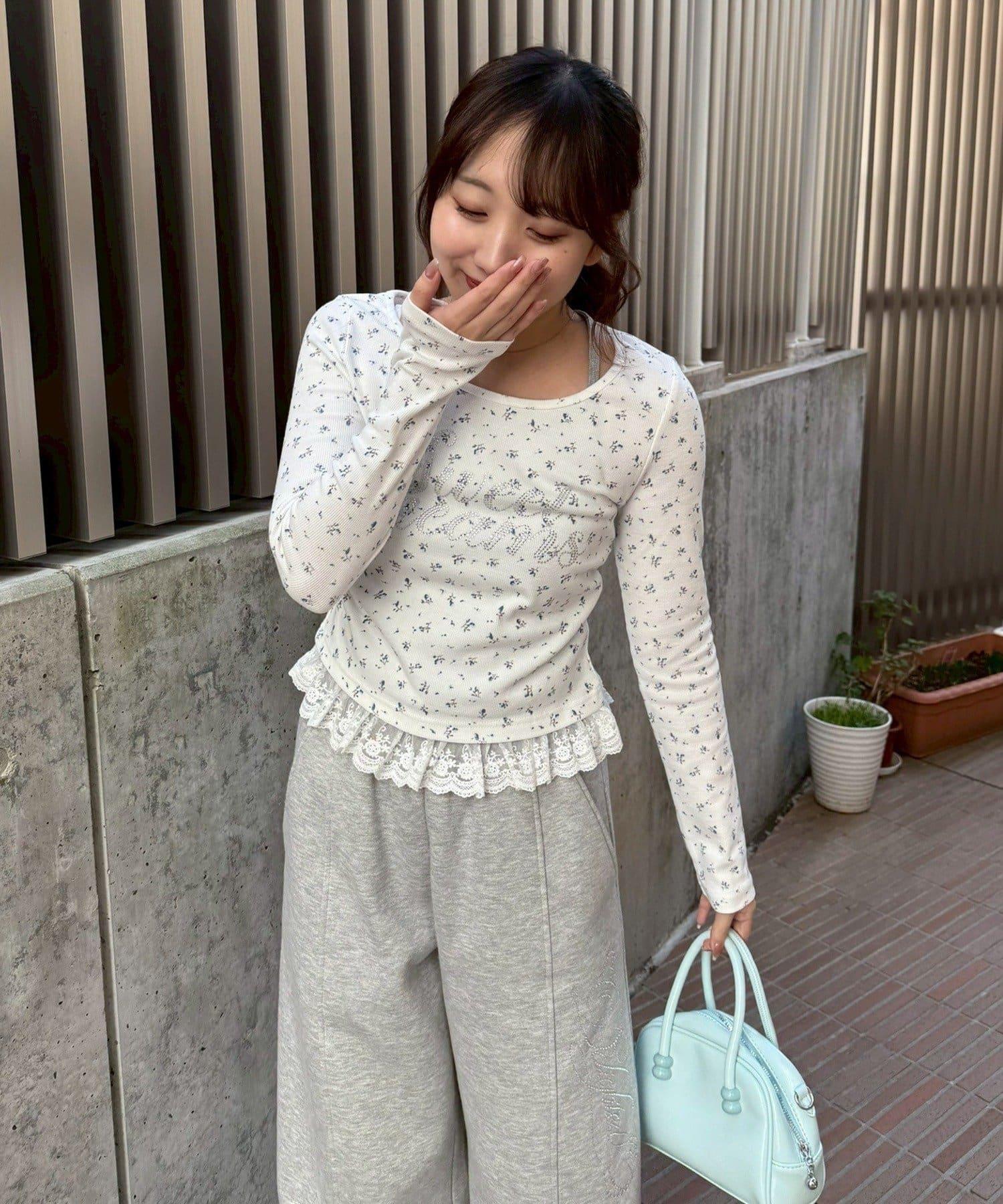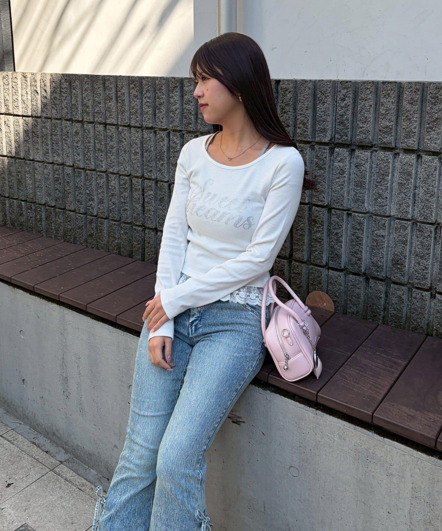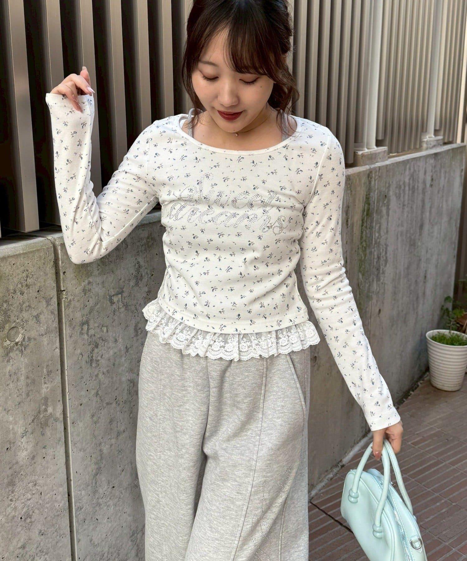 閃亮Logo 下襬蕾絲 羅紋 上衣