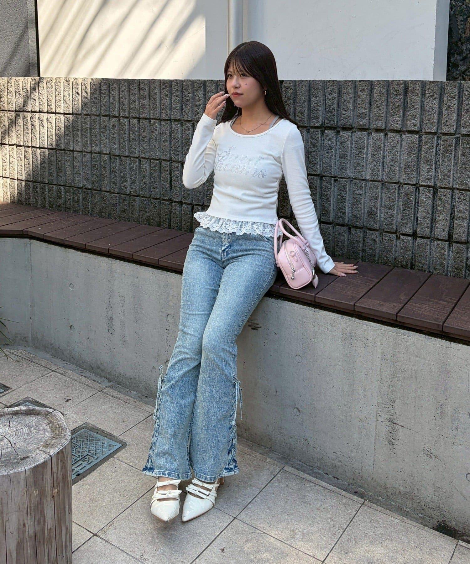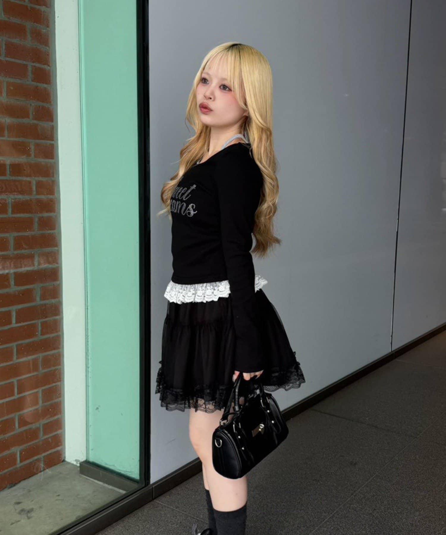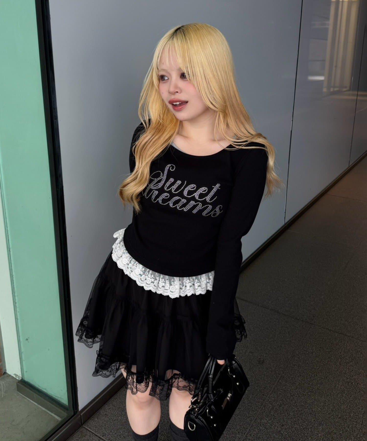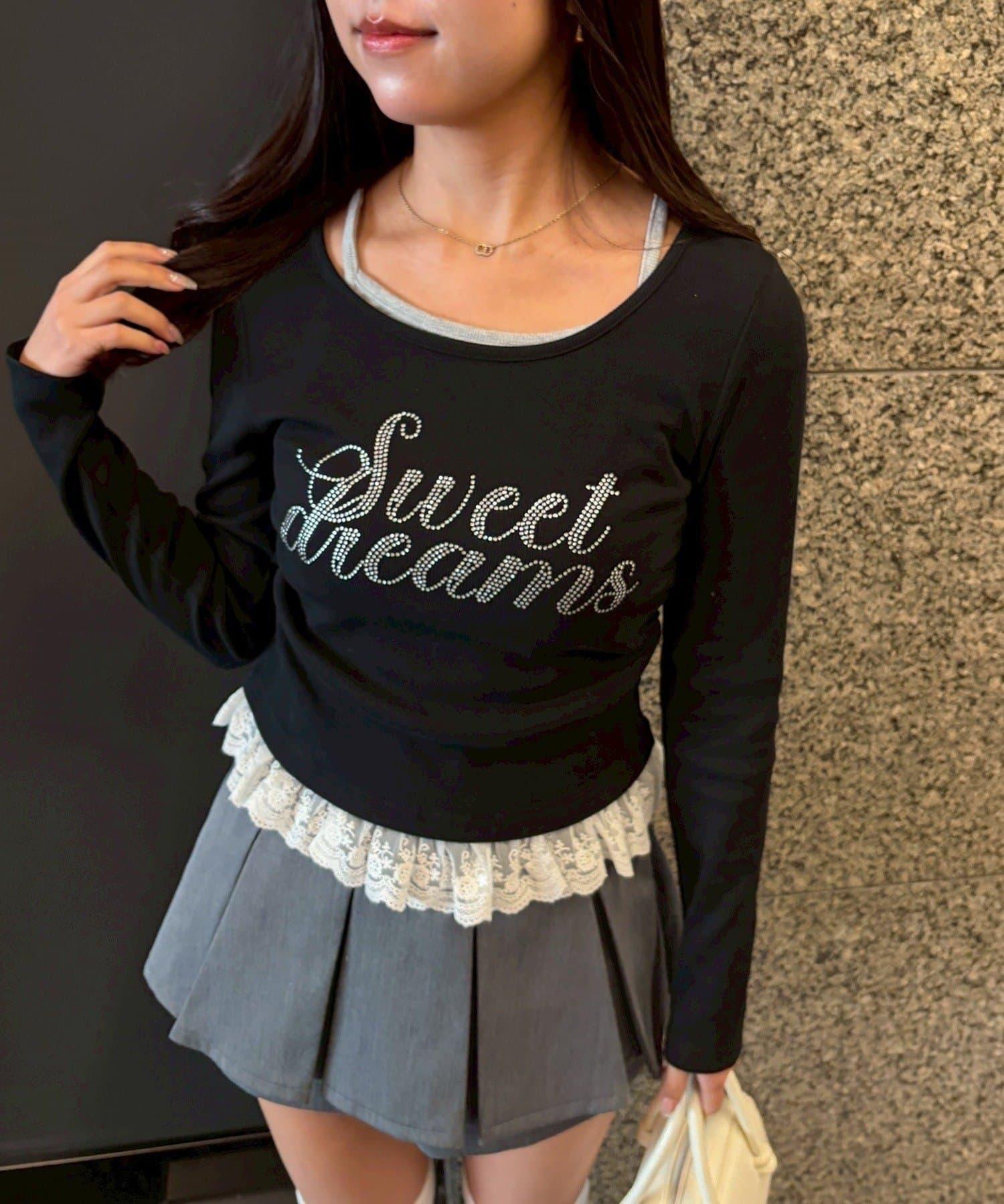 閃亮Logo 下襬蕾絲 羅紋 上衣