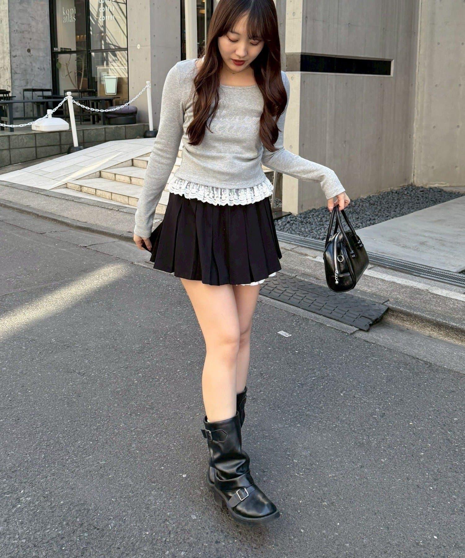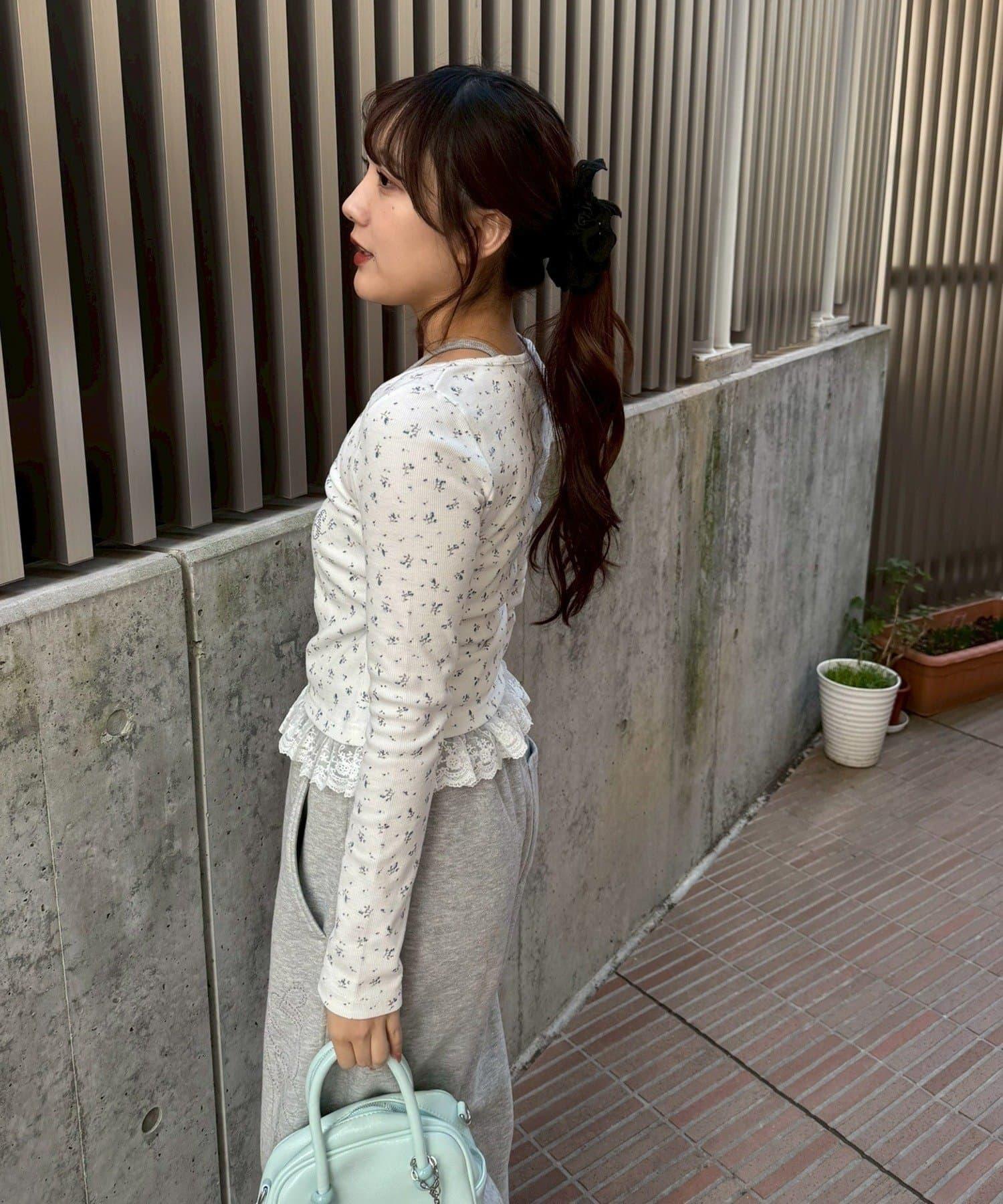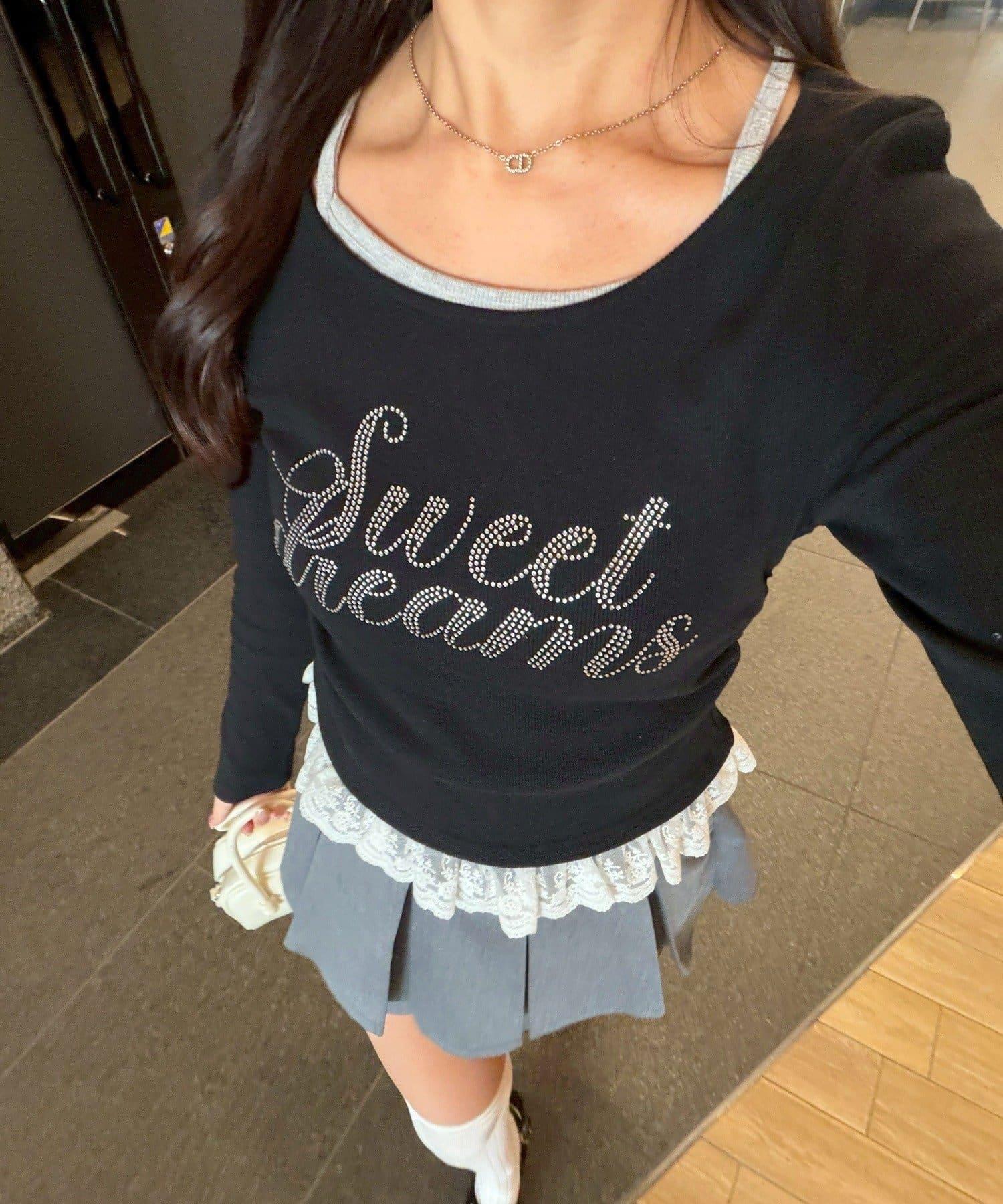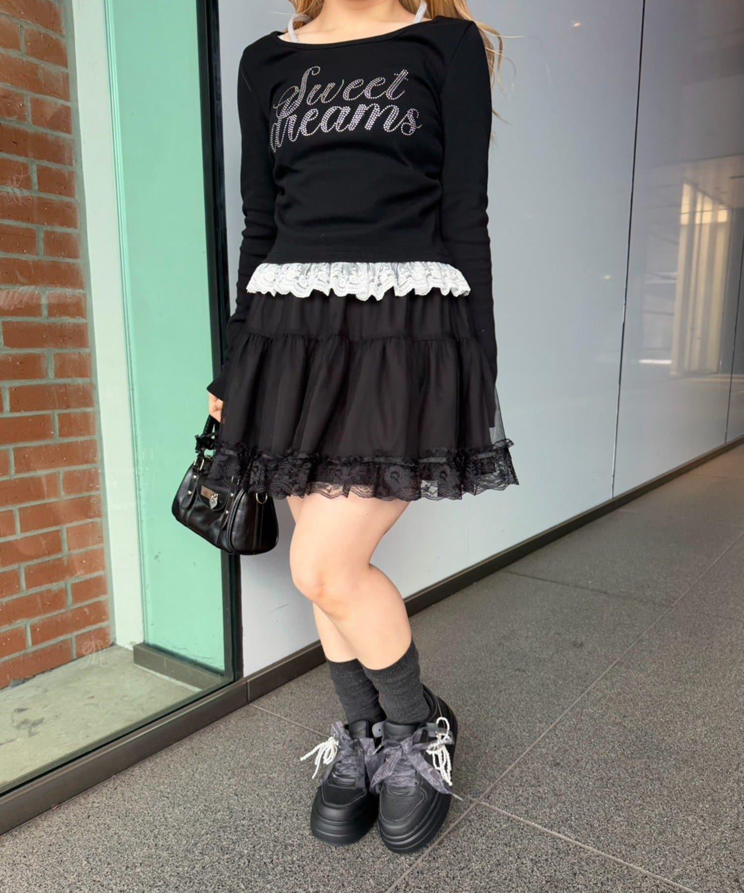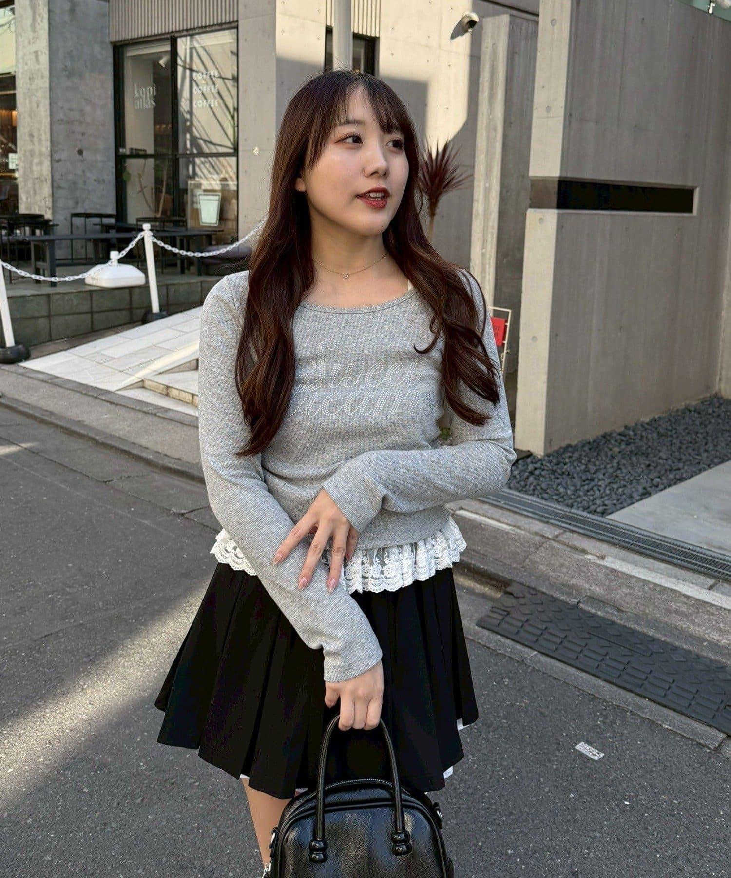 閃亮Logo 下襬蕾絲 羅紋 上衣