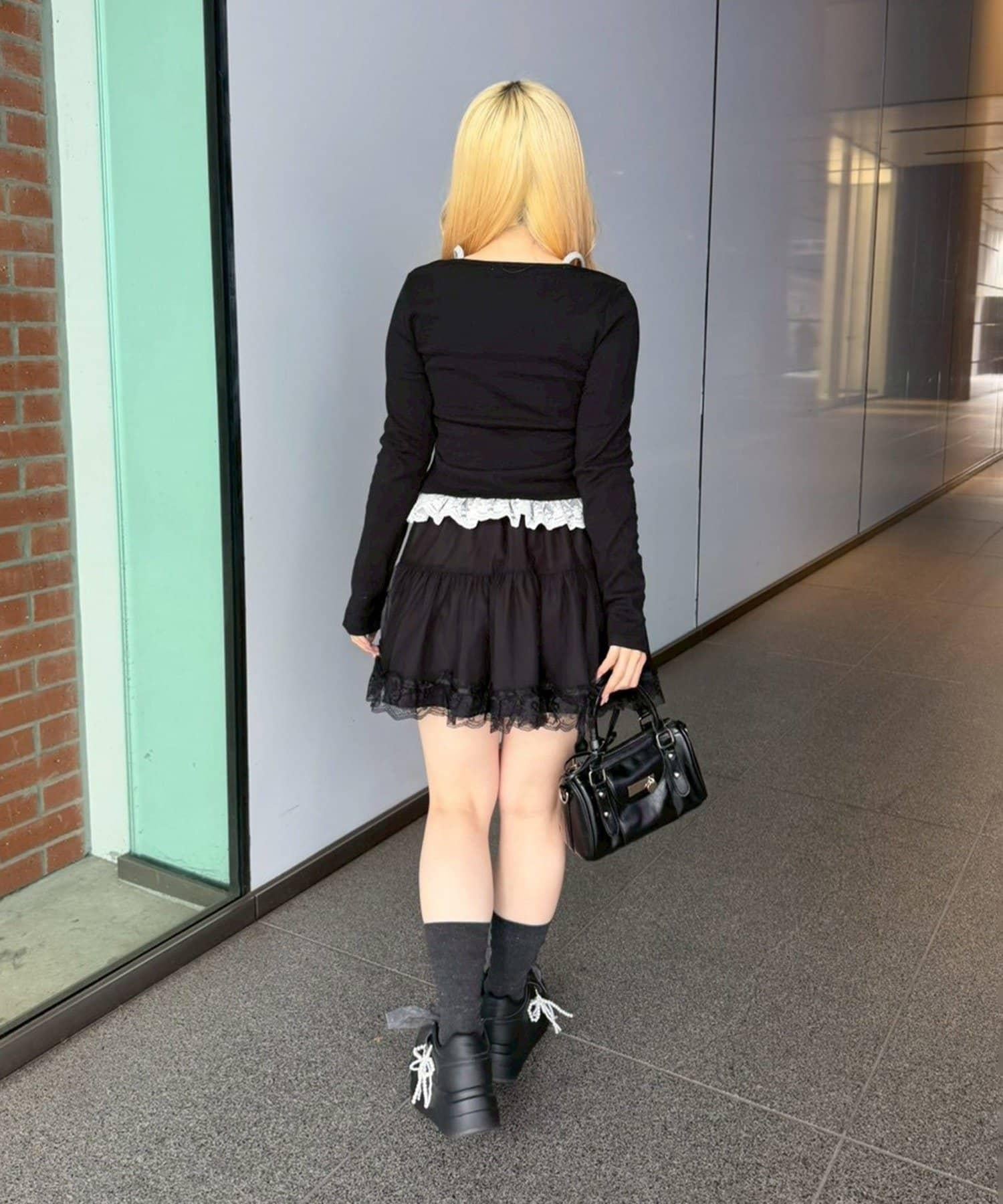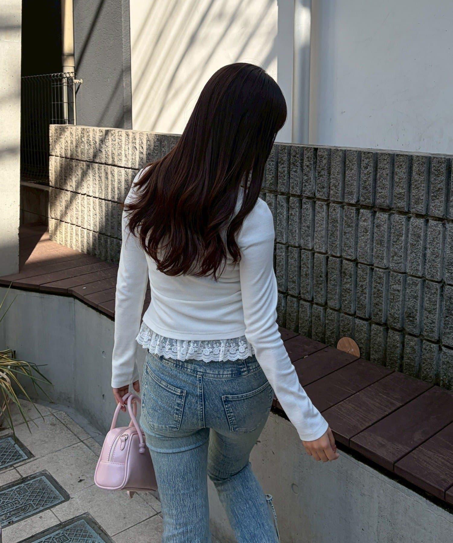 下襬的精緻蕾絲增添了微妙的甜美感。