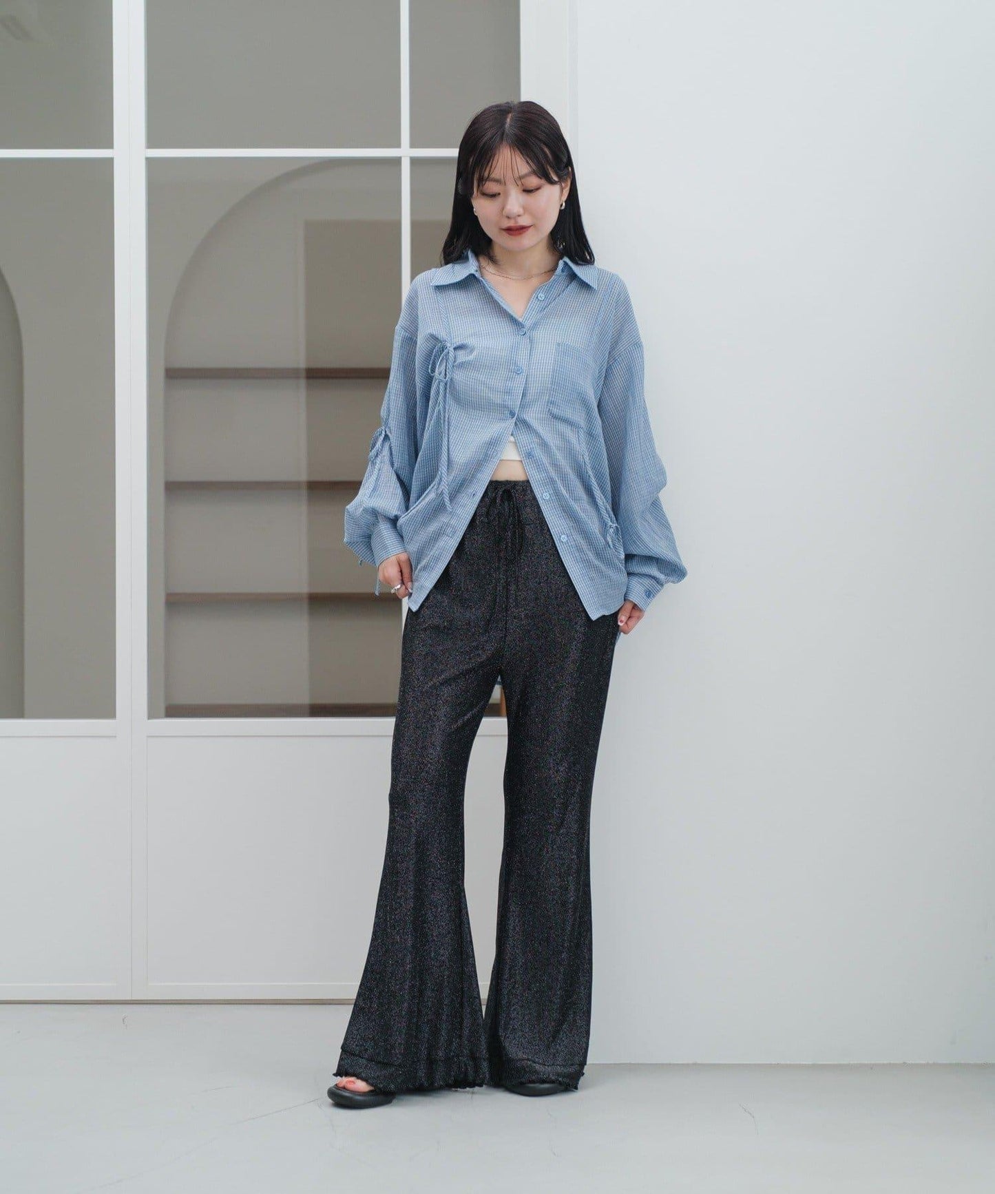 帶有華麗光澤和墜落效果的垮褲,讓您的雙腿更顯優美。
