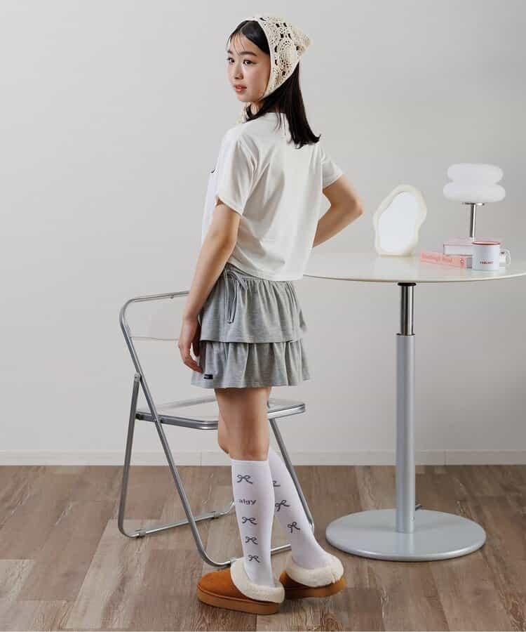 algy 的短袖 T 恤 "Lame Print Shirring T "因其可愛甜美的設計而廣受歡迎,為追求時尚的女性的日常生活增添了色彩!只需一件,您就能成為高級時尚達人!