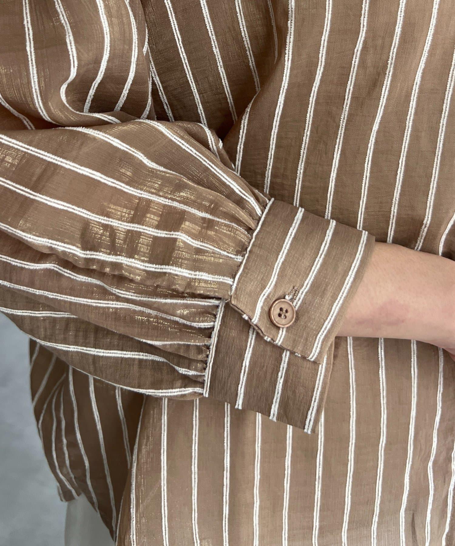 傾向於休閒的條紋線條上點綴著細微的跛腳裝飾,給人以女性化的印象◎。
