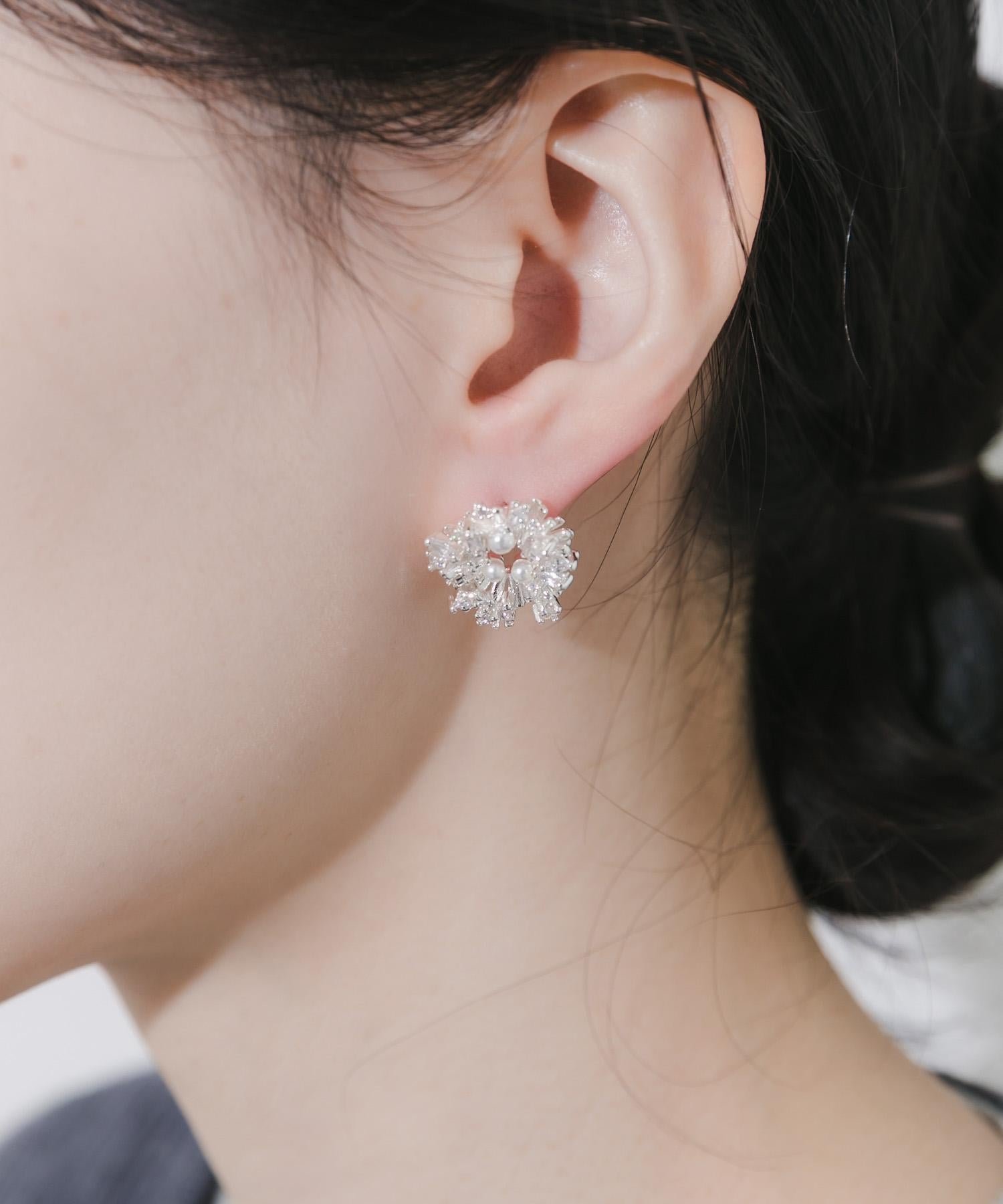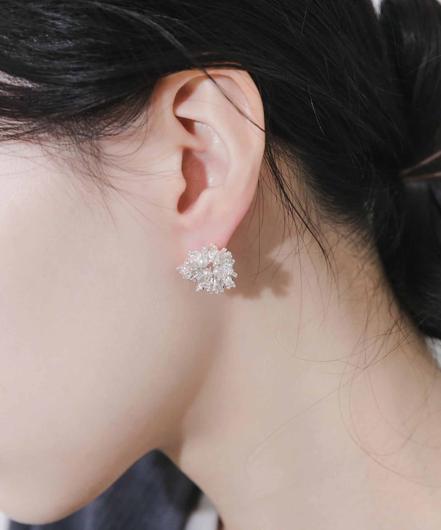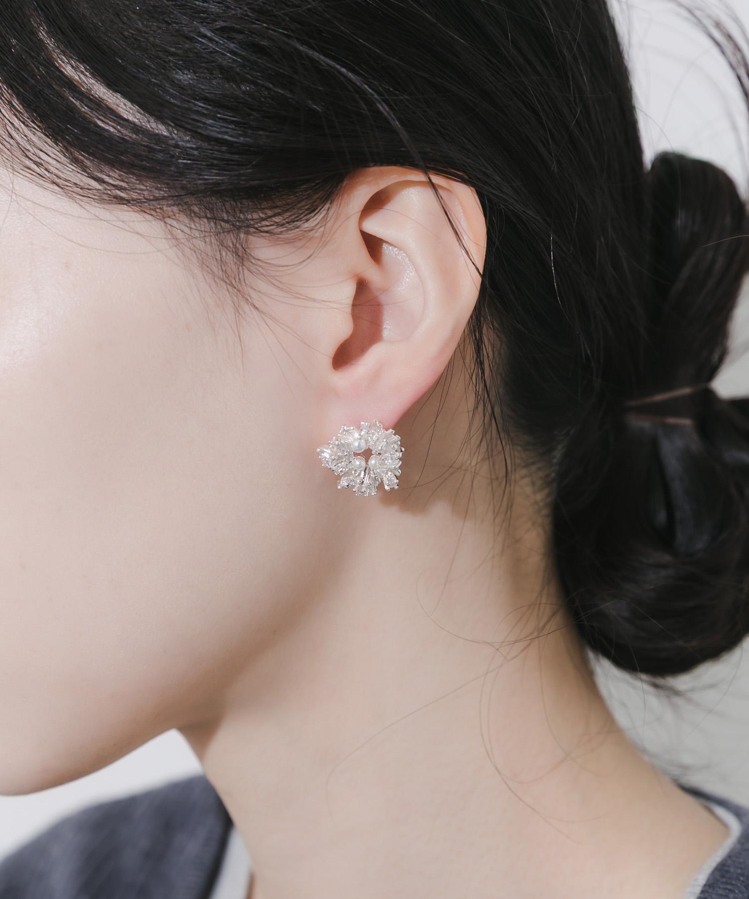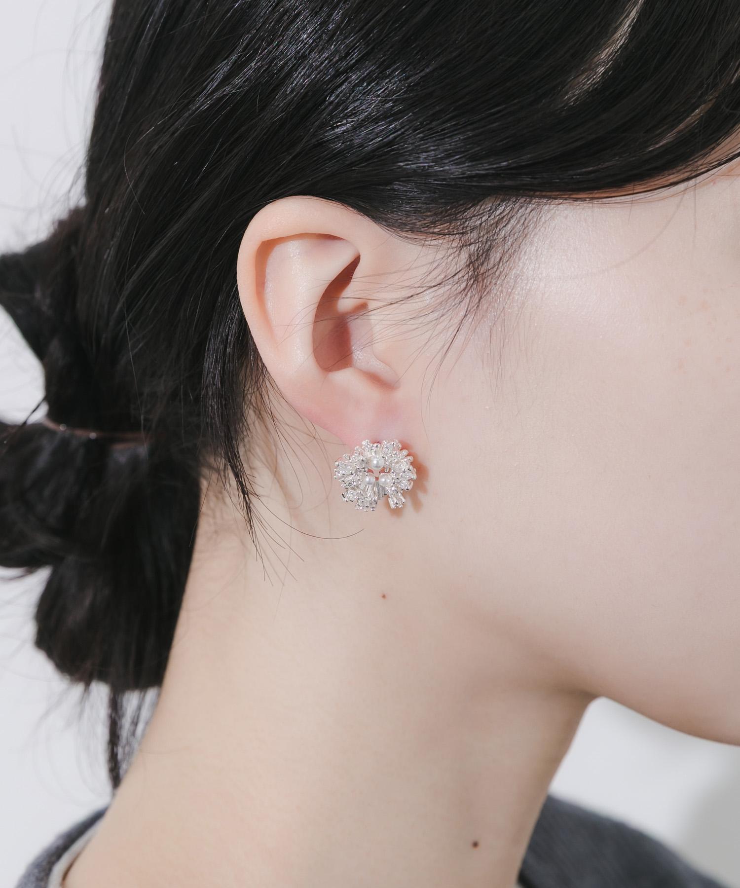 這款耳環採用散落的珍珠和寶石打造出花束般的設計,十分搶眼。