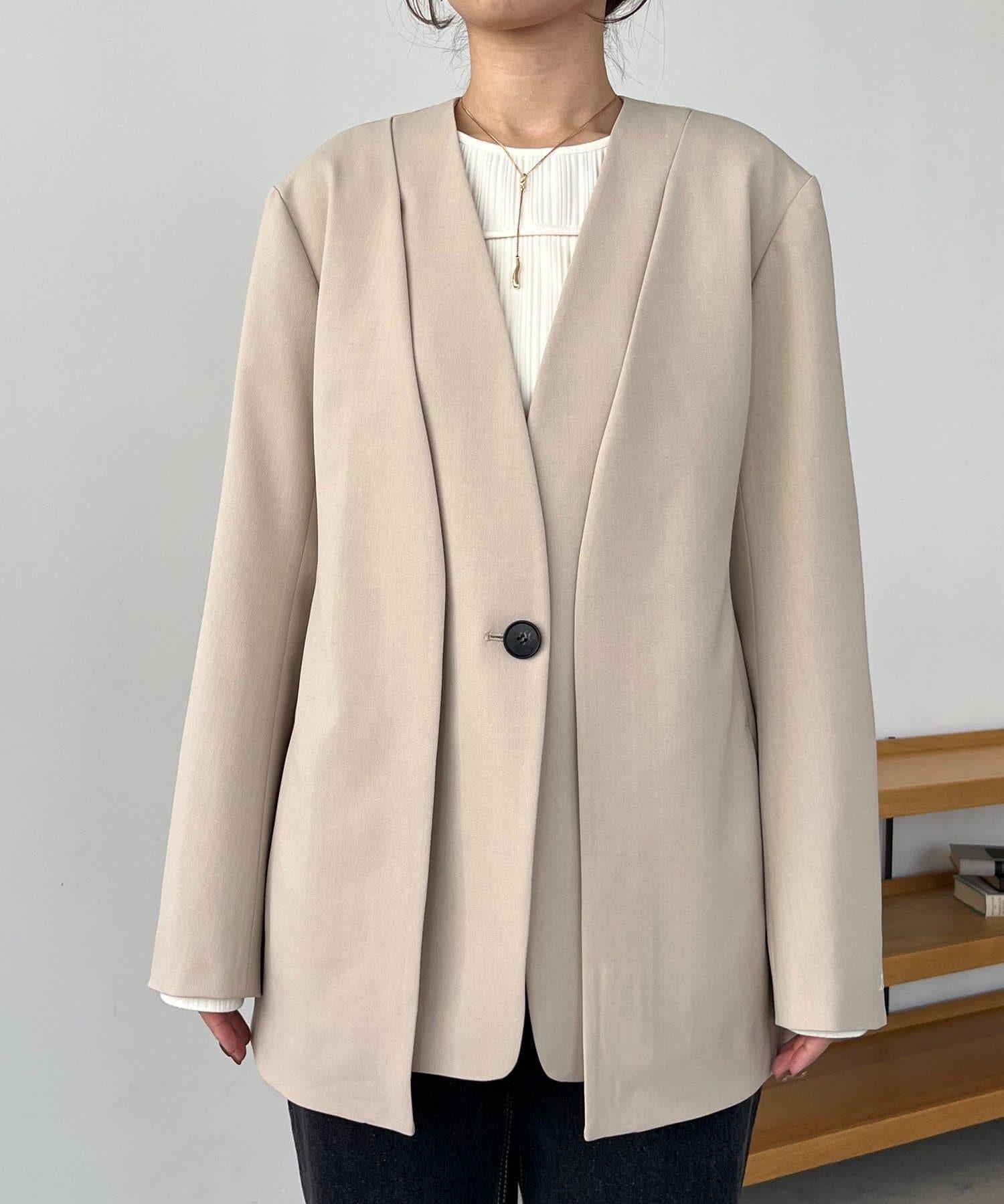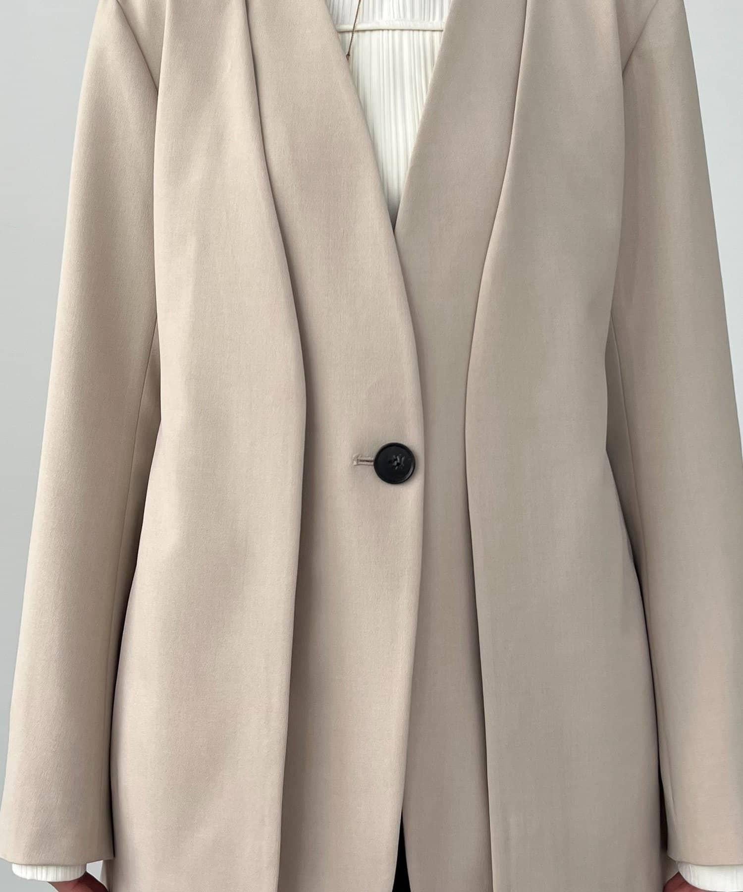 這款無領夾克看起來像套頭衫,屬於基本款,老少皆宜。
