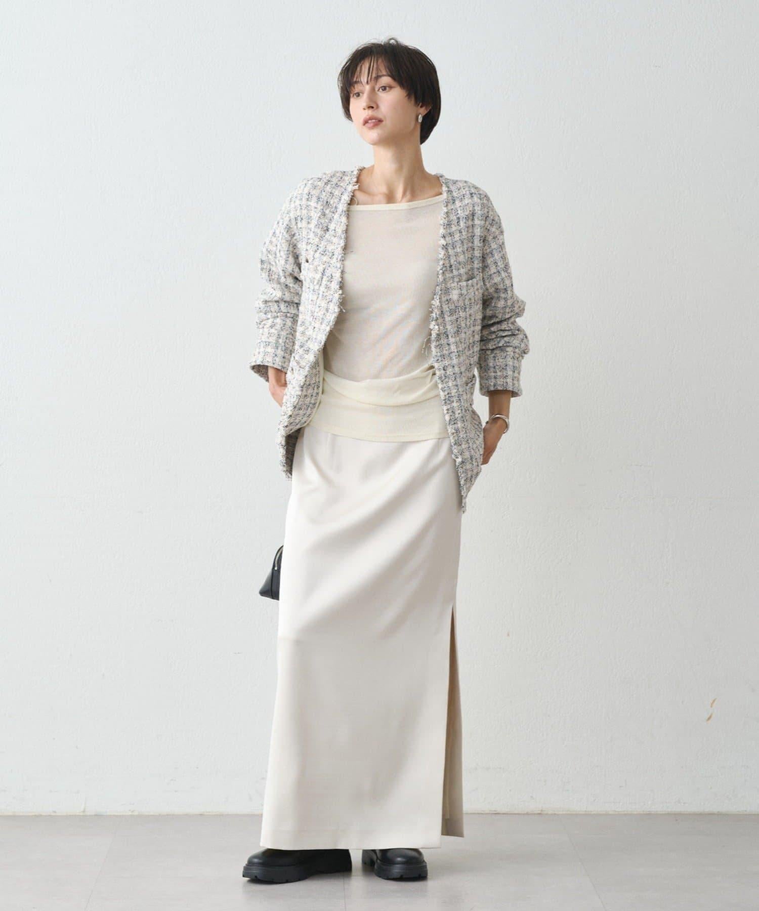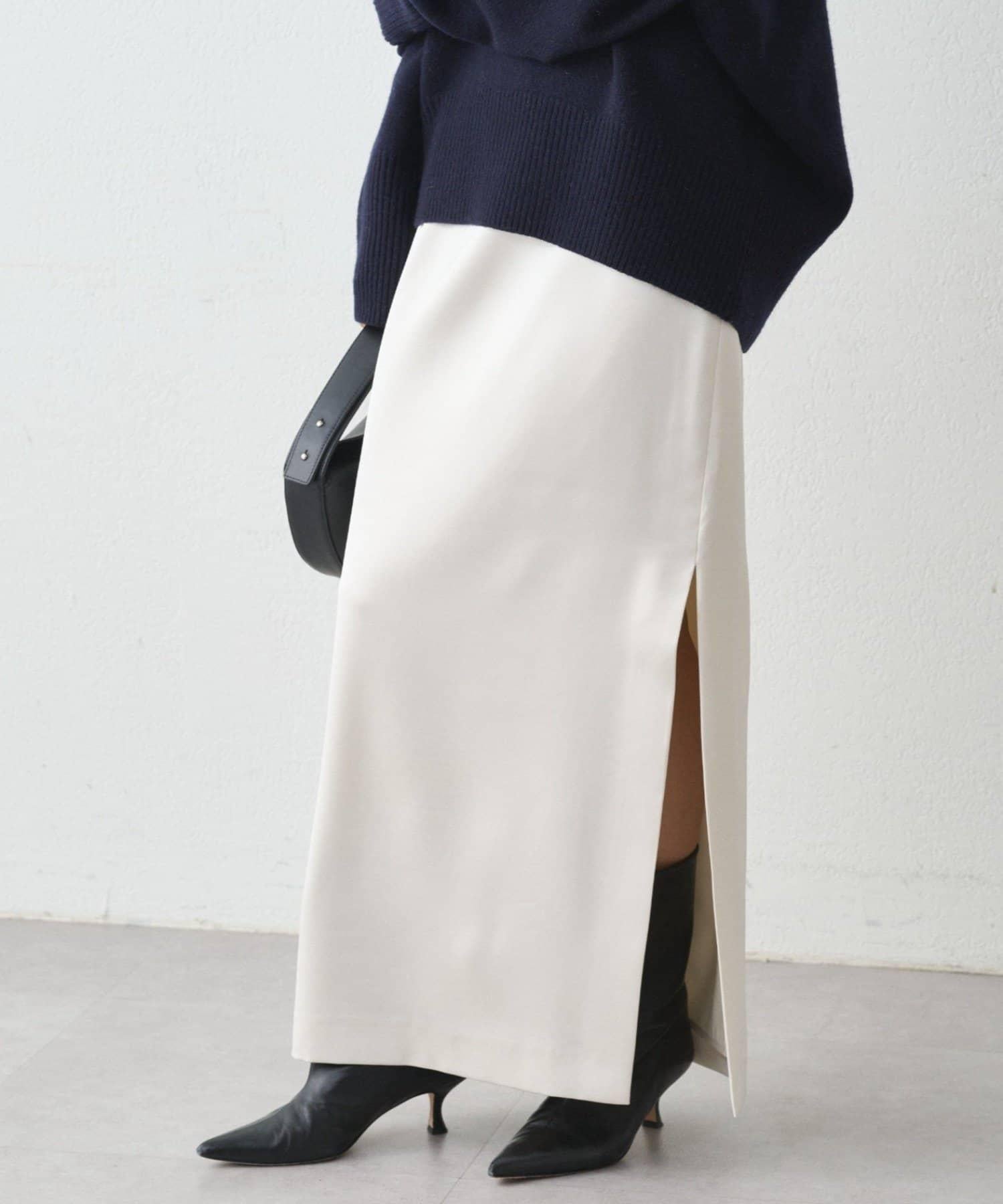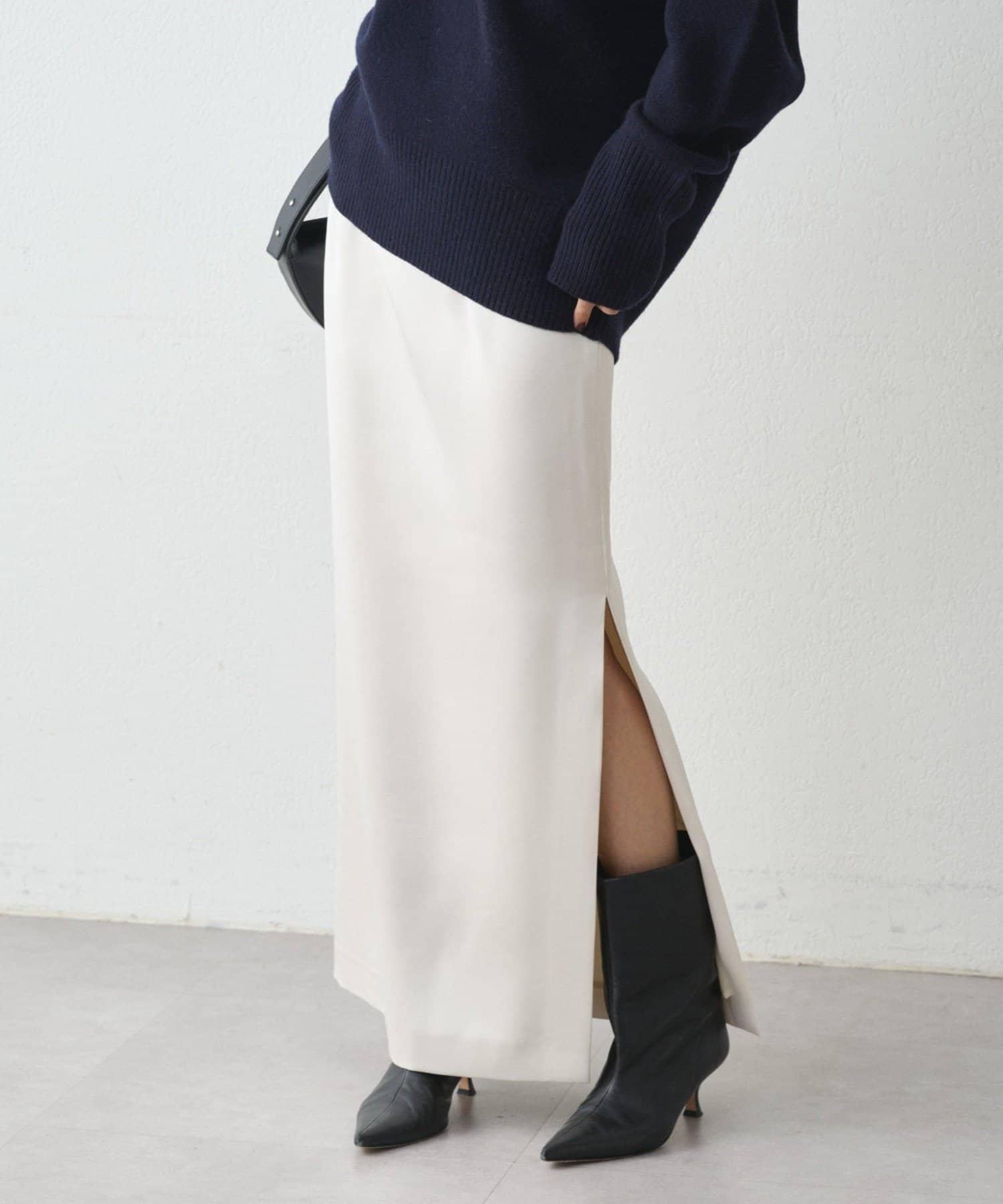 開衩緞面緊身裙,讓您在行走時產生優美的搖擺感。
