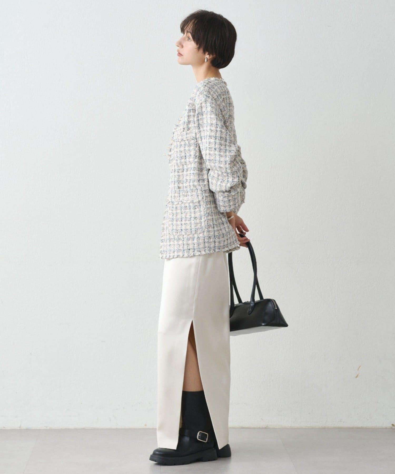 裙子後部的開衩設計增加了活動的自如性和良好的鬆弛感。