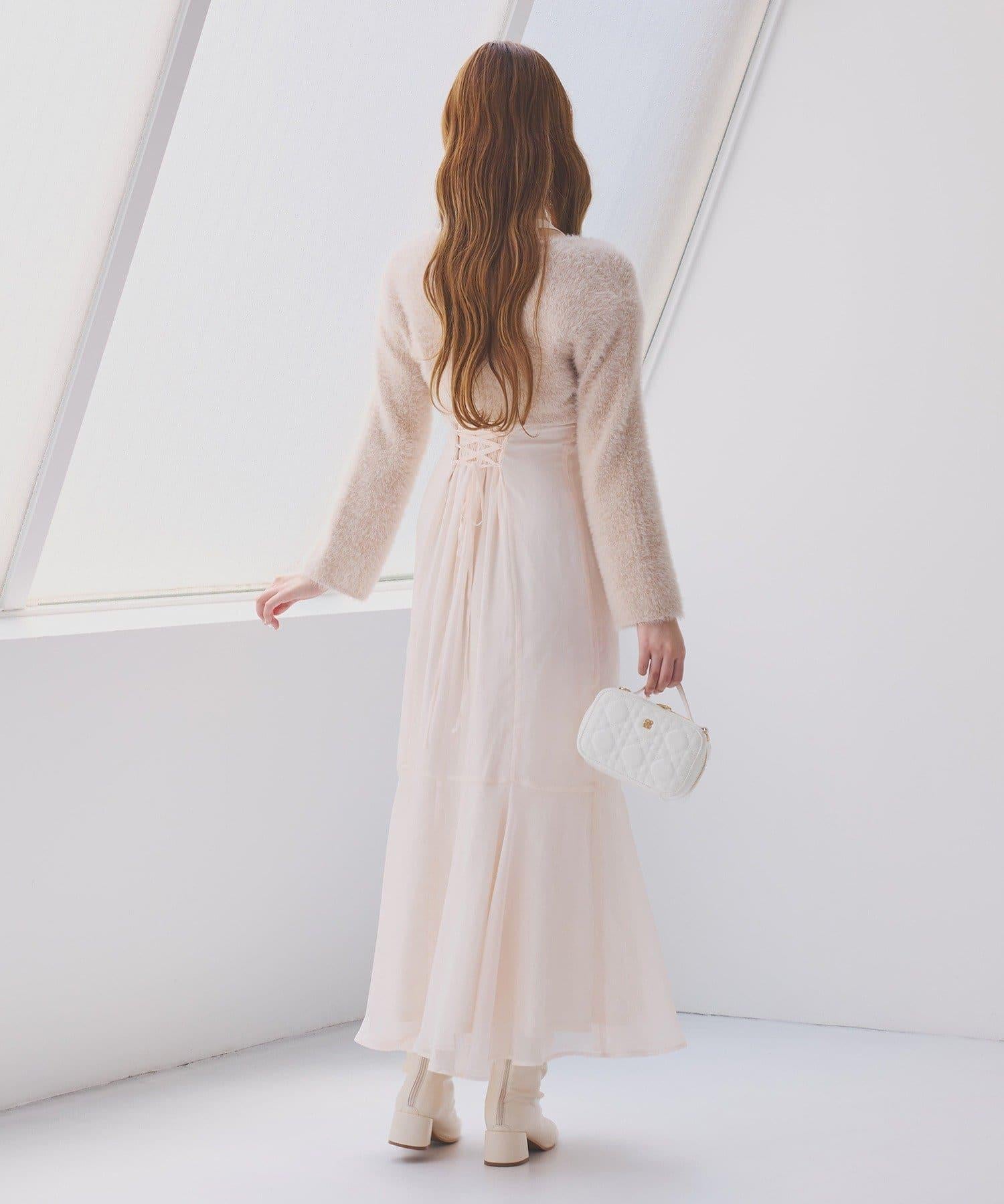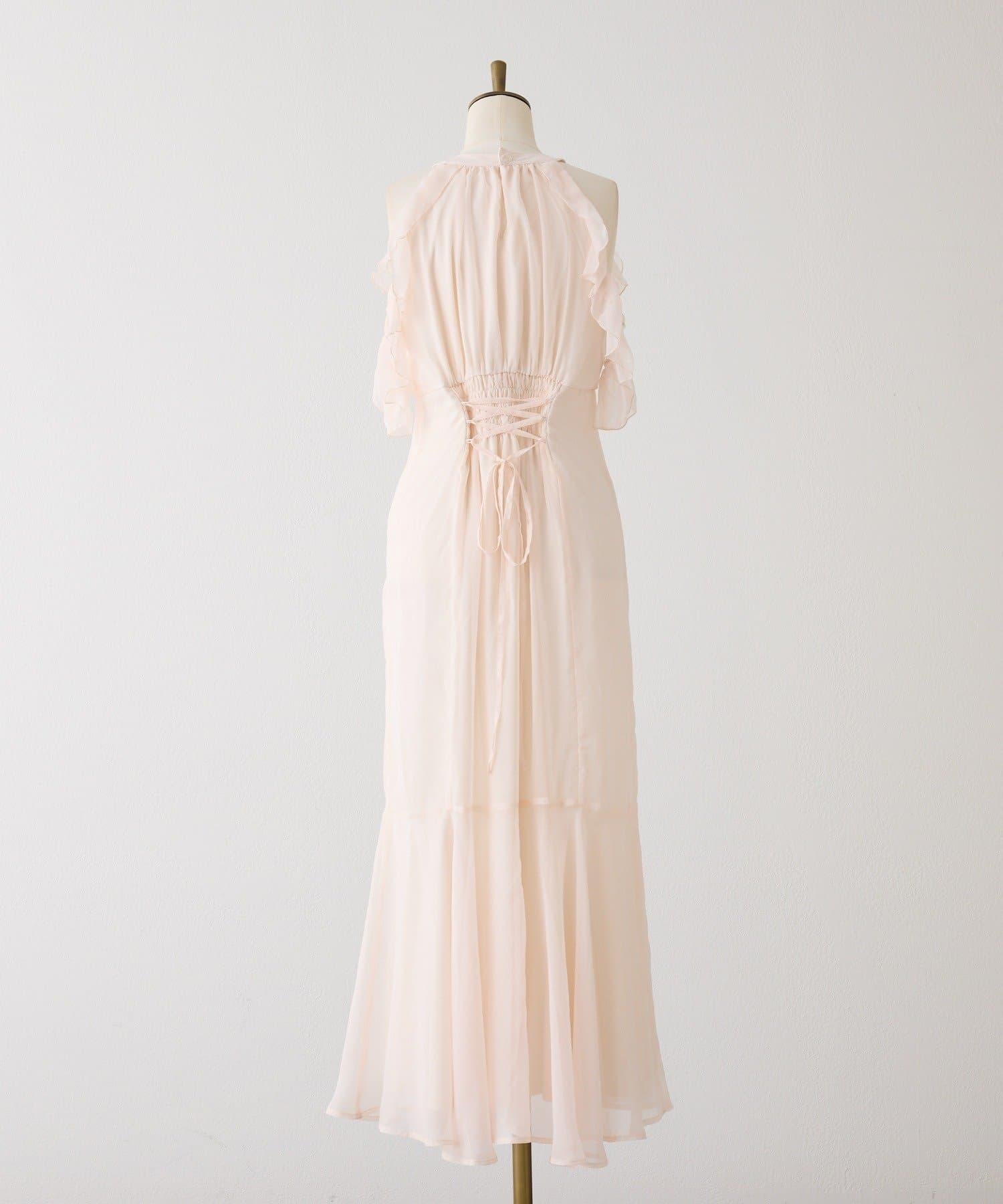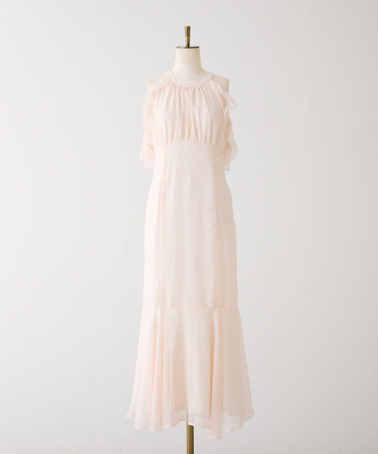 連身裙的垂直線條垂至地面,簡潔的輪廓讓人眼前一亮。
