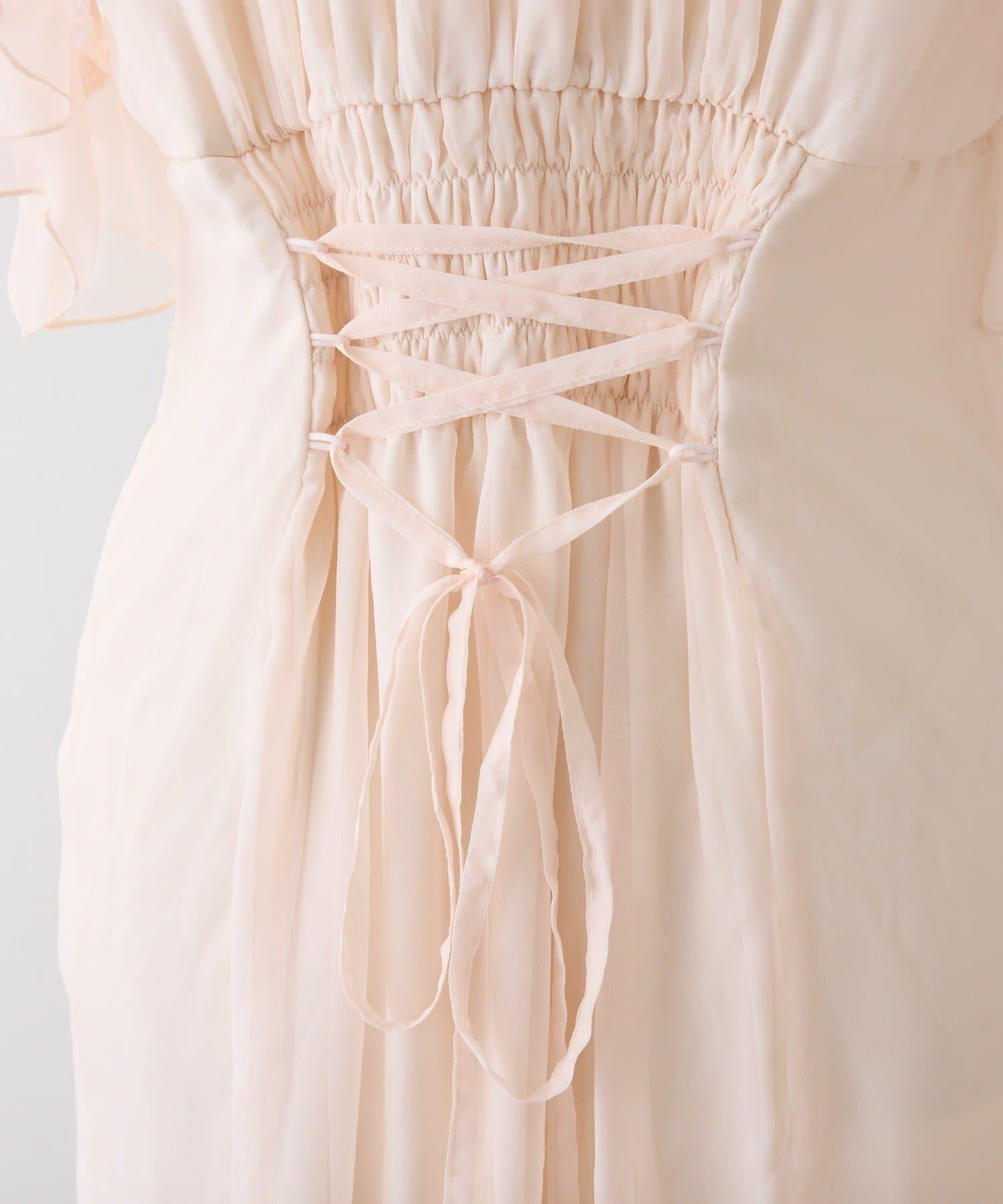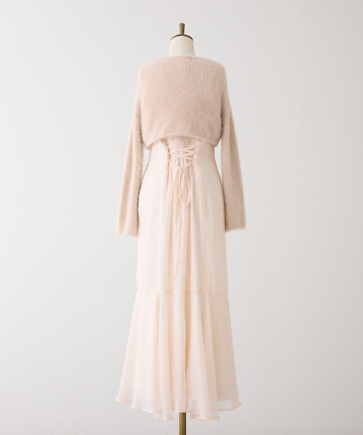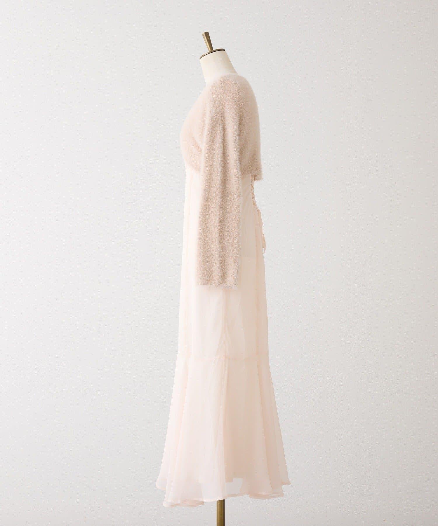 連身裙的垂直線條垂至地面,簡潔的輪廓讓人眼前一亮。