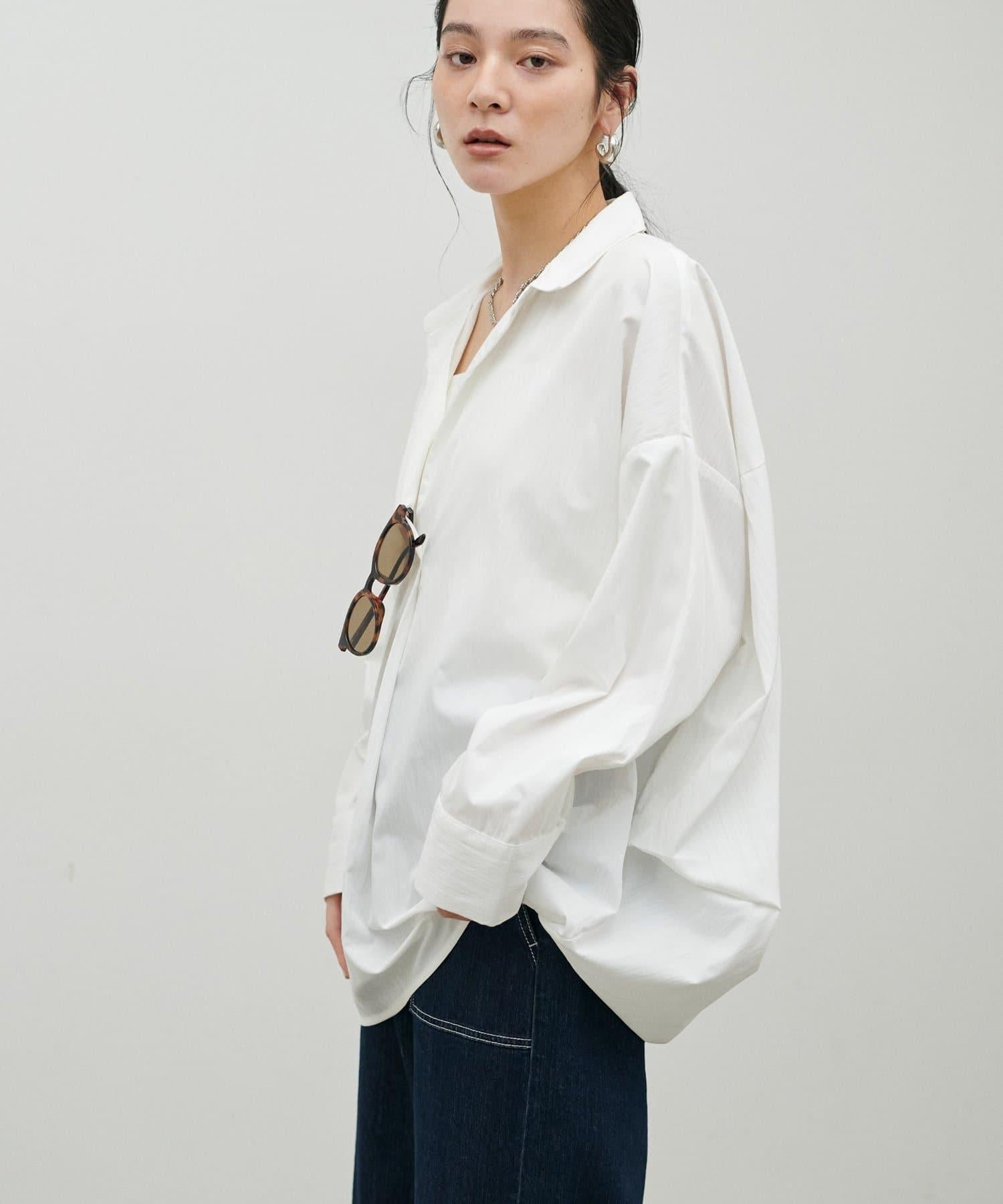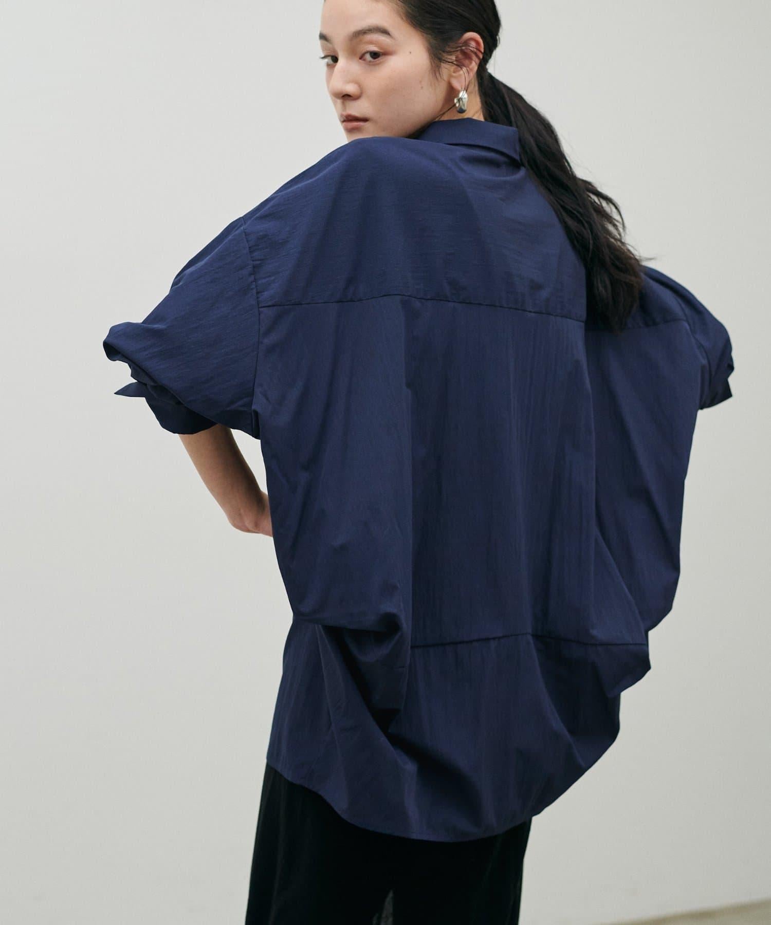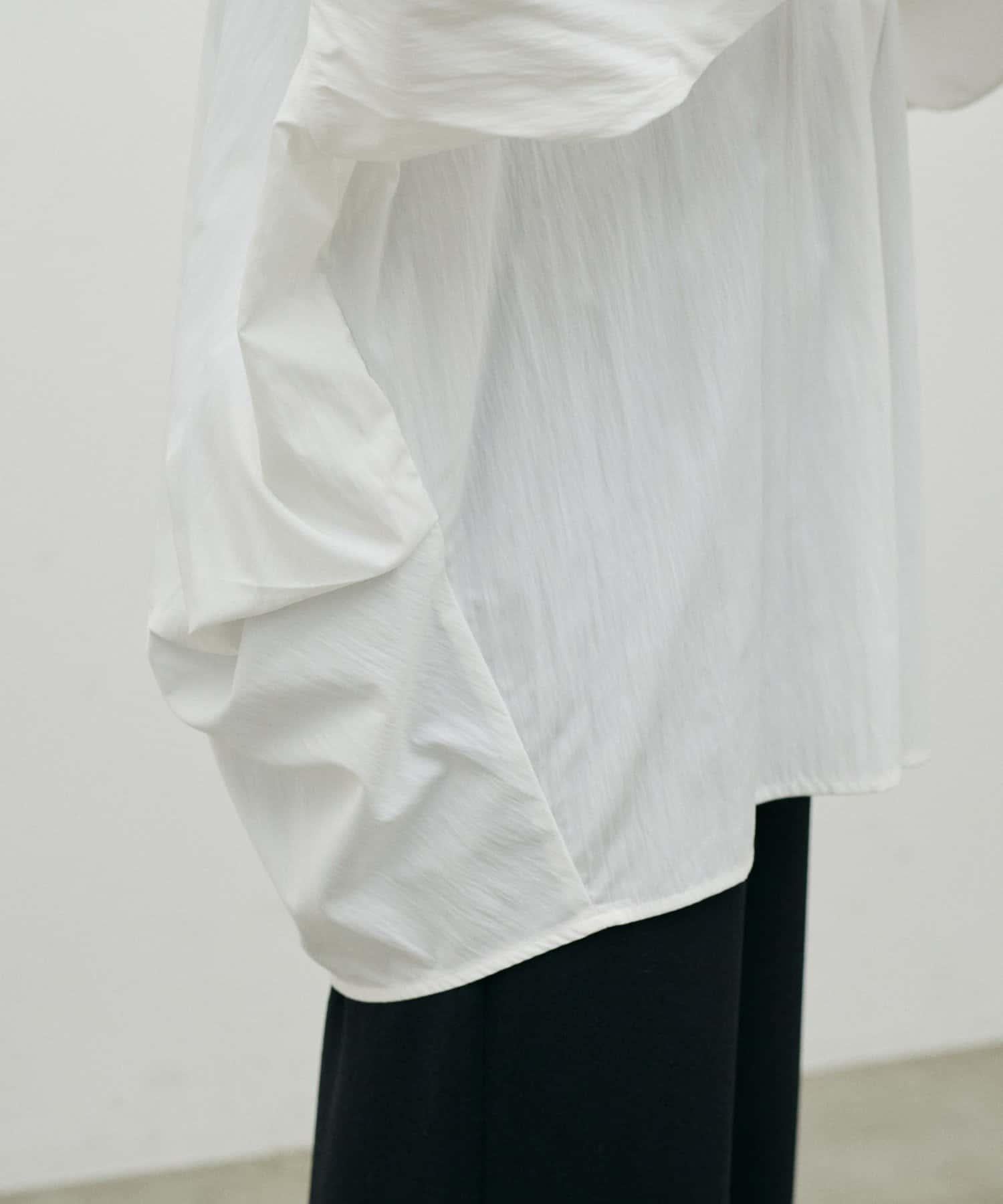 寬鬆的超大立體繭型廓形,側線後方有收褶。