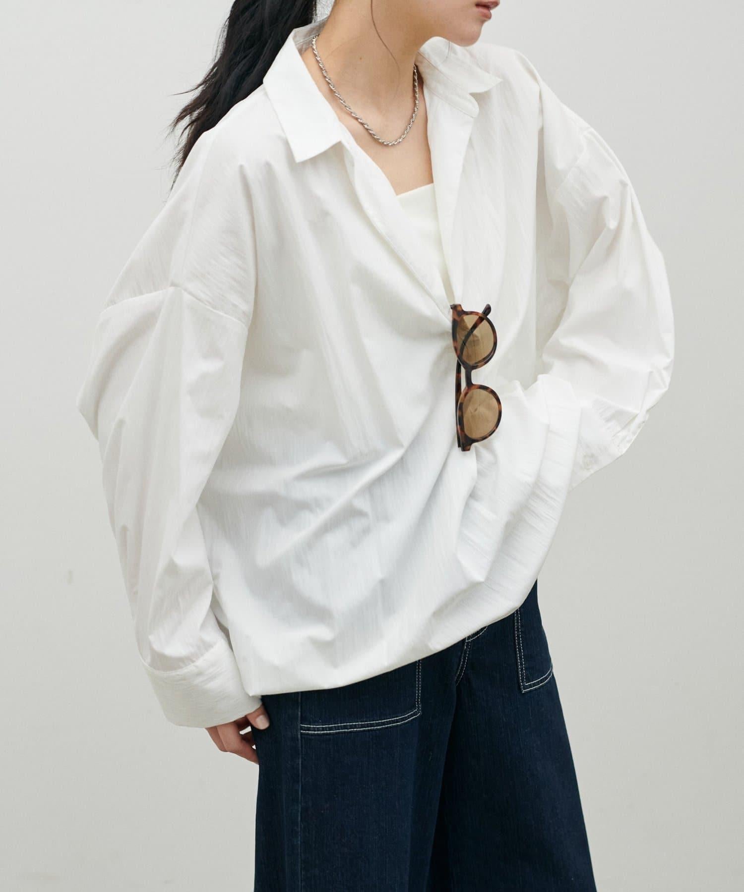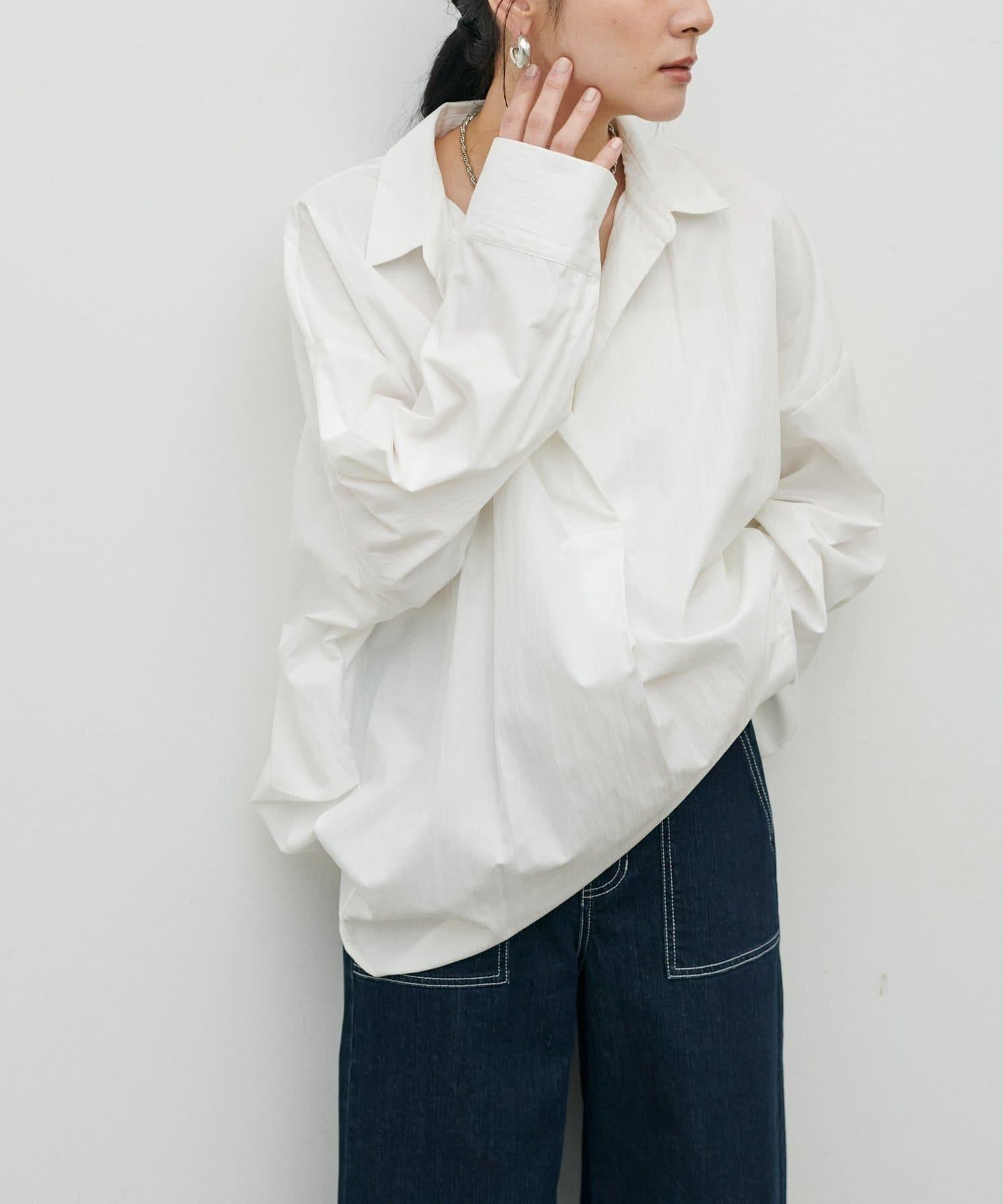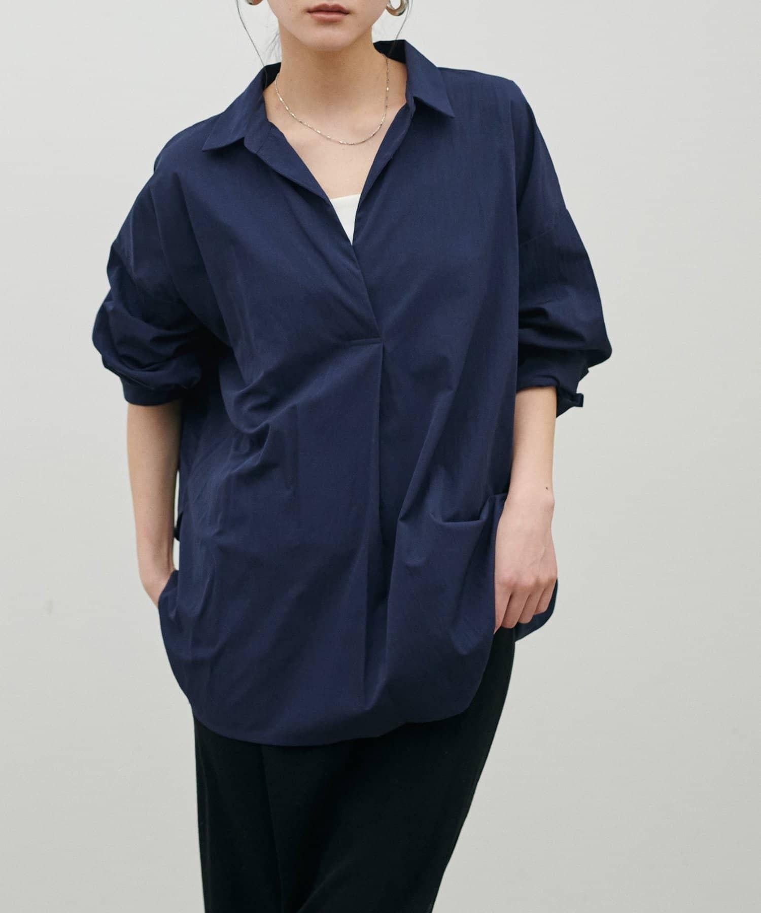 寬鬆的超大立體繭型廓形,側線後方有收褶。