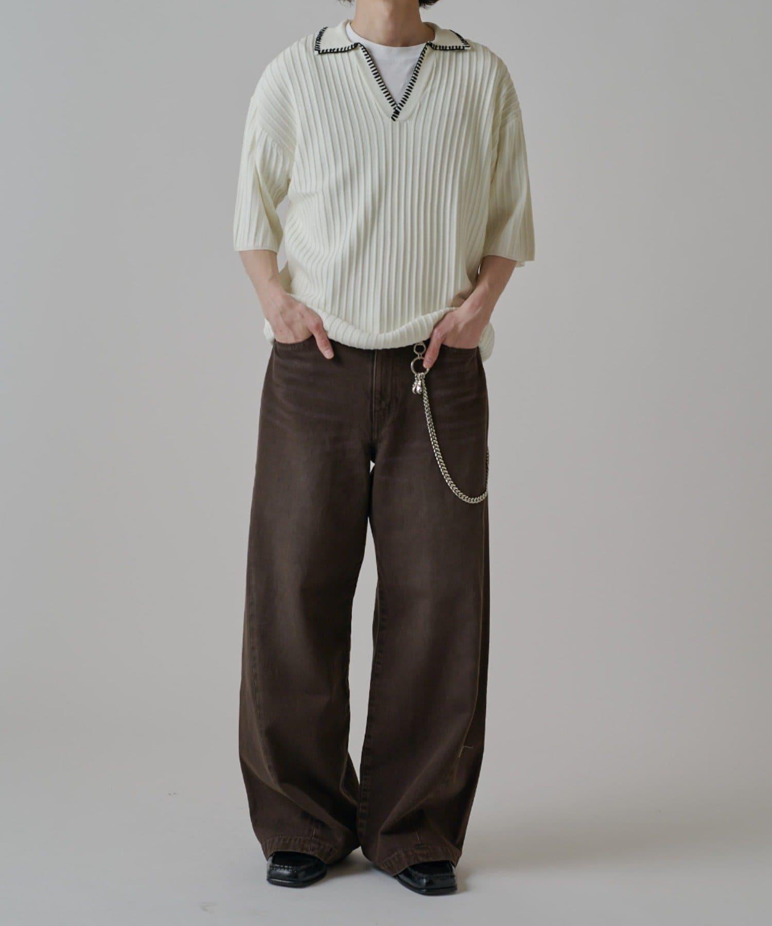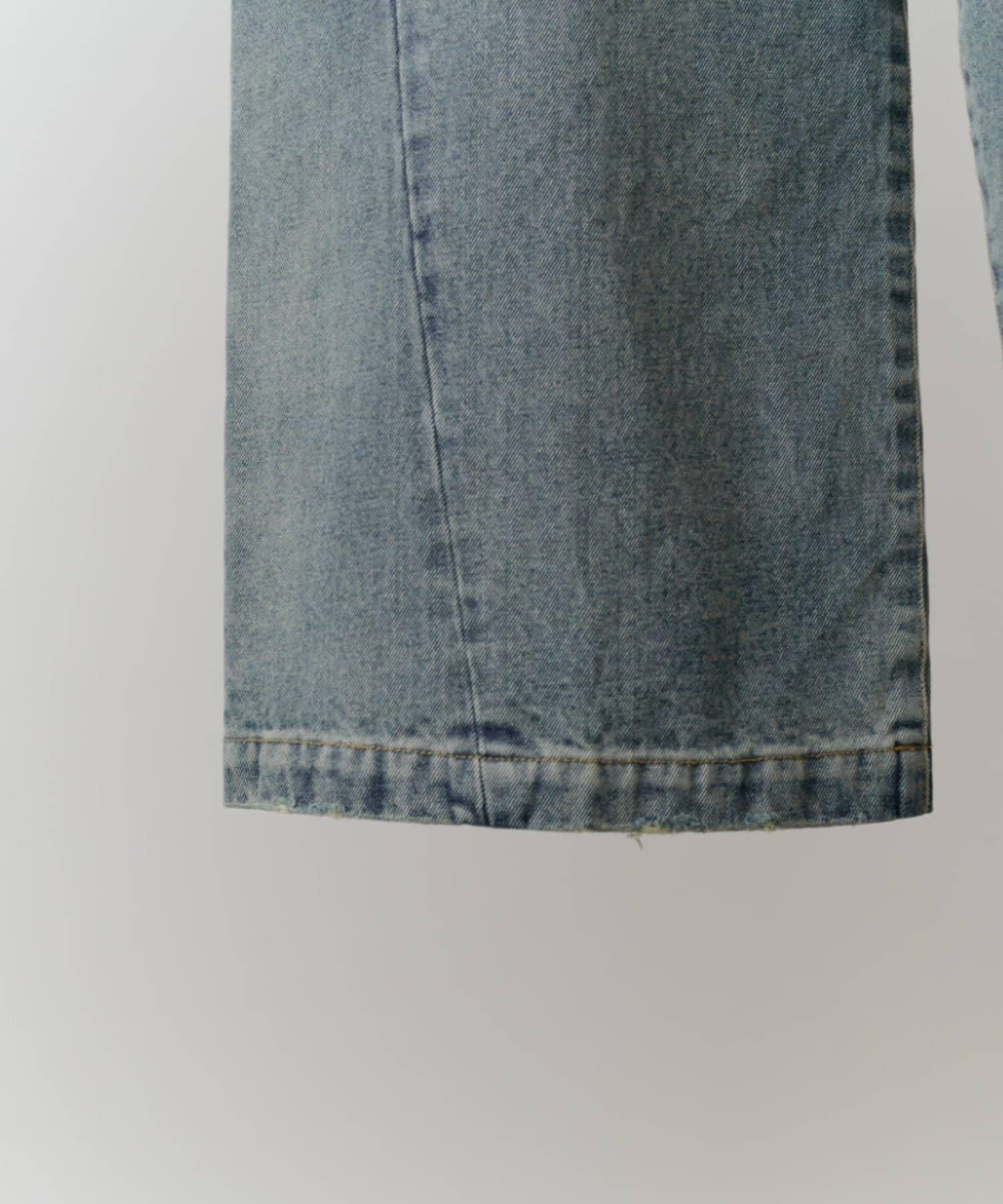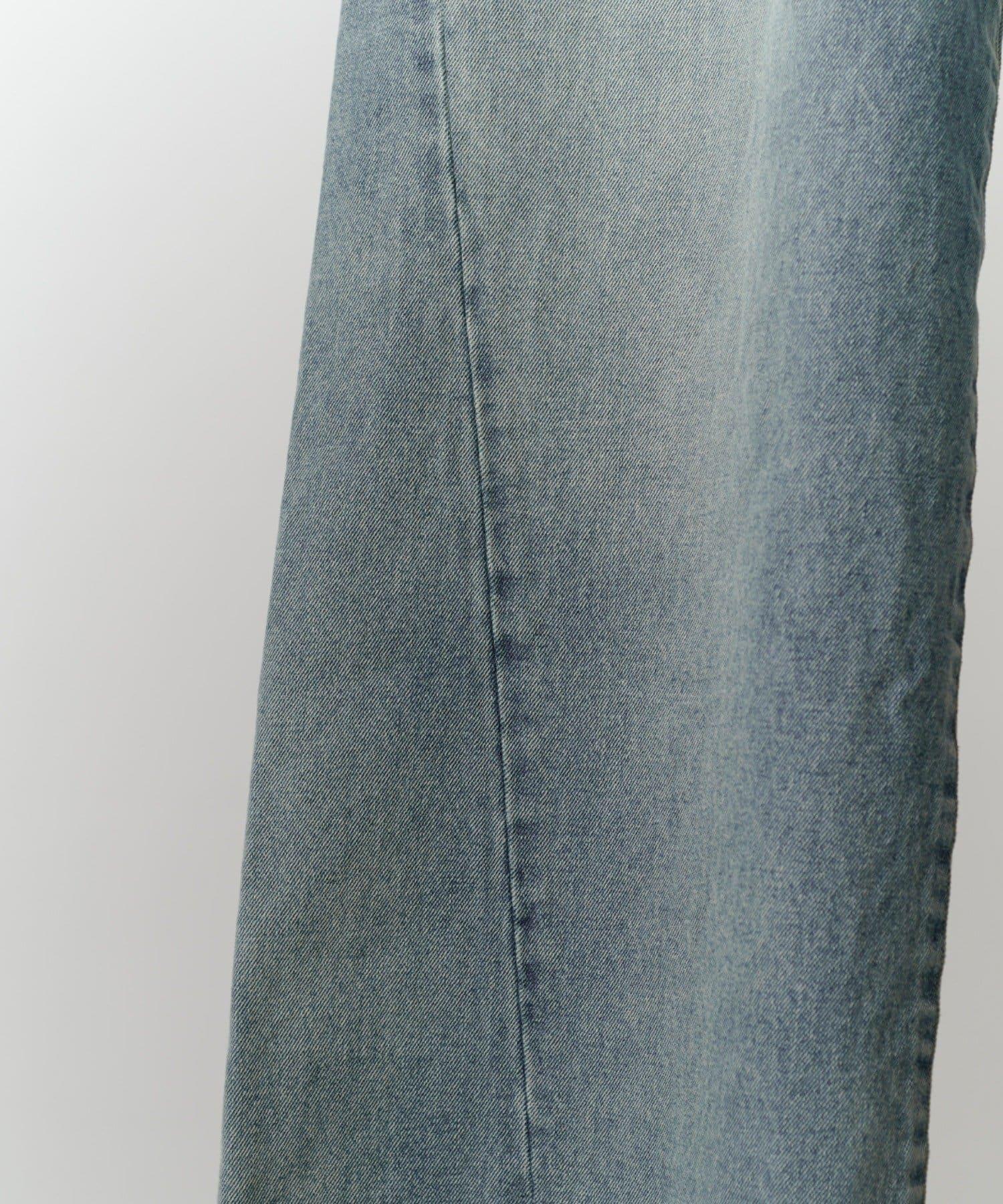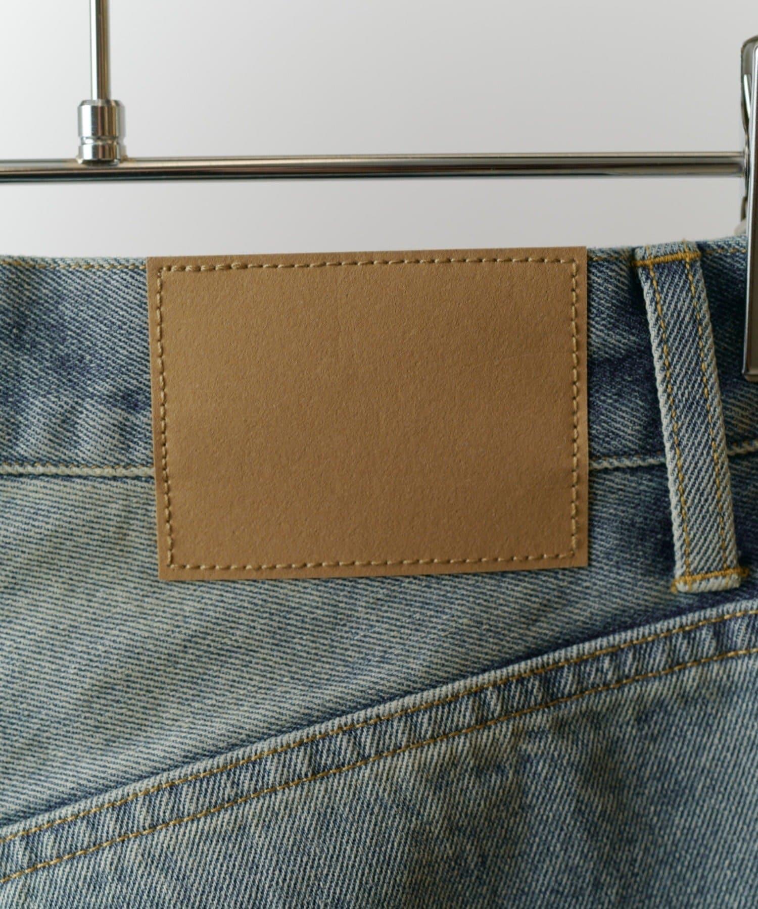 它的花紋從膝蓋以下直垂而下,給人一種簡潔美觀的感覺。此外,與一般褲襠略深的寬牛仔布相比,這款牛仔布的褲襠做得與普通牛仔布相似,這樣的款式只需穿上它就會顯得更加美觀。