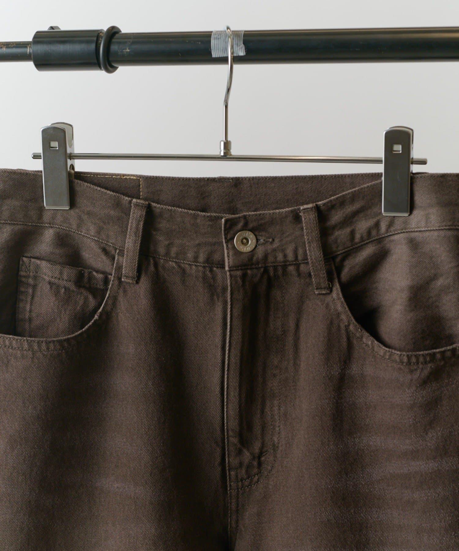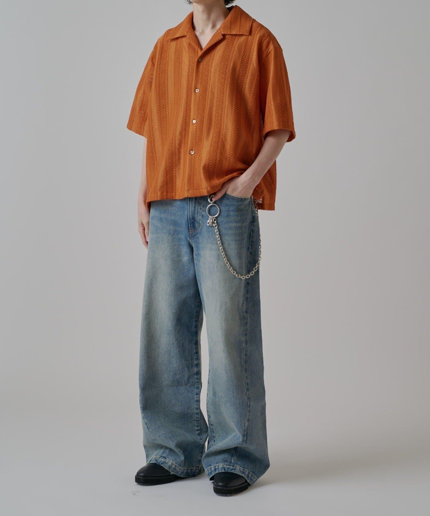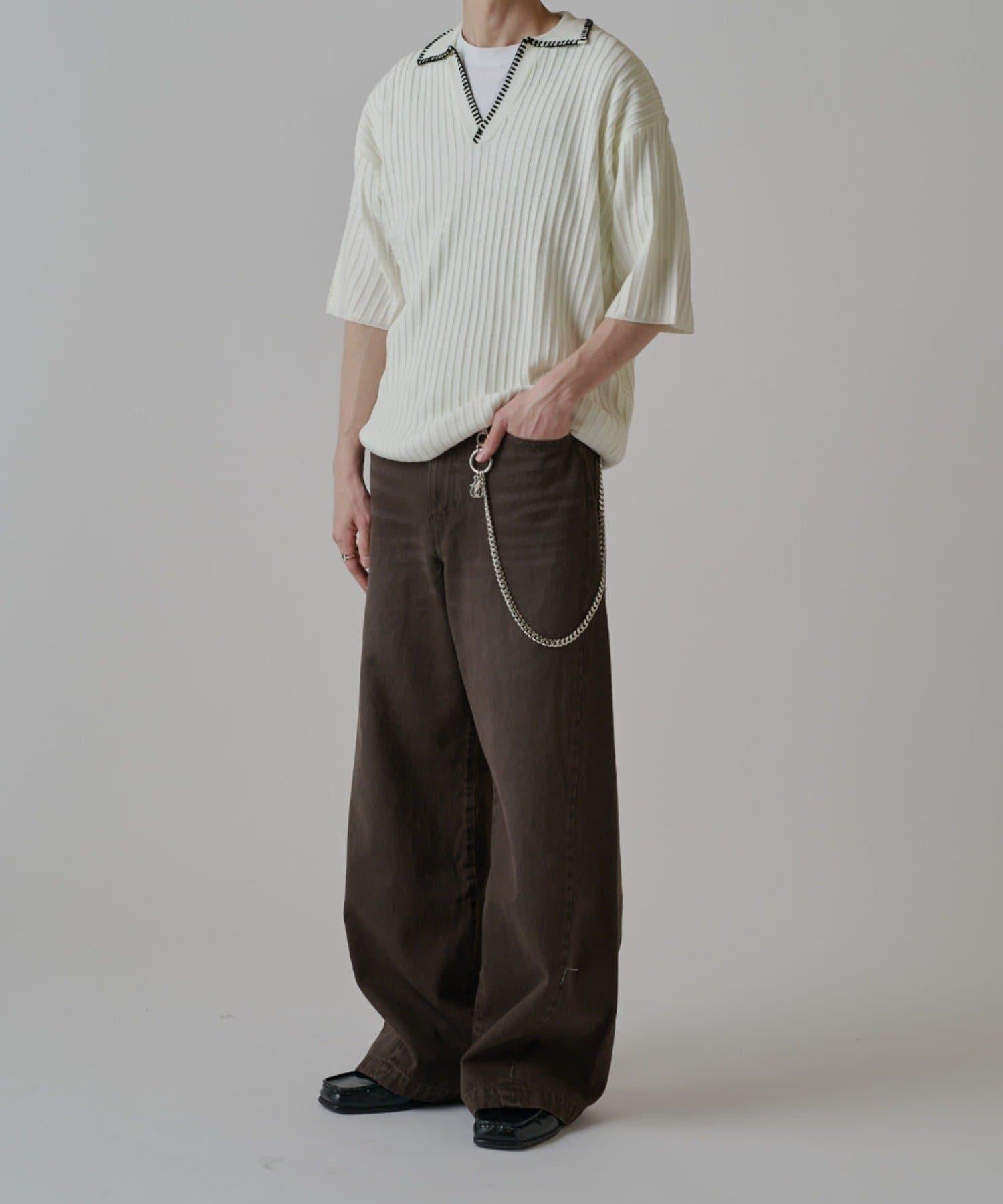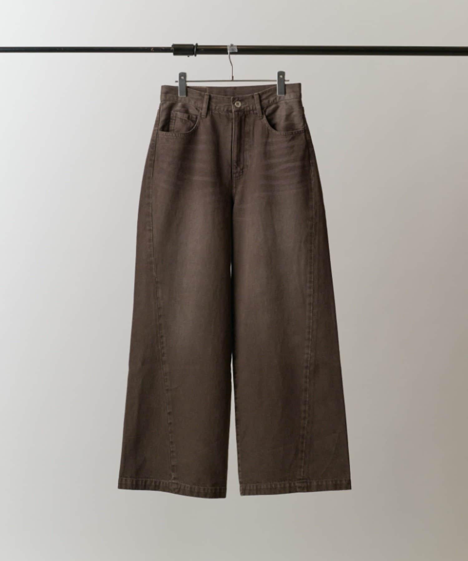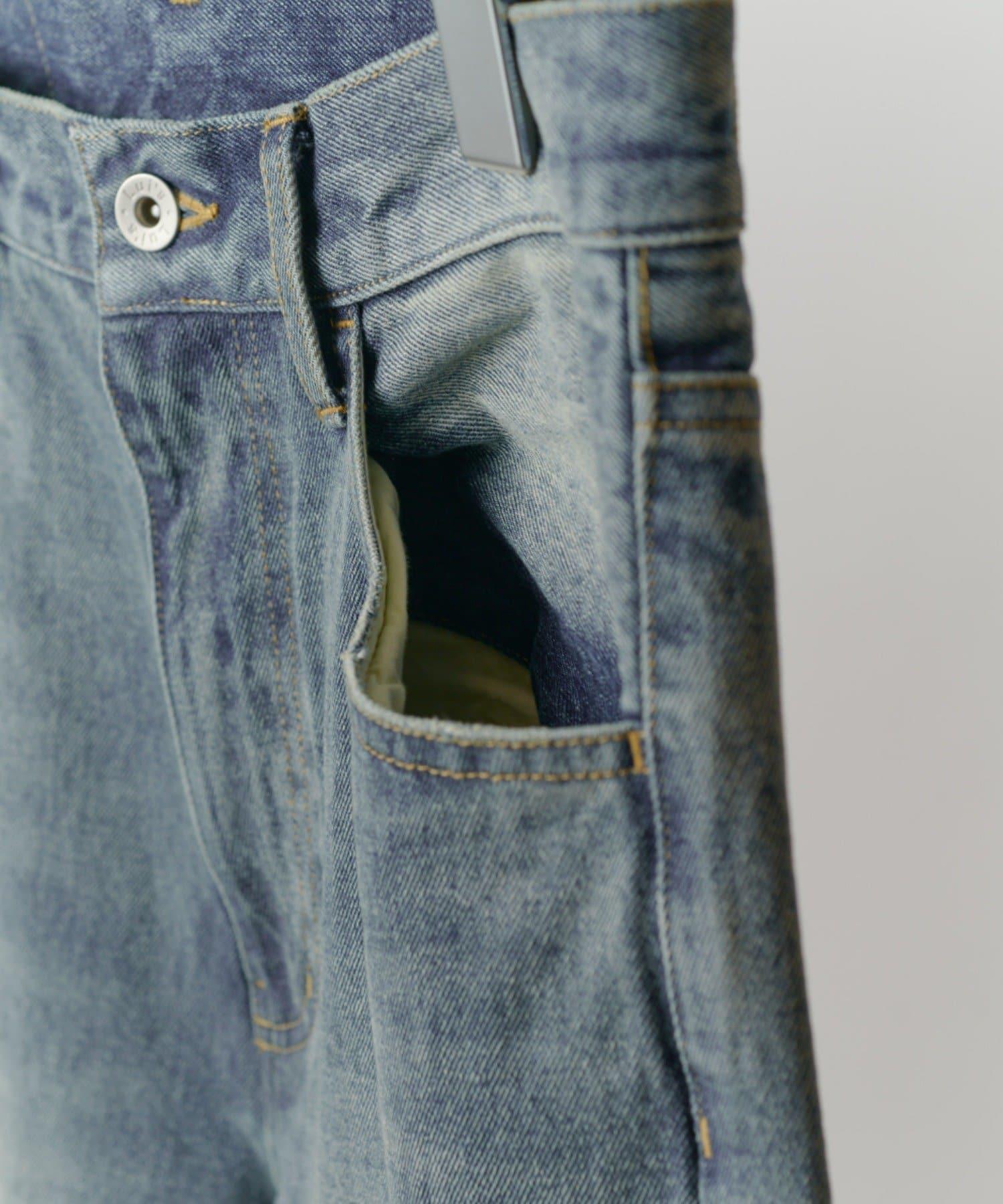 它的花紋從膝蓋以下直垂而下,給人一種簡潔美觀的感覺。此外,與一般褲襠略深的寬牛仔布相比,這款牛仔布的褲襠做得與普通牛仔布相似,這樣的款式只需穿上它就會顯得更加美觀。