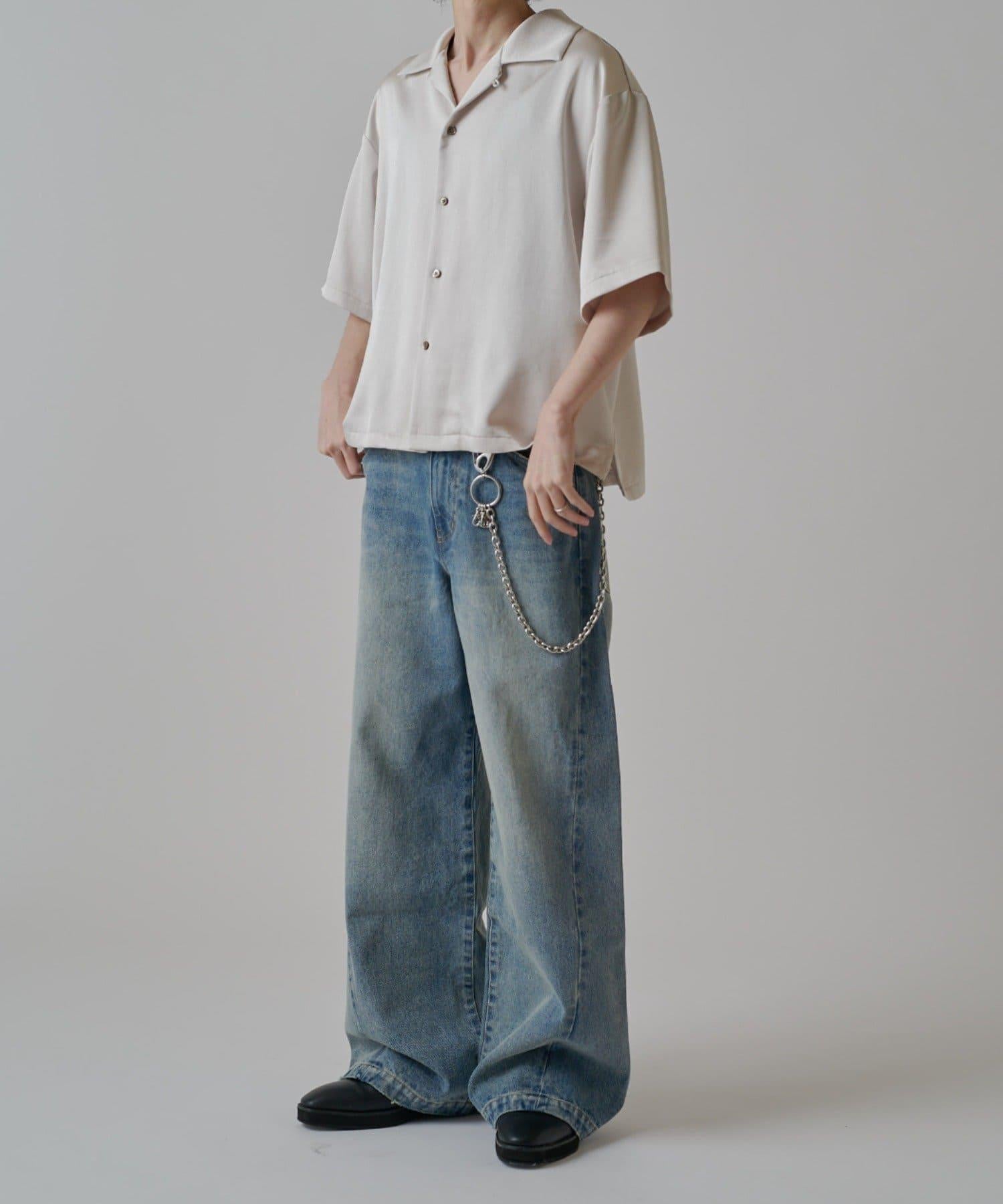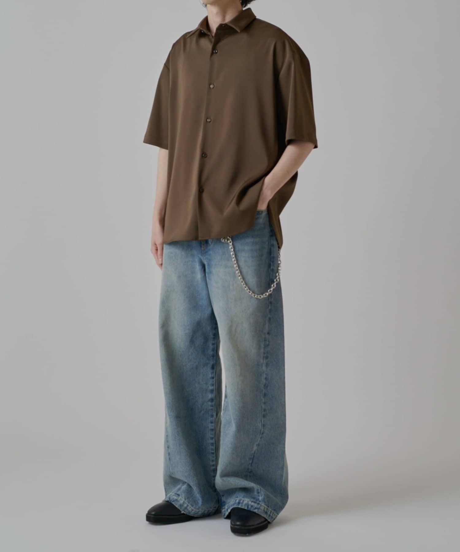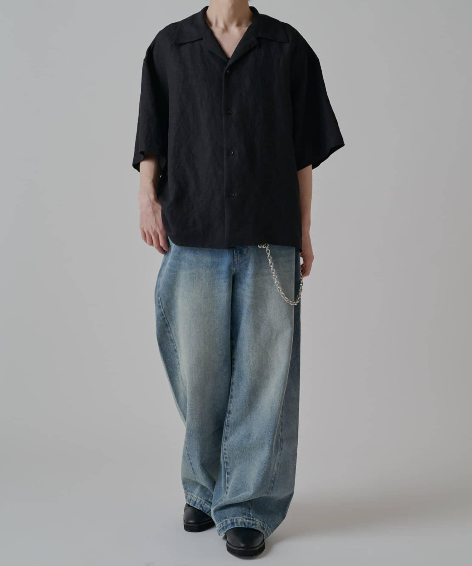 這款牛仔布具有寬大筆直的輪廓,直垂而下。