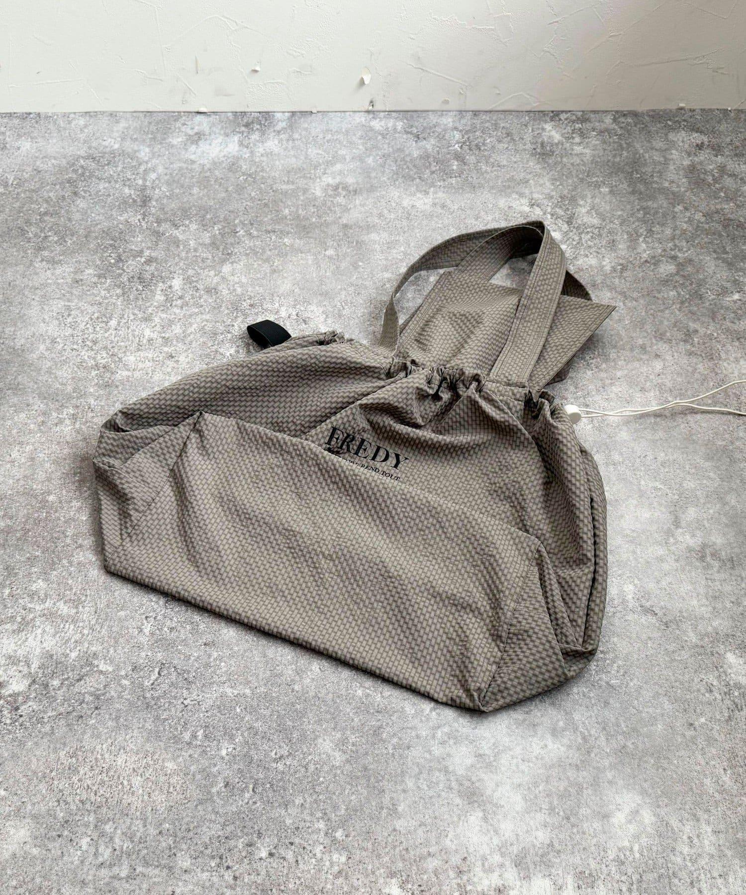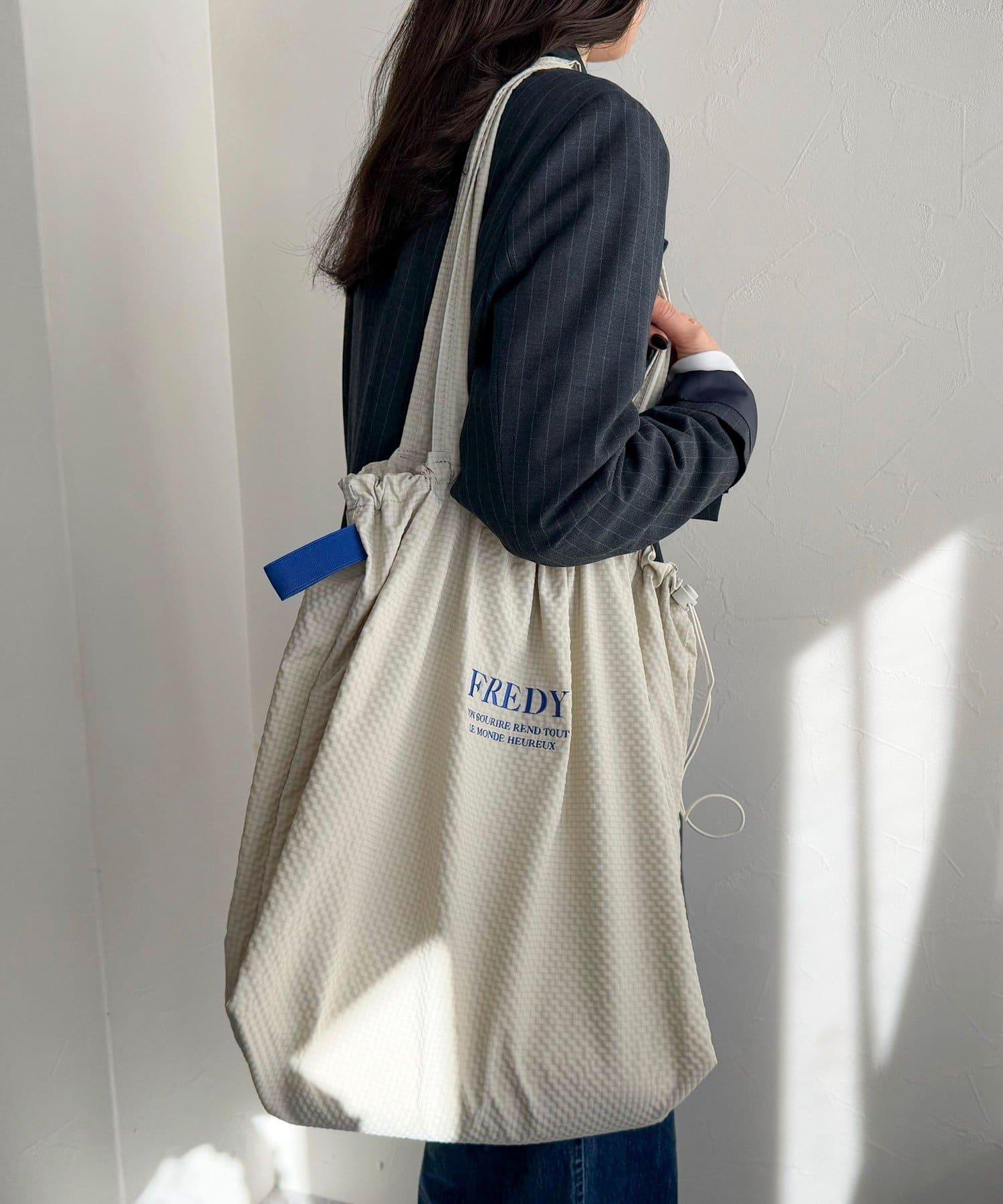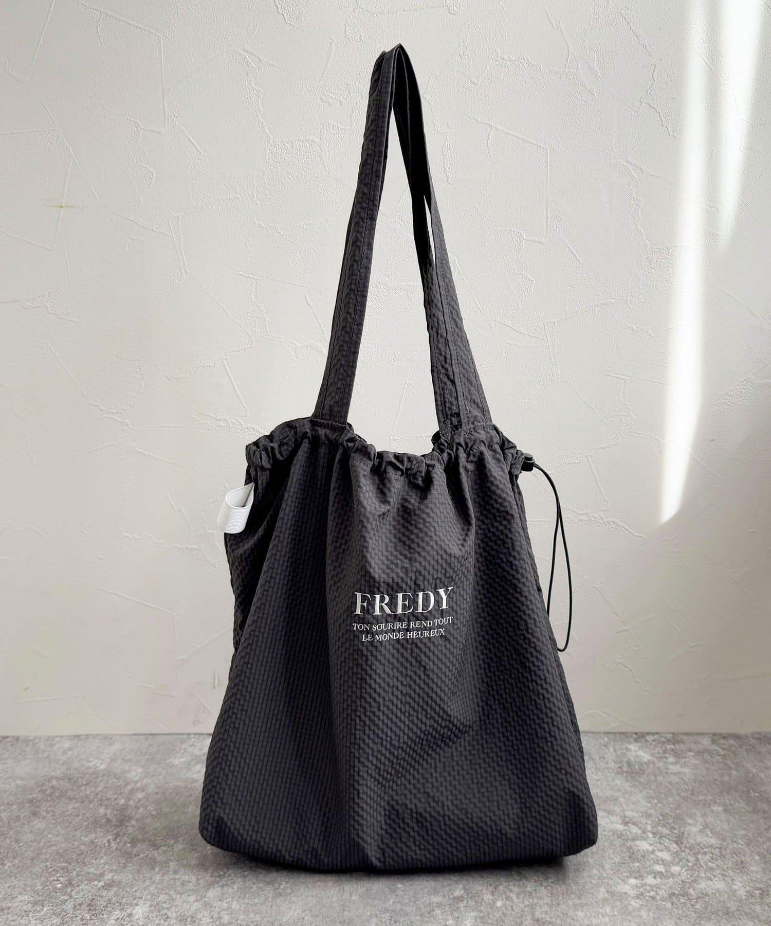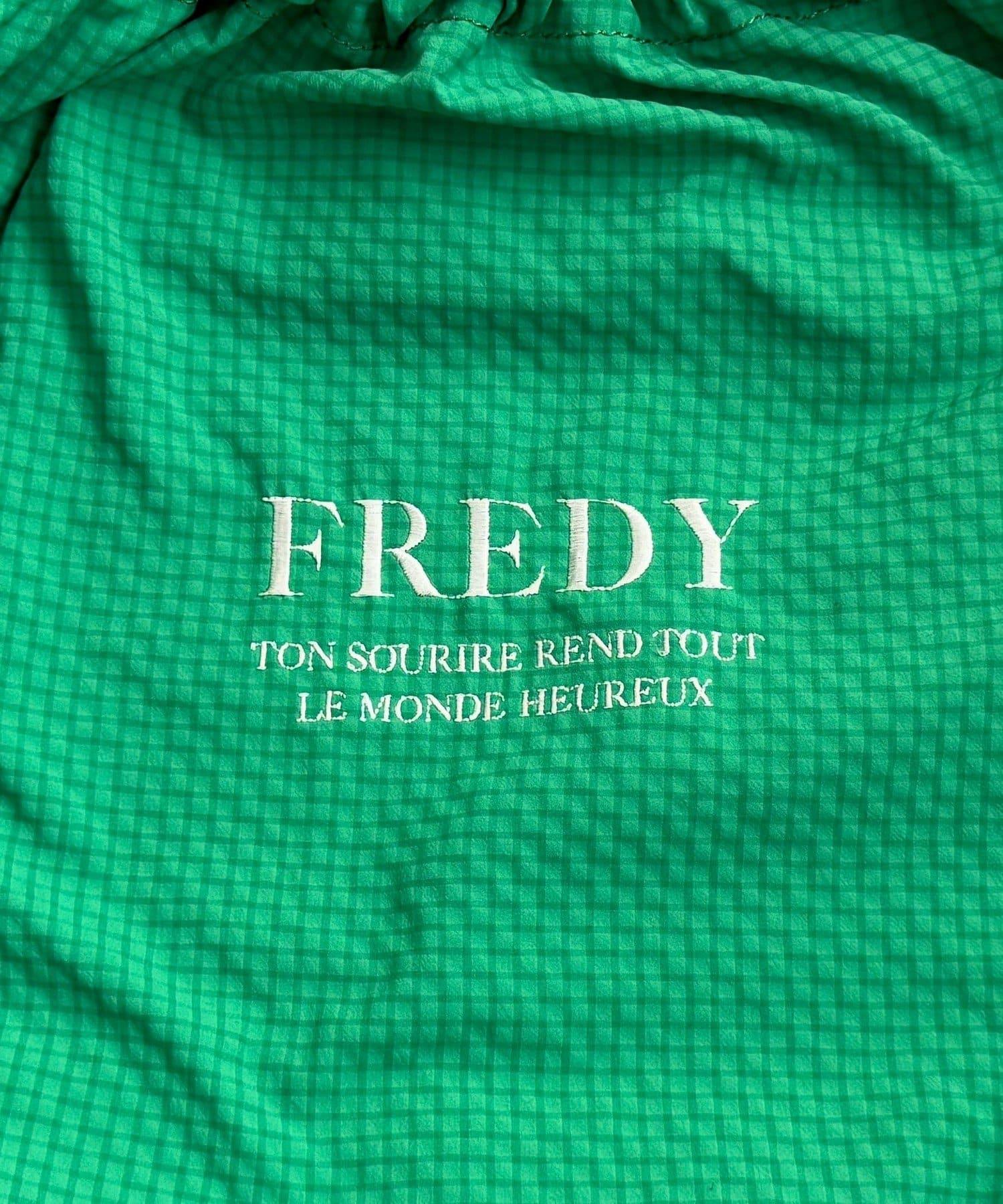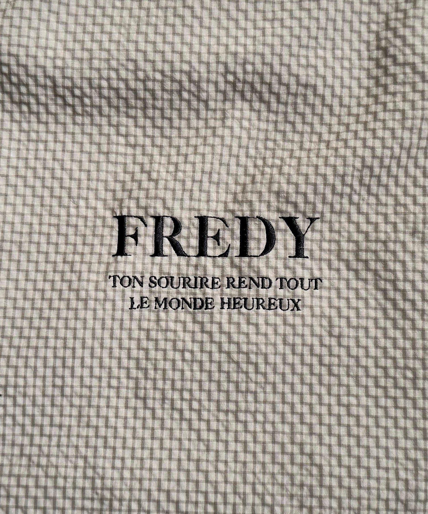 這是一款便於日常使用的手提包,格紋面料上繡有 FREDY 字樣。